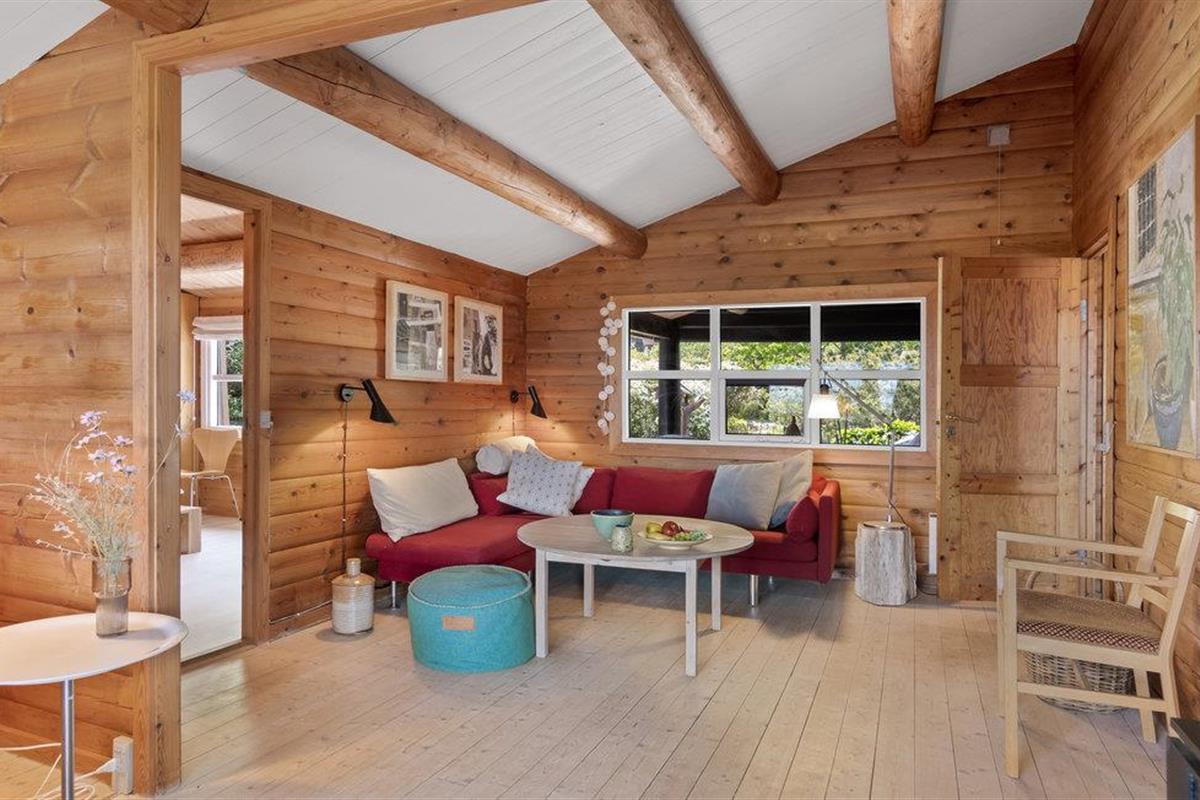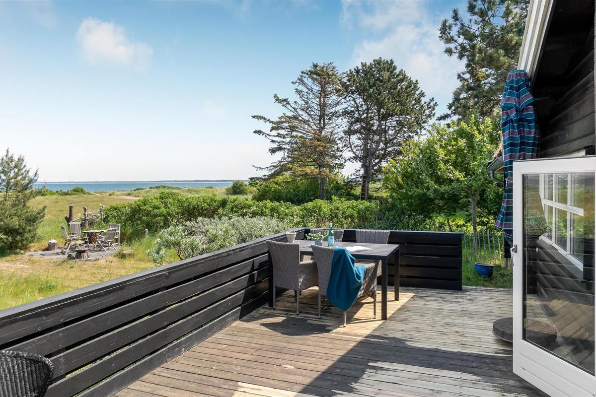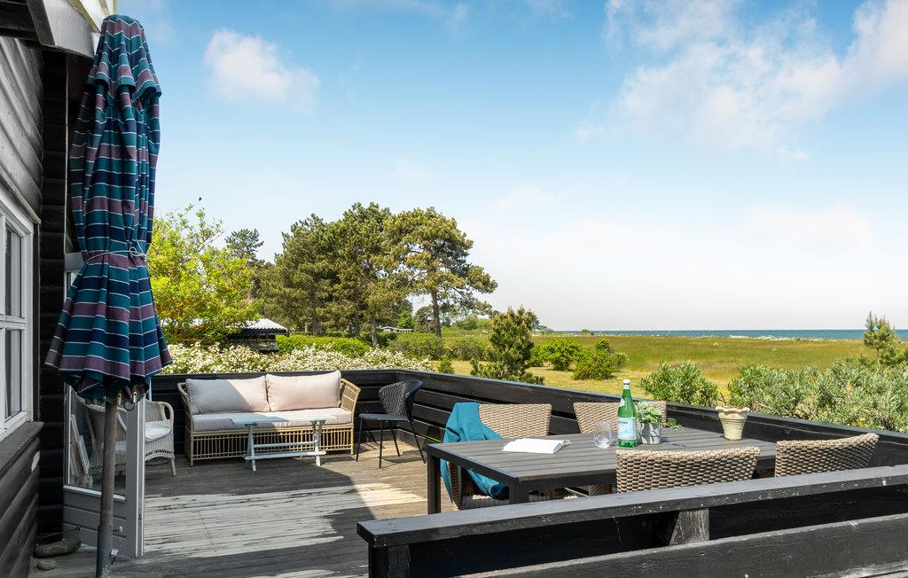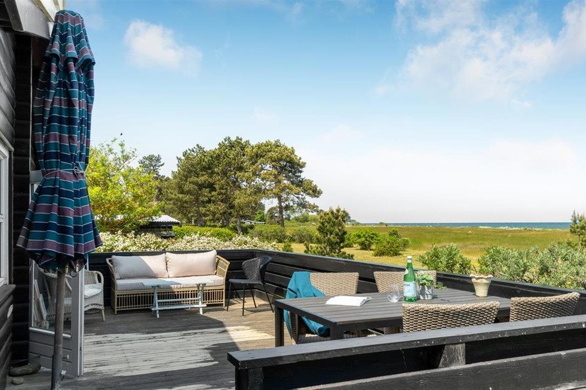 Gezellig houten huis direct aan het Kattegat met zeezicht, terras en natuurlijke tuin voor een ontspannen vakantie.