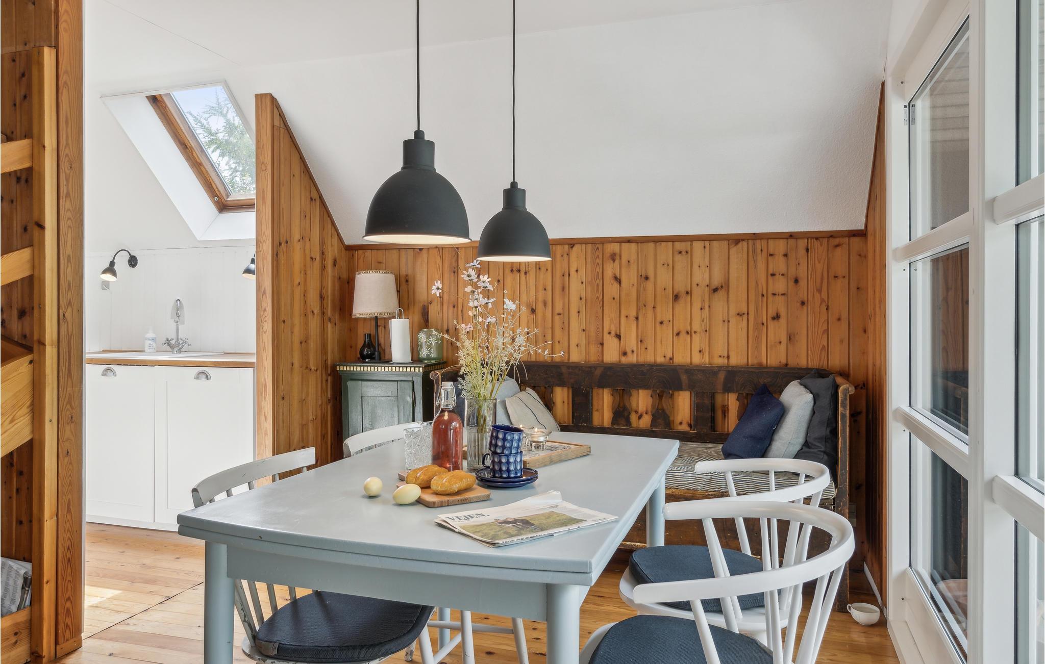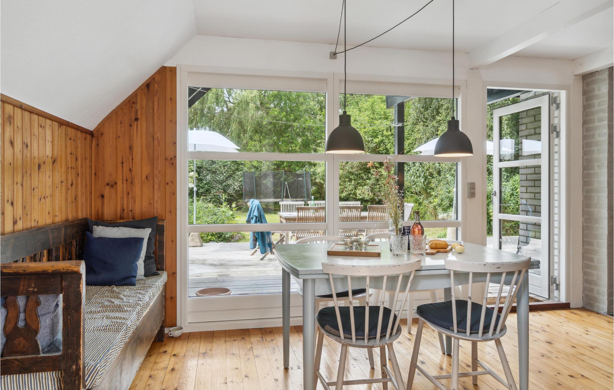 Gezinsvriendelijk vakantiehuis in Klint, Denemarken, op 150 meter van het strand met open haard en veel faciliteiten.