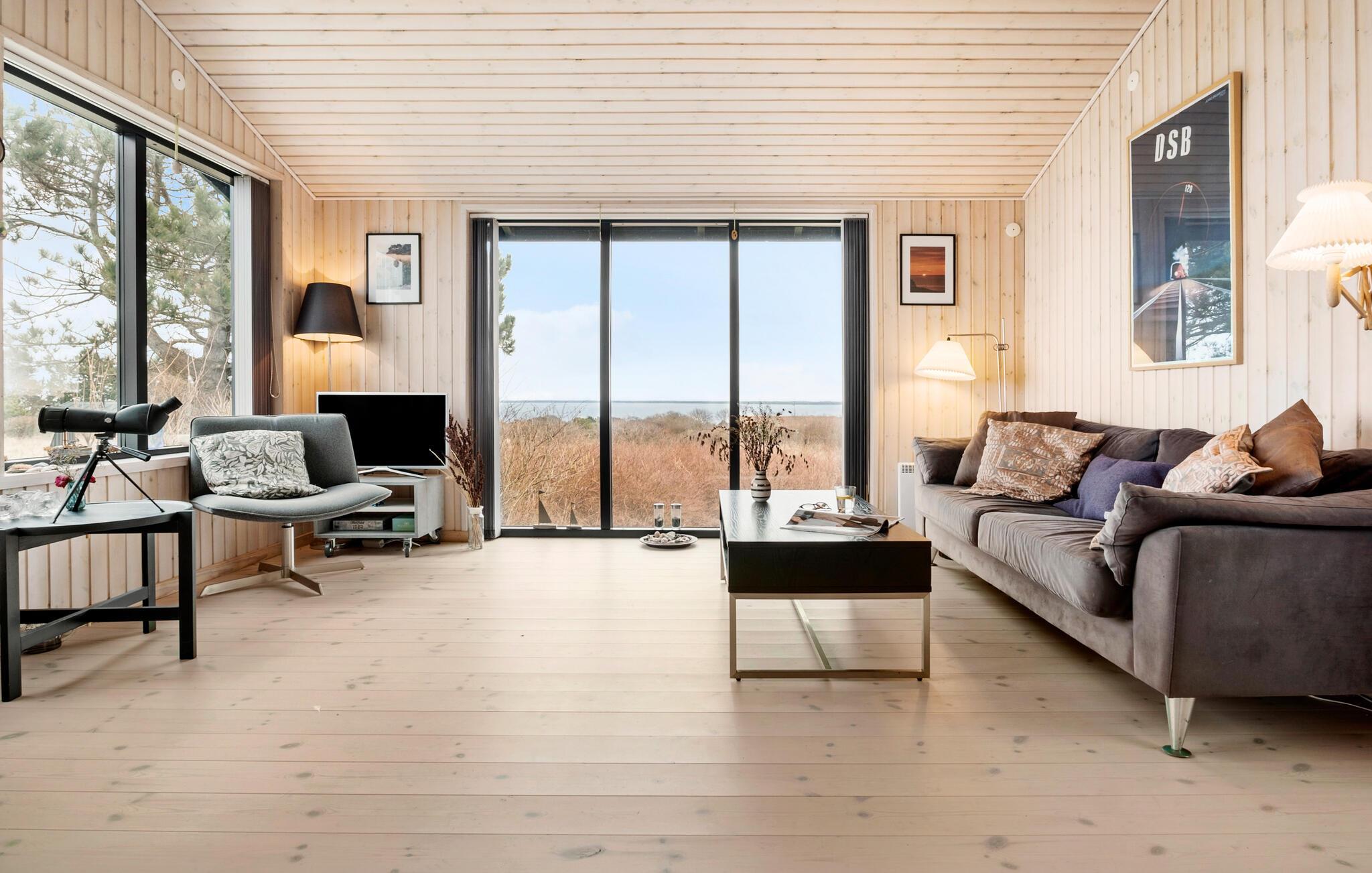 Comfortabel houten vakantiehuis met panoramisch uitzicht en dichtbij het strand in Nykøbing Sj.