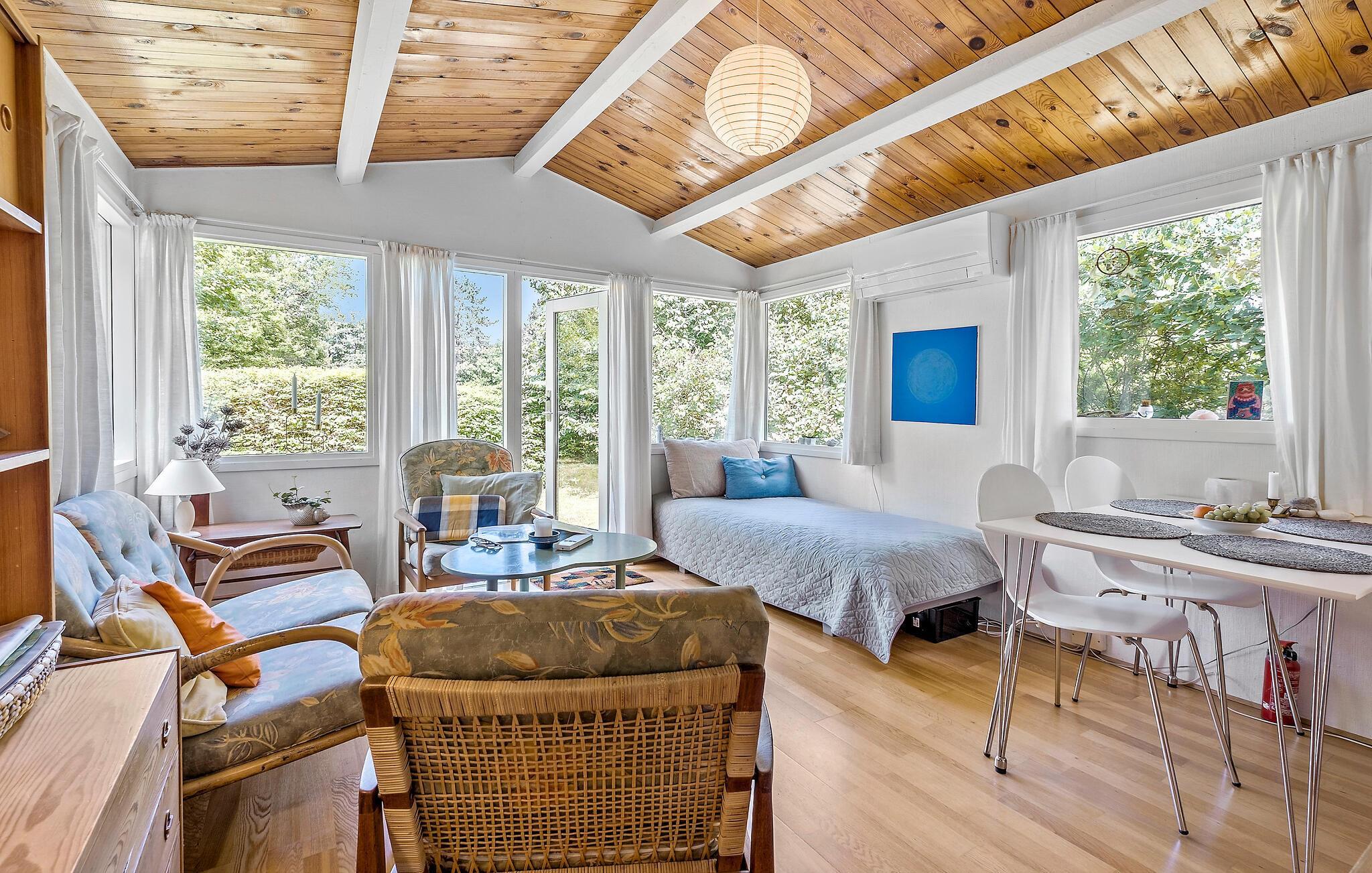 Welkom bij Klint Strand en je charmante, compacte vakantiehuis in een idyllische omgeving dicht bij de natuur. Geniet van de rust en afzondering van dit gezellige huis omgeven door weelderig groen. Het interieur van het huis straalt warmte en comfort uit, met een lichte woonkamer die ideaal is om te ontspannen en een goed boek te lezen. Maak het jezelf gemakkelijk op de gezellige fauteuils en banken en geniet van het uitzicht op de tuin door de grote ramen. Geniet 's ochtends van je ontbijt op het zonnige terras, waar je kunt genieten van de frisse lucht en de natuur.