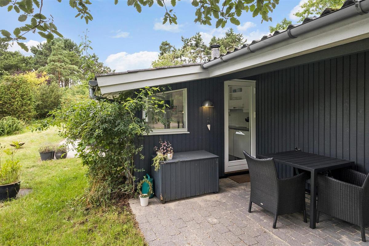 Het ruime terras met uitzicht op de liefdevol aangelegde natuurlijke tuin nodigt uit tot gezellige uurtjes in de buitenlucht, of het nu gaat om een ontbijt in de ochtendzon of een ontspannen avond met uitzicht op de omringende natuur.