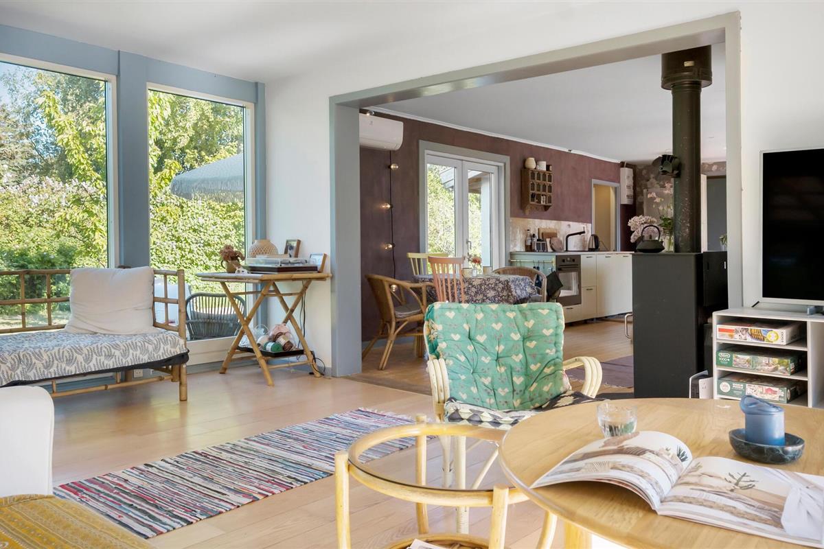 Stap binnen in dit charmante vakantiehuis op Seeland, dicht bij de pittoreske baai Nyrup, en laat het leven van alledag achter je. Hier wacht je een rustige en ontspannen vakantie met alles wat je maar kunt wensen voor een ontspannen verblijf. s Ochtends kun je een stevig ontbijt bereiden in de open en goed uitgeruste keuken, waar je vervolgens van kunt genieten in de aangrenzende eethoek. De vele ramen laten veel natuurlijk licht binnen en zorgen voor een lichte en vriendelijke sfeer. Breng gezellige avonden door voor de houtkachel, waarvan het knisperende vuur een gezellige sfeer creëert. In de woonkamer en op het terras kun je samen urenlang bordspellen spelen. De tuin biedt ruimte voor buitenactiviteiten. Speel verstoppertje met je kinderen of spring op de trampoline.