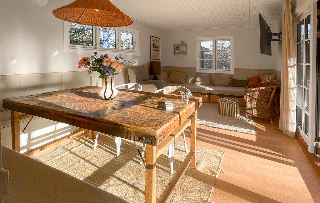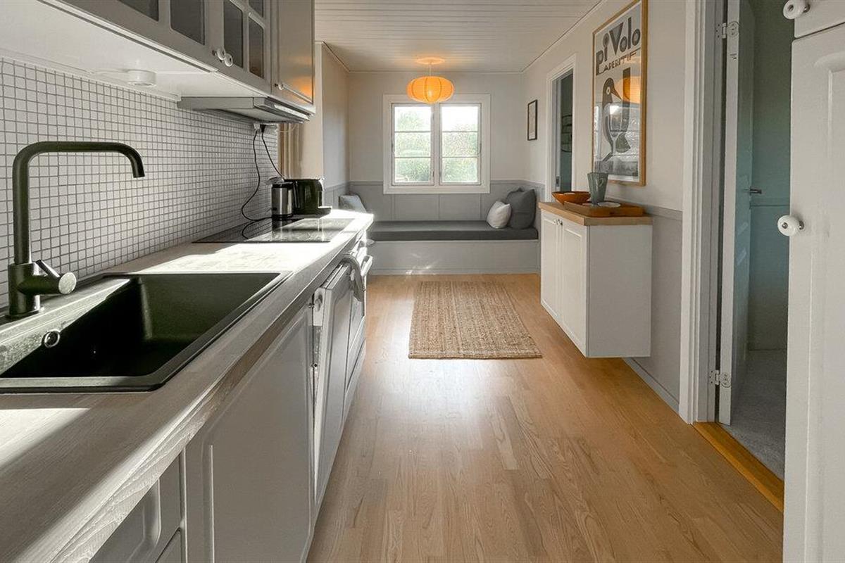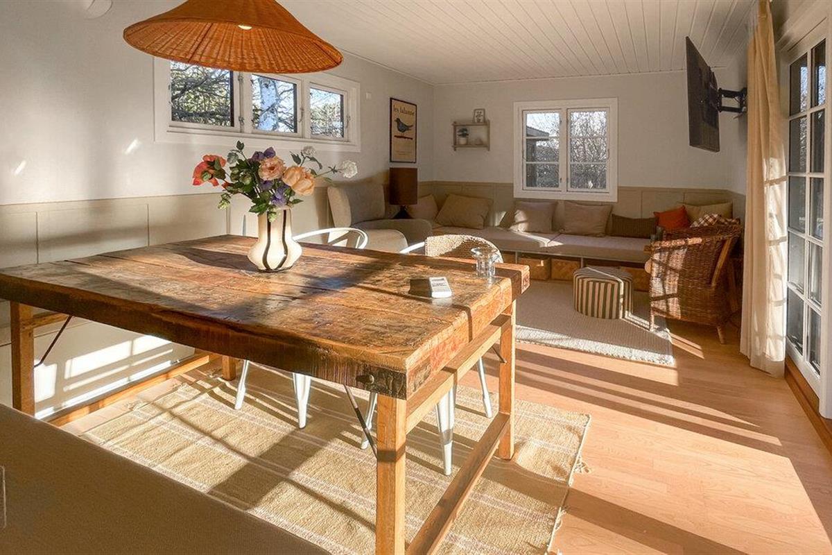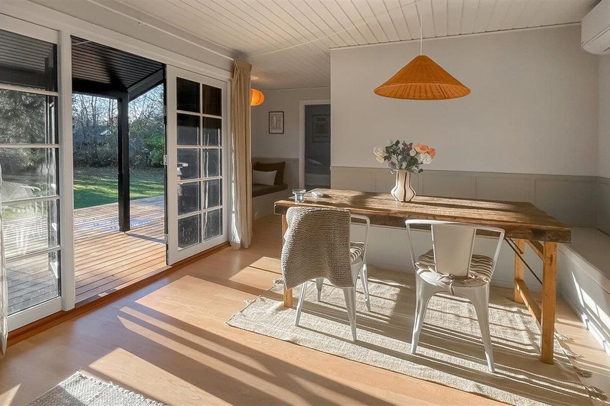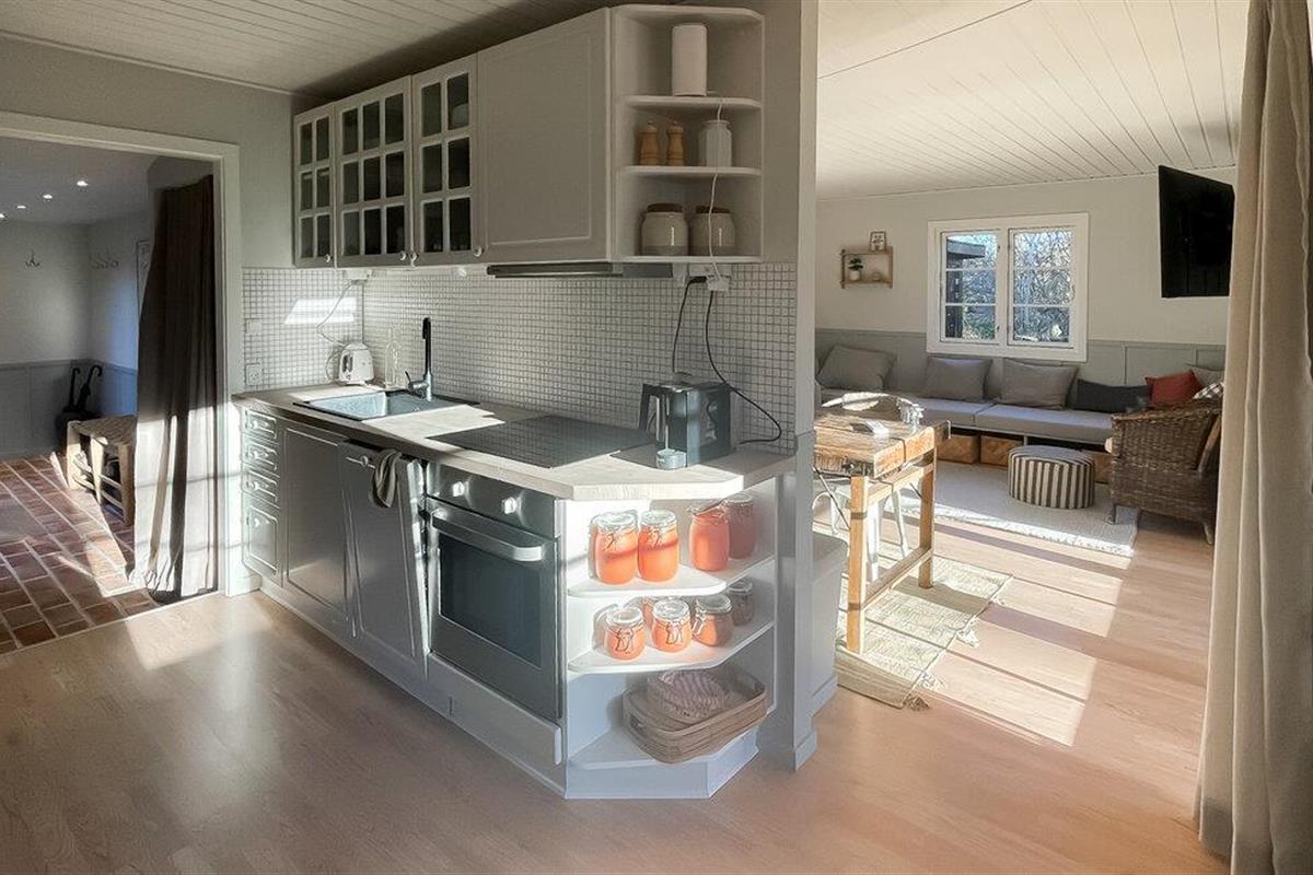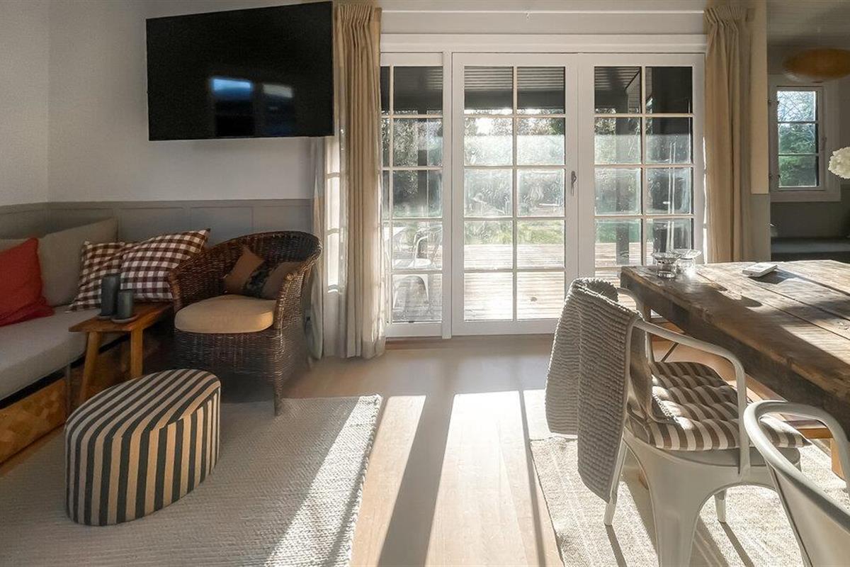 Laat je verwelkomen door de vriendelijke sfeer in de lichte woonkamers. Het interieur van je vakantiehuis is gezellig ingericht. Maak optimaal gebruik van de open woon- en eetruimte, die uitnodigend is met gezellige zithoekjes, warme houten details en grote vensterpuien. Ontspan op de bank of neem plaats aan de houten tafel, die ruimte biedt voor gezamenlijke maaltijden of spelletjesavonden. De keuken is compact en biedt functionele werkoppervlakken om samen maaltijden te bereiden.