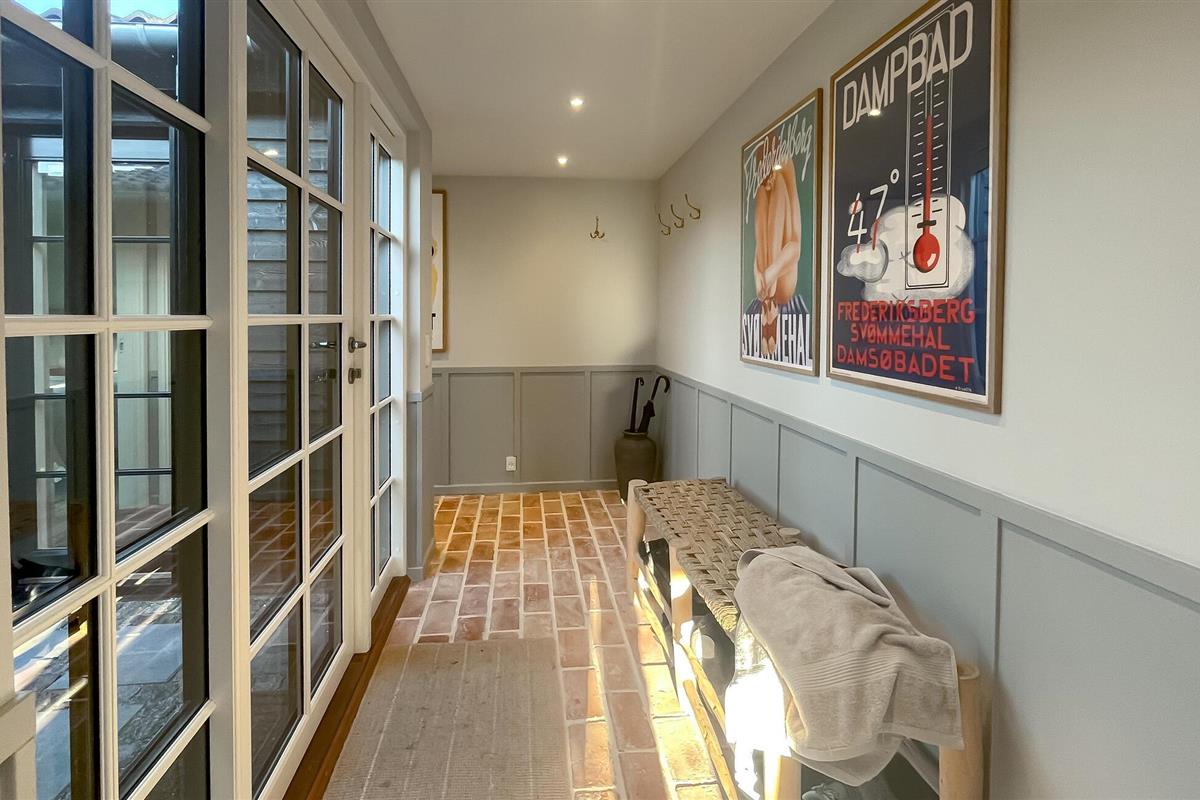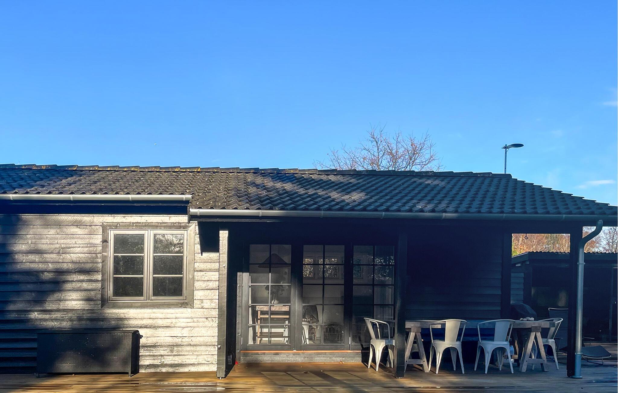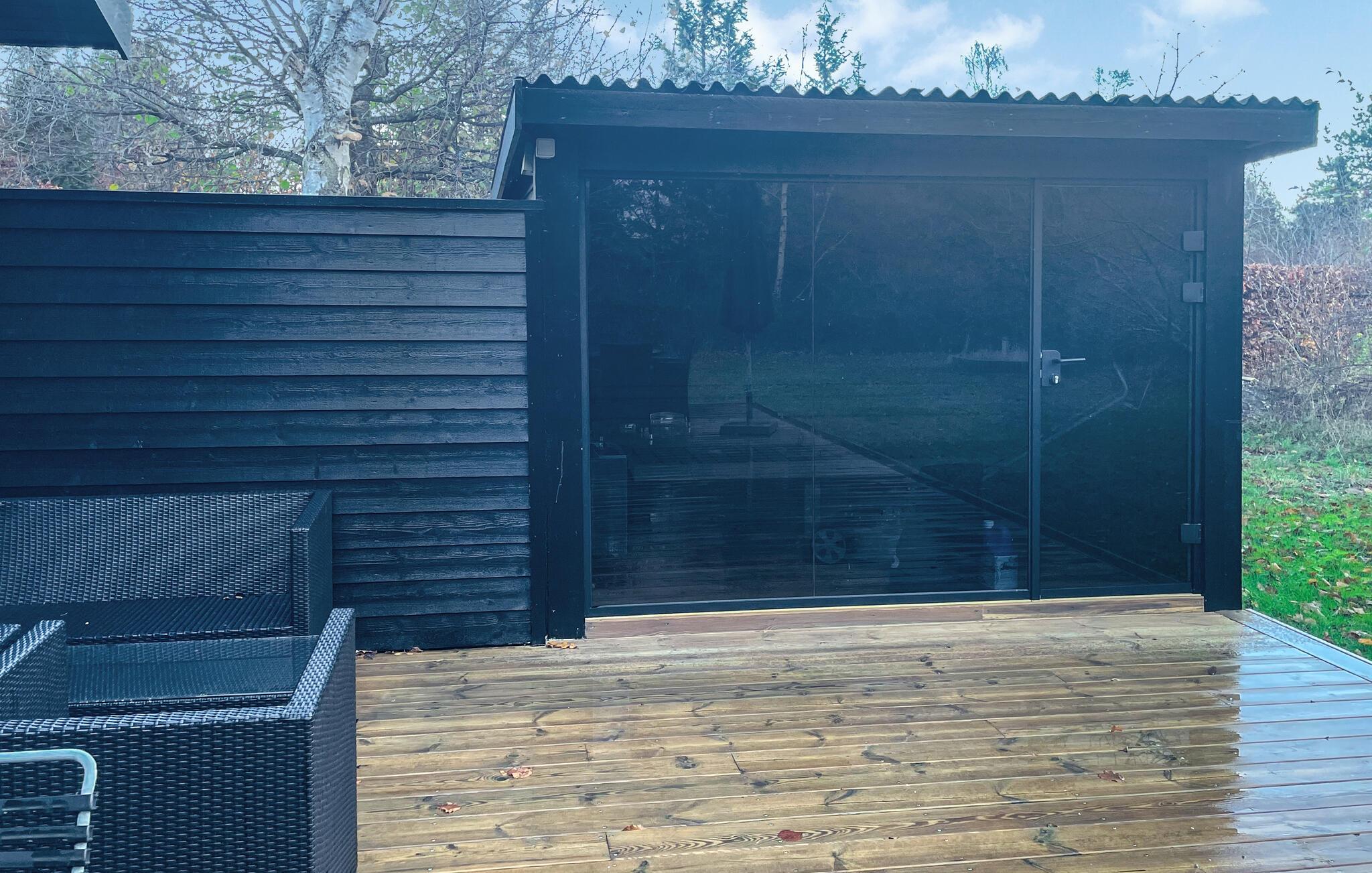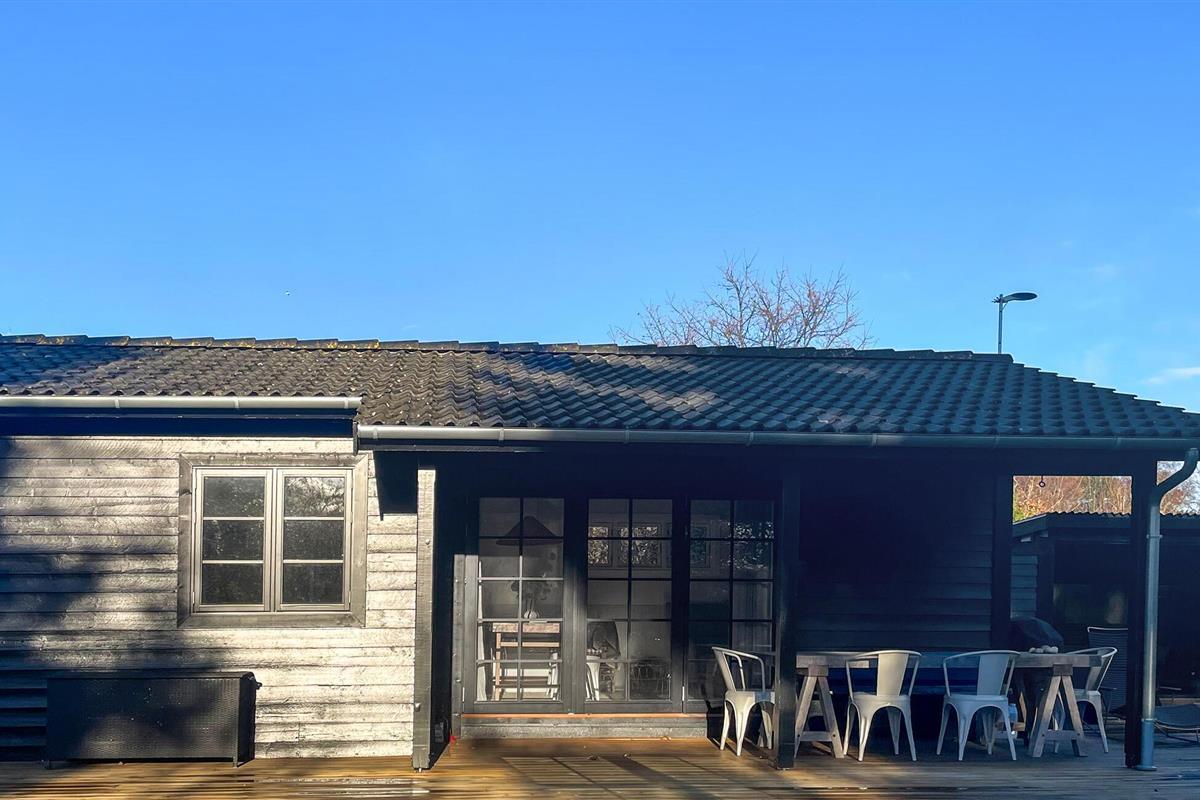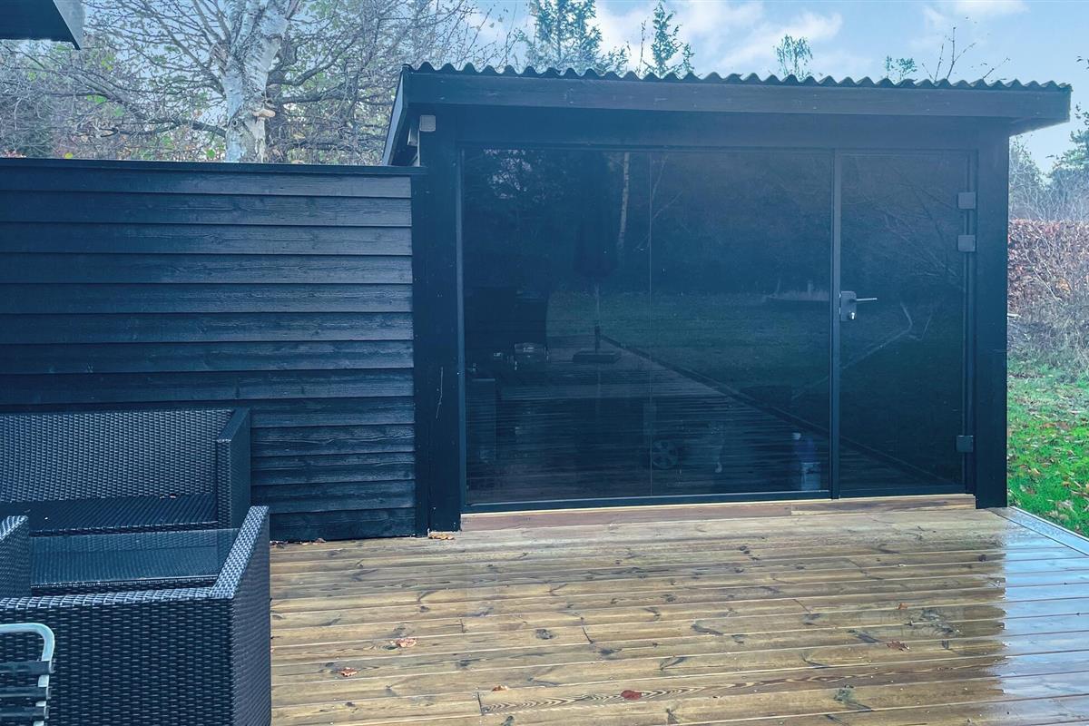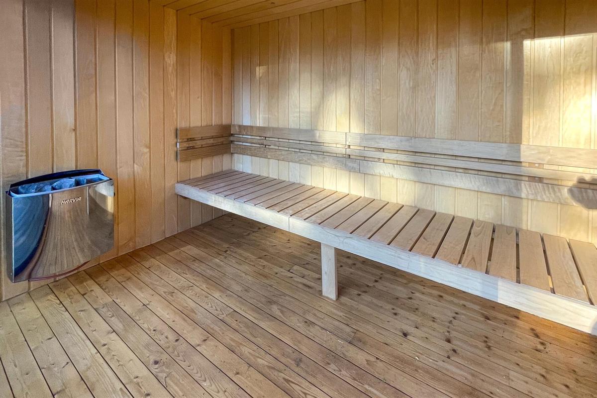 De donkere houten gevel geeft het huis een harmonieus, modern karakter dat goed past in de rustige omgeving. Neem plaats in de zithoek buiten, geniet van de zon of bereid ontspannen barbecues voor. Een bijzonder hoogtepunt is de aparte sauna met een groot glazen front. Trakteer jezelf op behaaglijke warmte en uitzicht op het groen.