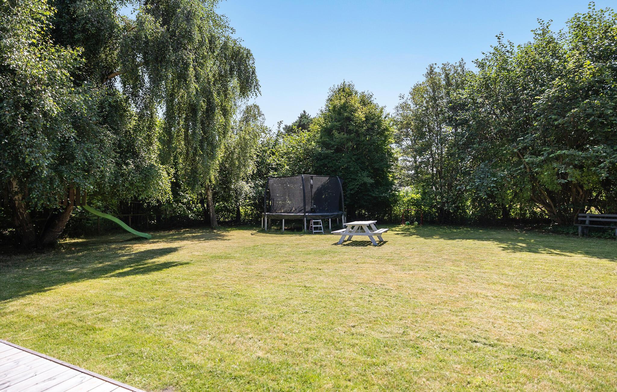 Geniet van een gezellig vakantiehuis aan Klint Strand met moderne voorzieningen en een privé tuin voor een ontspannen familievakantie.