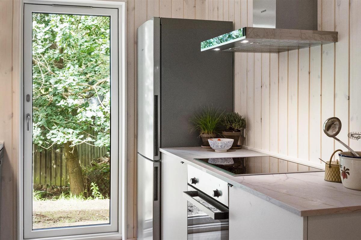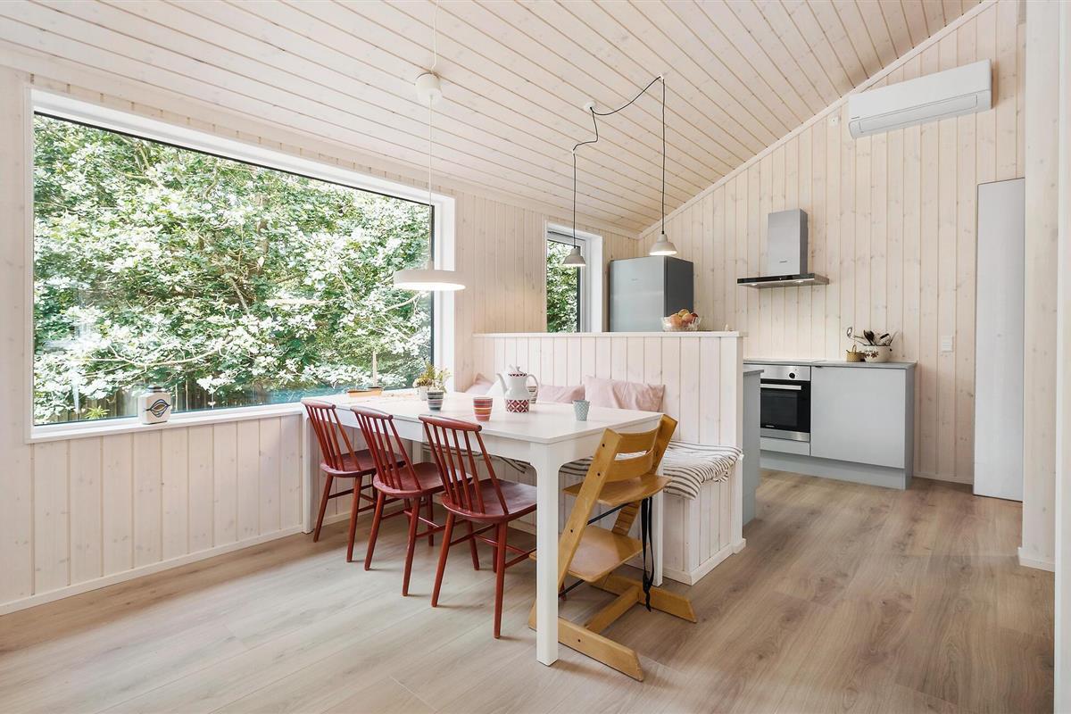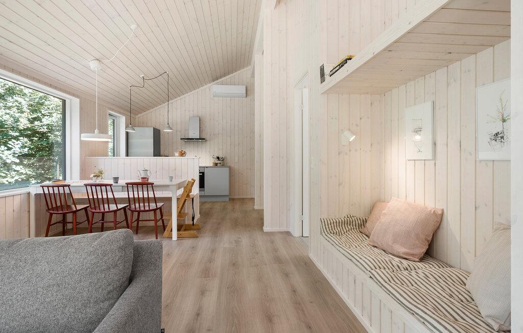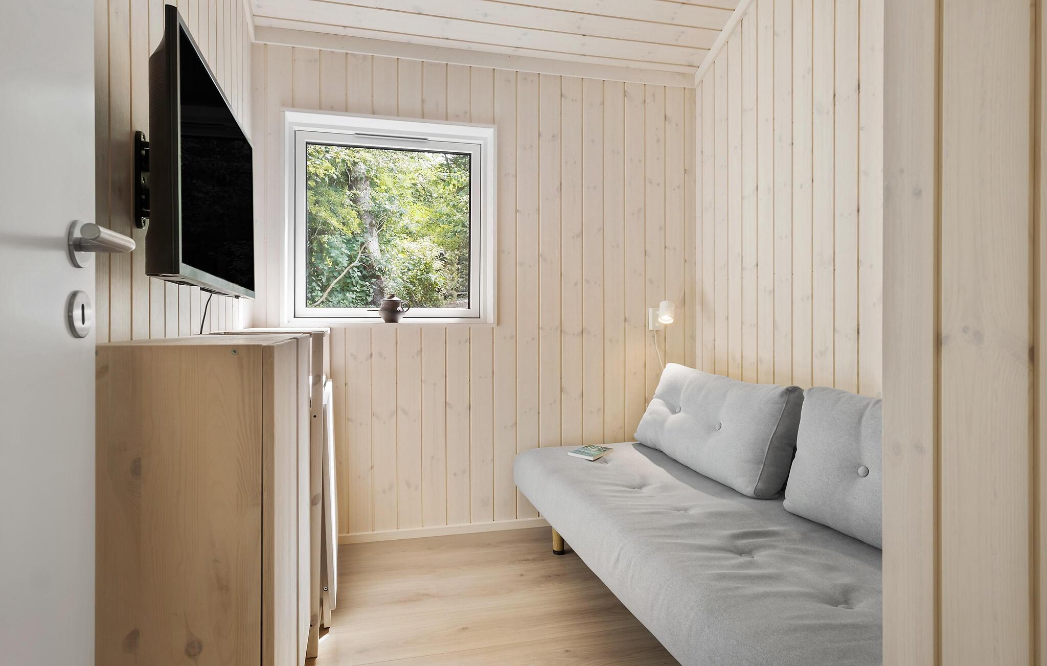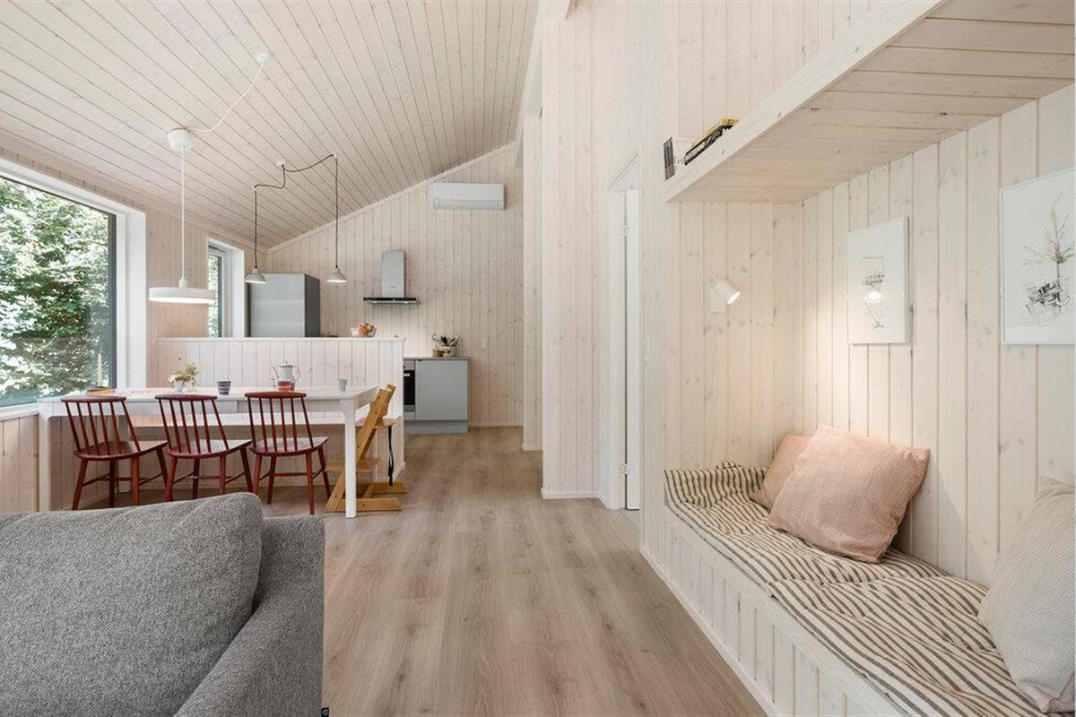Genesteld in een klein bosrijk gebied, verwelkomt dit charmante vakantiehuis je dicht bij Klint Strand. Hier vind je rust en afzondering in een idyllische omgeving. Het huis zelf straalt gezelligheid en warmte uit, met een uitnodigende bank die ideaal is om te ontspannen en te bladeren voor de houtkachel. Geniet van het uitzicht op de liefdevol onderhouden tuin.