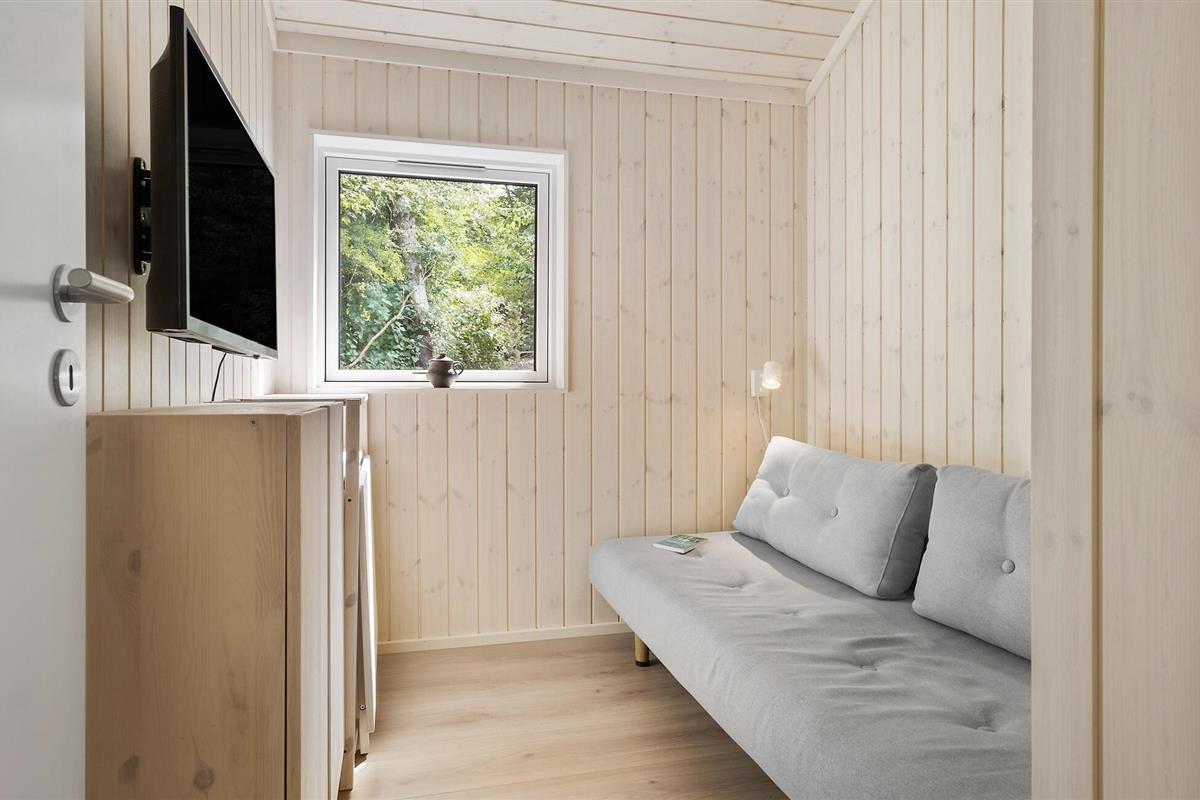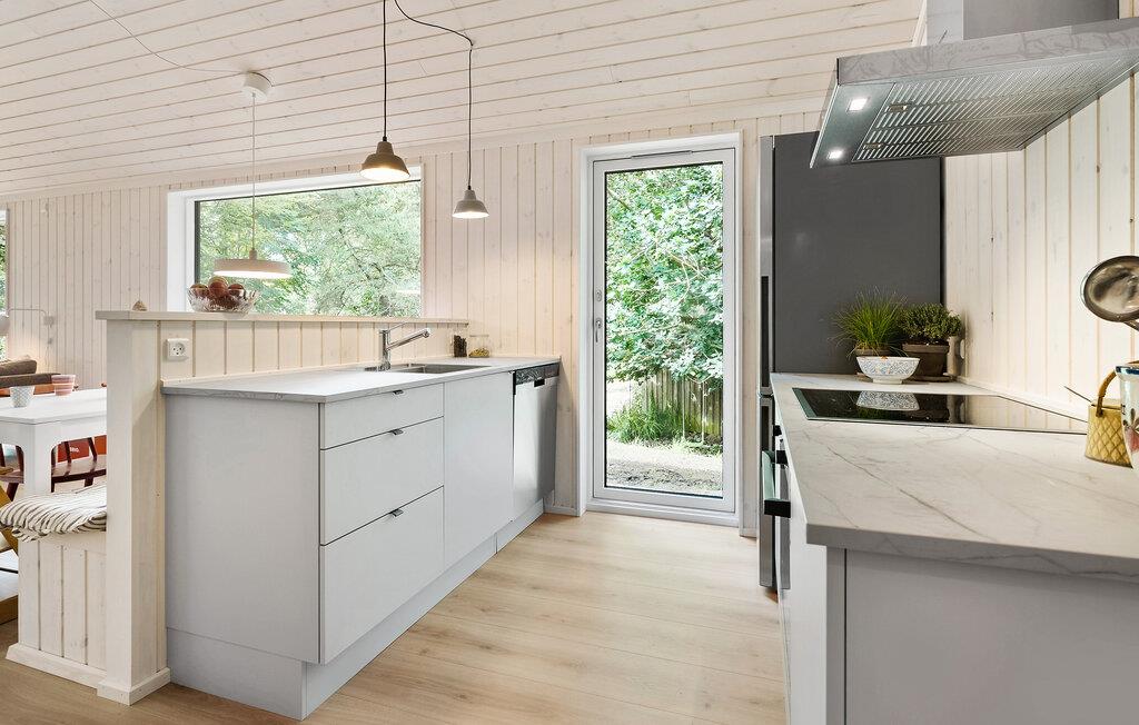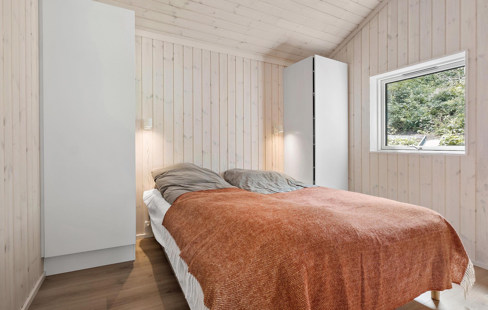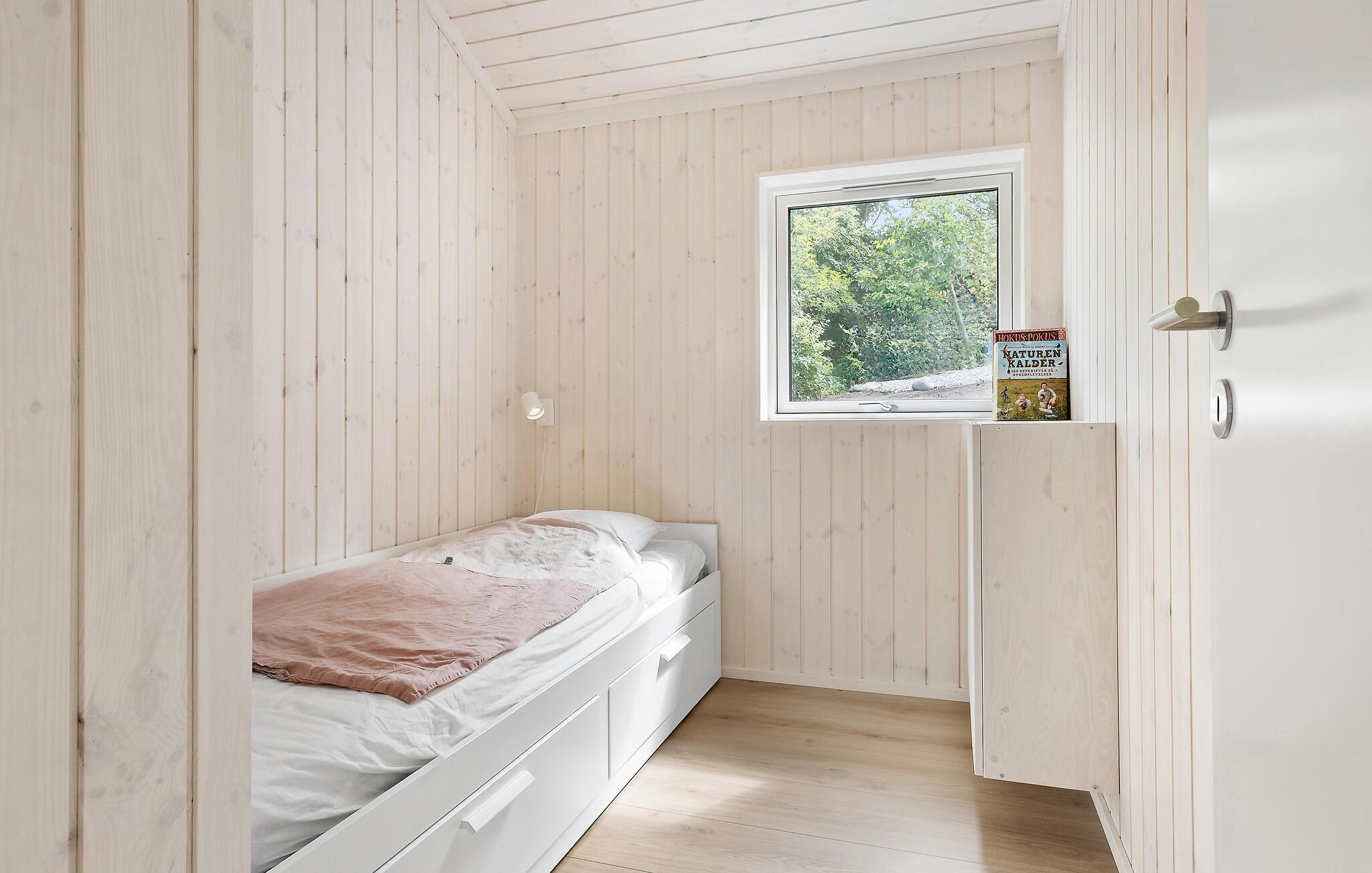 Genesteld in een klein bosrijk gebied, verwelkomt dit charmante vakantiehuis je dicht bij Klint Strand. Hier vind je rust en afzondering in een idyllische omgeving. Het huis zelf straalt gezelligheid en warmte uit, met een uitnodigende bank die ideaal is om te ontspannen en te bladeren voor de houtkachel. Geniet van het uitzicht op de liefdevol onderhouden tuin.