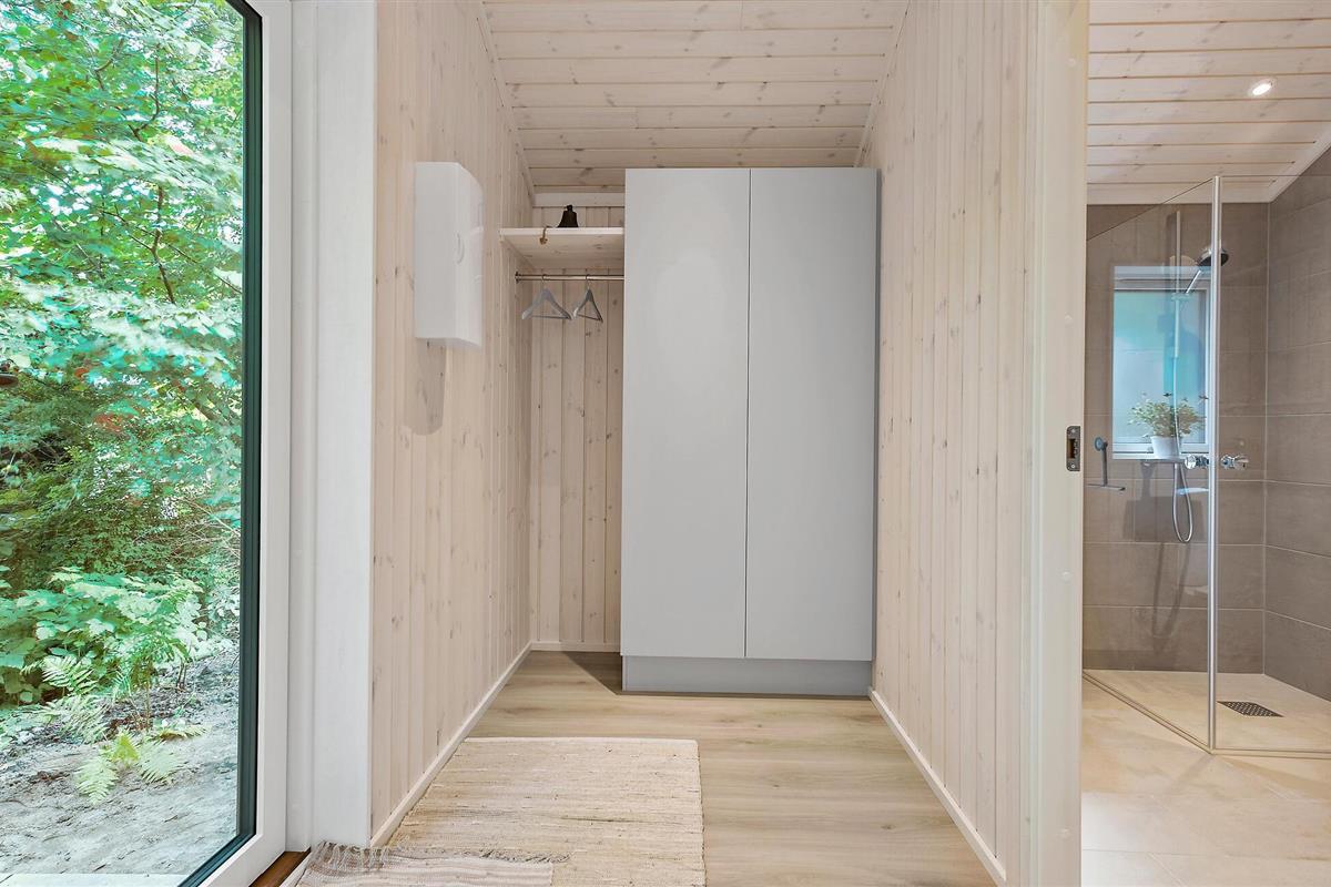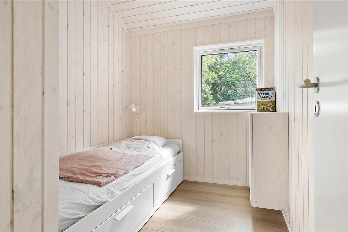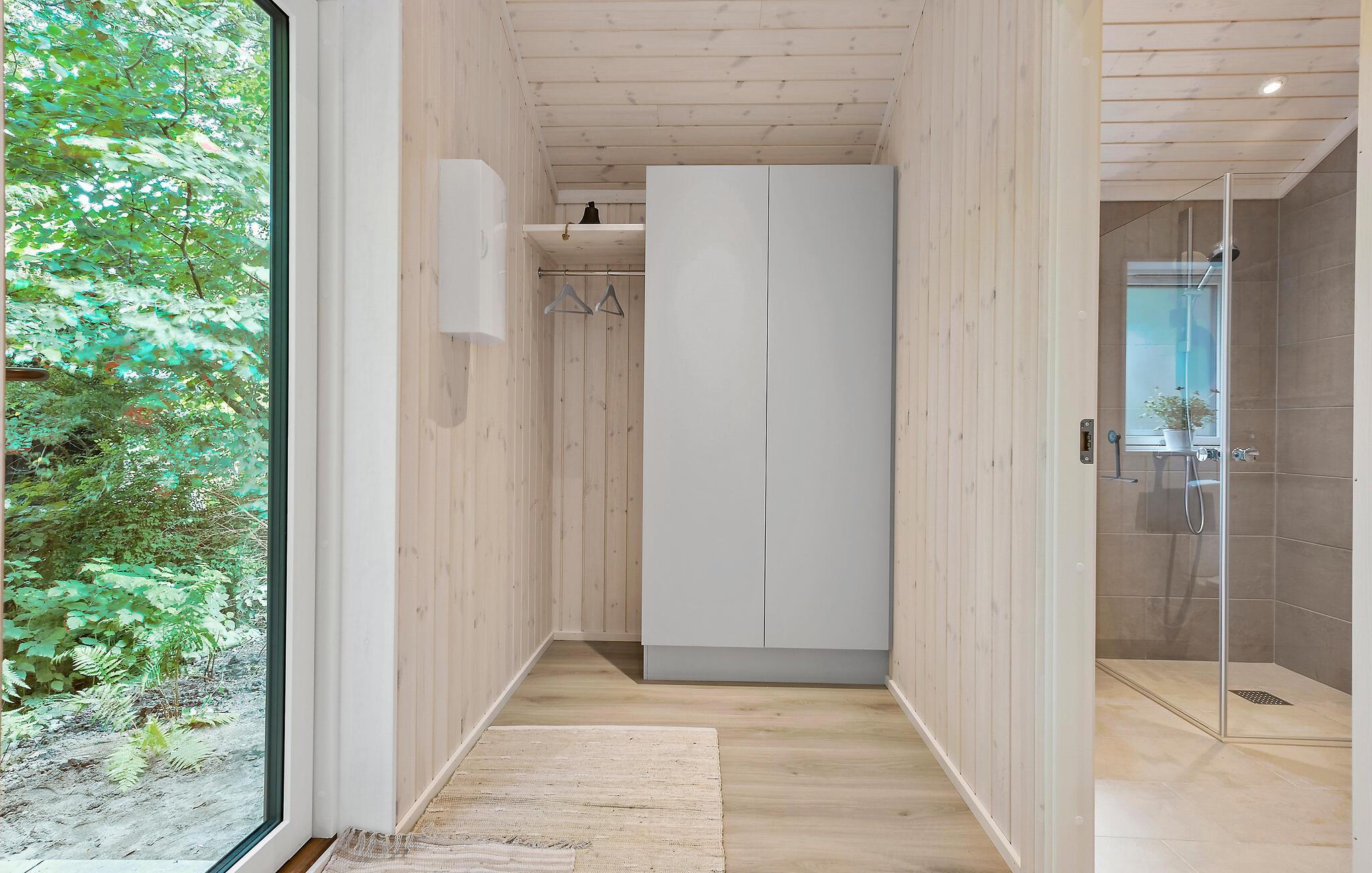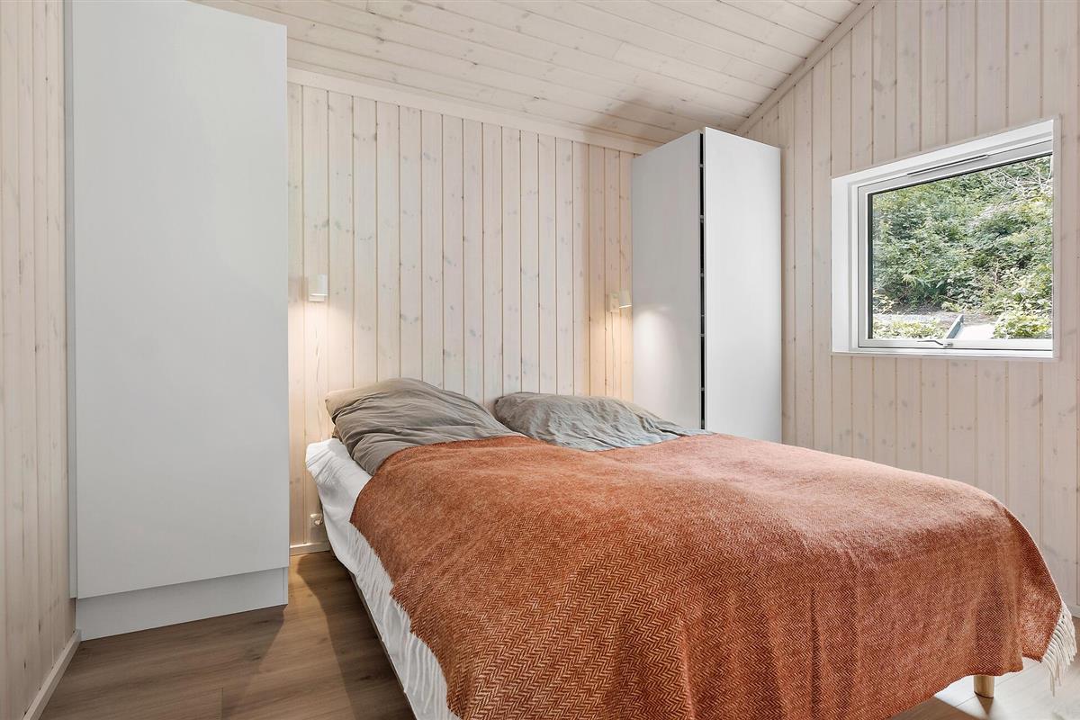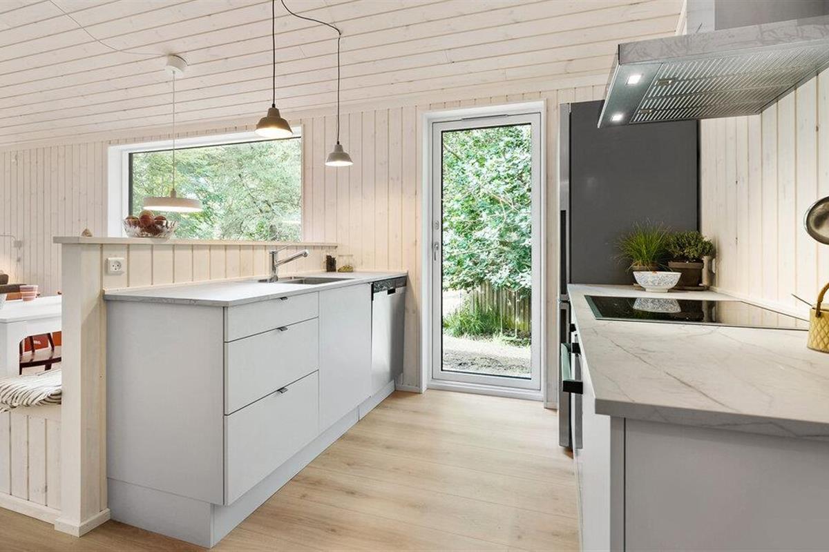 Genesteld in een klein bosrijk gebied, verwelkomt dit charmante vakantiehuis je dicht bij Klint Strand. Hier vind je rust en afzondering in een idyllische omgeving. Het huis zelf straalt gezelligheid en warmte uit, met een uitnodigende bank die ideaal is om te ontspannen en te bladeren voor de houtkachel. Geniet van het uitzicht op de liefdevol onderhouden tuin.