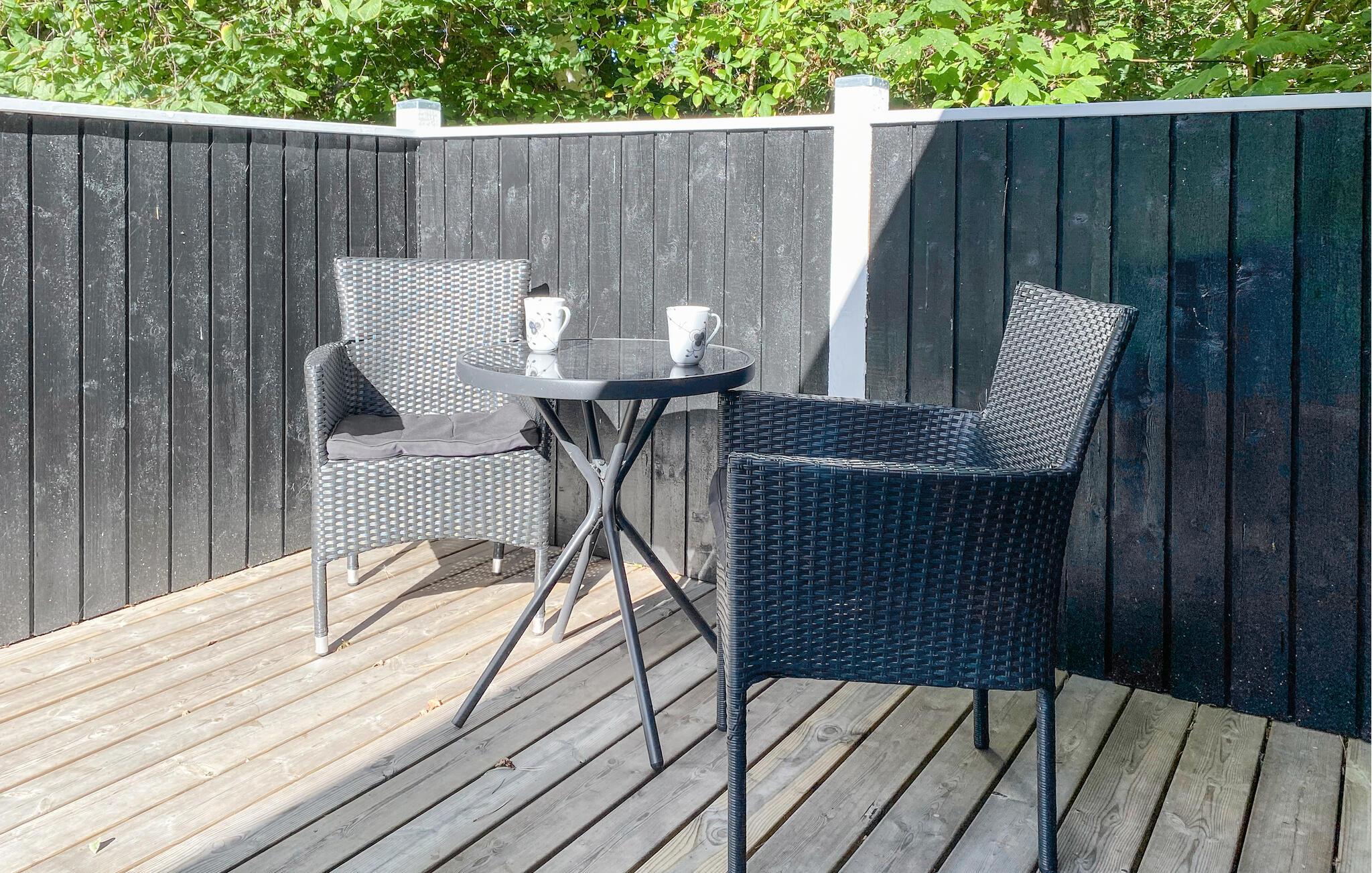 Breng vele aangename uren door op het grote houten terras, geniet van je ontbijt in de buitenlucht en plan je dag in alle rust. Leun achterover in een ligstoel terwijl je kinderen in de tuin spelen of de schommels gebruiken. Maak gebruik van de gezellige hoek op het terras waar je kunt genieten van een kopje koffie.