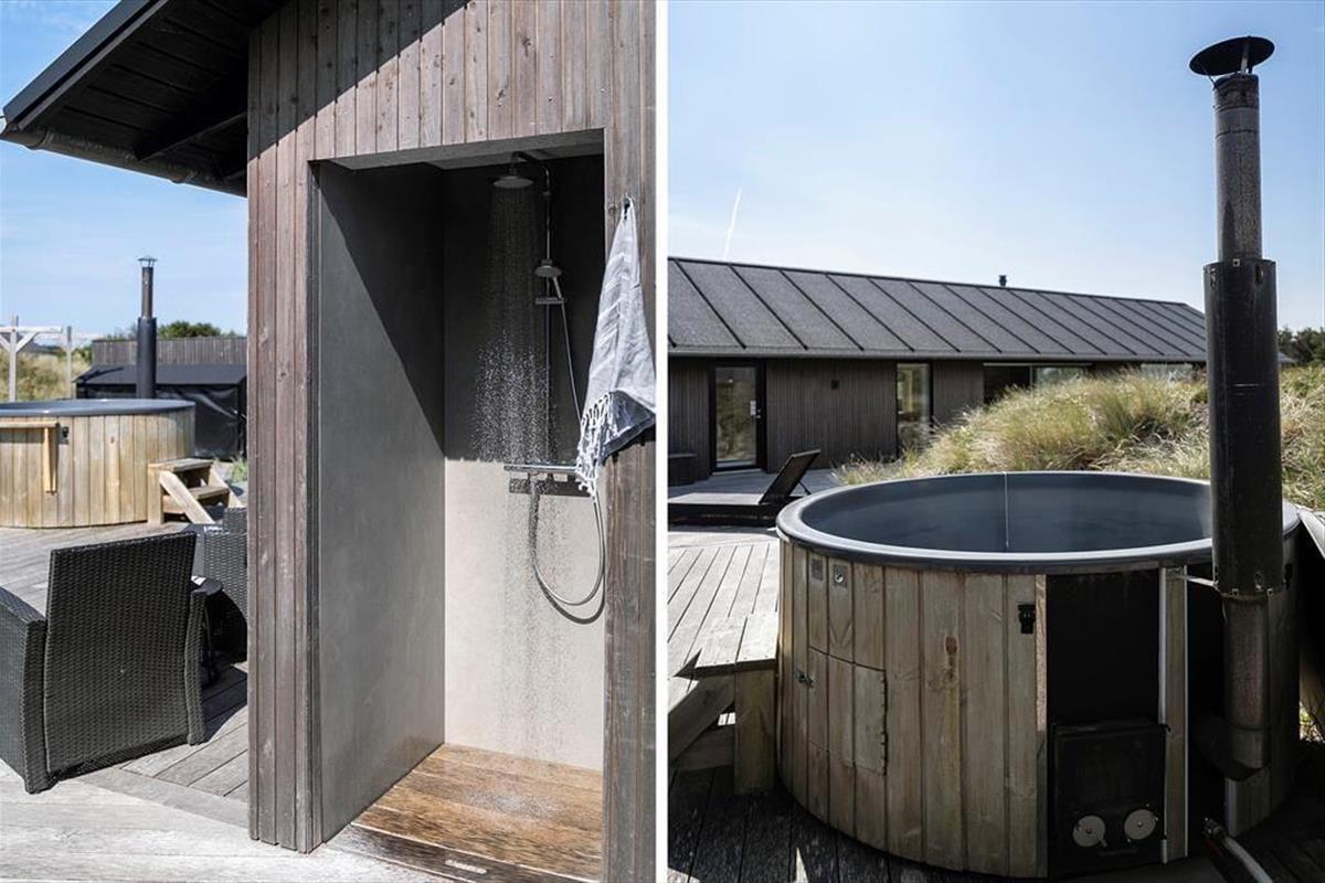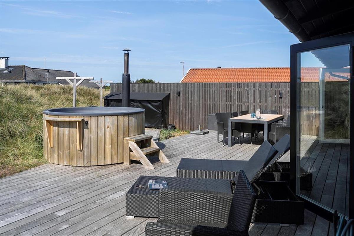 Draußen erwartet dich eine schöne Terrasse und ein einzigartiger Hot Tub, der zur Entspannung einlädt. Stell dir vor, du sitzt im warmen Wasser unter einem Sternenhimmel, genießt die Stille und die frische Meeresluft. Das Grundstück rund um das Ferienhaus bietet viel Platz für Aktivitäten im Freien, und die Terrasse ist der ideale Ort, um an warmen Sommerabenden zu grillen und im Freien zu speisen. Hier findest du eine perfekte Kombination aus Privatsphäre und der Möglichkeit, der Natur nahe zu sein, egal ob du dich entspannen oder aktiv sein möchtest.