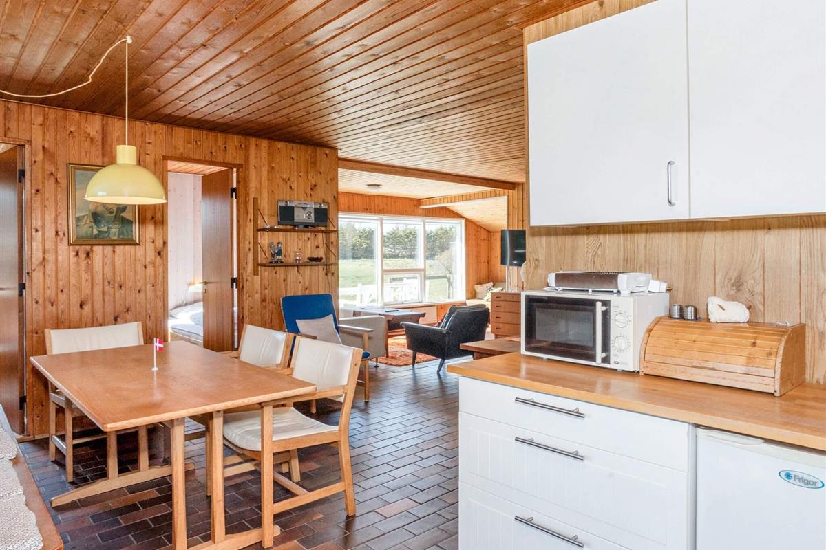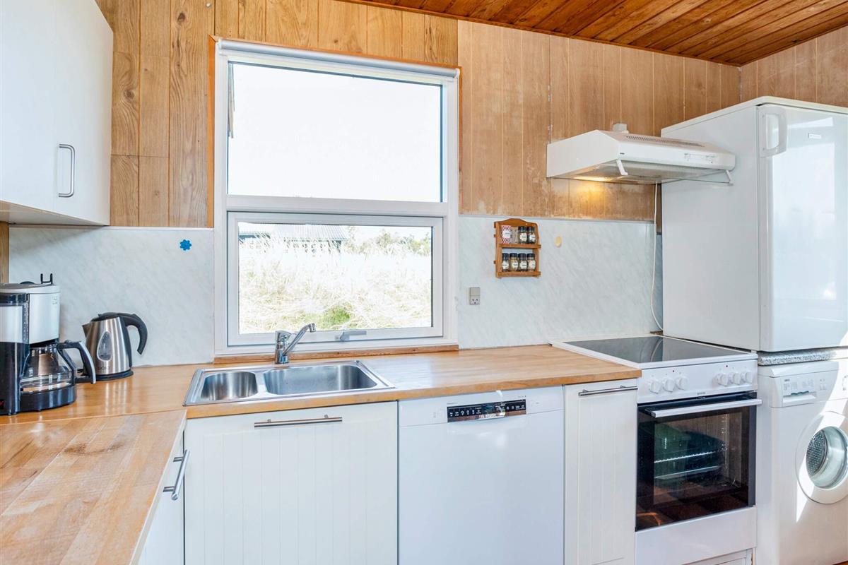 Küche und Wohnraum sind offen kombiniert. Im Wohnzimmer können Sie es sich gemütlich machen, fernsehen oder lesen, während der Holzofen wohlige Wärme verbreitet. Die Küche ist gut ausgestattet, u.a. mit Ceranfeldherd und Spülmaschine. Es gibt drei Schlafzimmer und ein Bad. Zur guten Ausstattung gehören natürlich auch Waschmaschine, Trockner und eine schnelle, unbegrenzte WLAN-Internetverbindung über Glasfaserkabel. Von der großen Terrasse aus bietet sich ein schöner Blick auf die Heide- und Dünenlandschaft. \