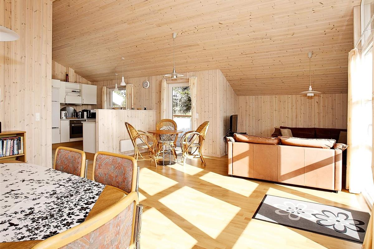 Gepflegtes Ferienhaus auf einem großen, ungestörten Naturgrundstück. Es gibt sowohl offene als auch überdachte Terrassenflächen am Haus, so dass Sie sonnige oder geschützte Plätze finden können. Das Haus liegt in einem ruhigen Ferienhausgebiet, nahe guter Badestrände. Der Ort Klitmøller bietet sowohl Einkaufsmöglichkeiten als auch Restaurants und liegt nur einen kurzen Spaziergang vom Haus entfernt. Am Strand kann man frischen Fisch kaufen, surfen und natürlich Spaziergänge machen, auf denen man mit etwas Glück ein Stück Bernstein findet.