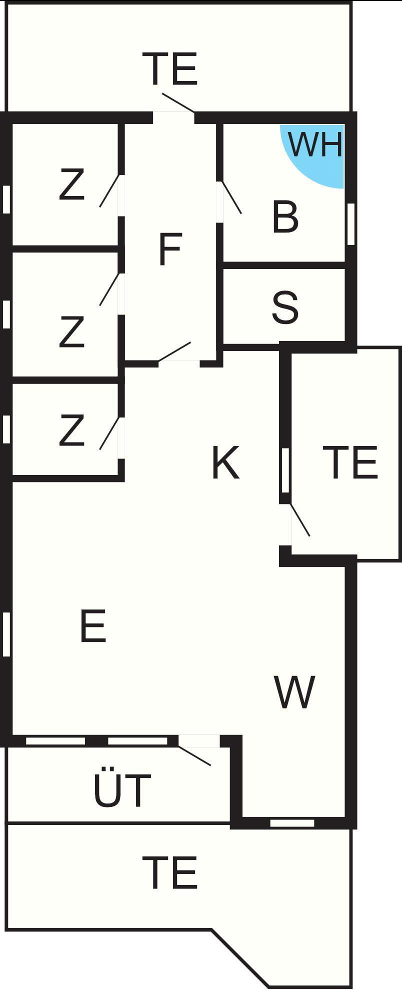 Bad: WC, Waschb., Dusche, Fußbodenheiz.