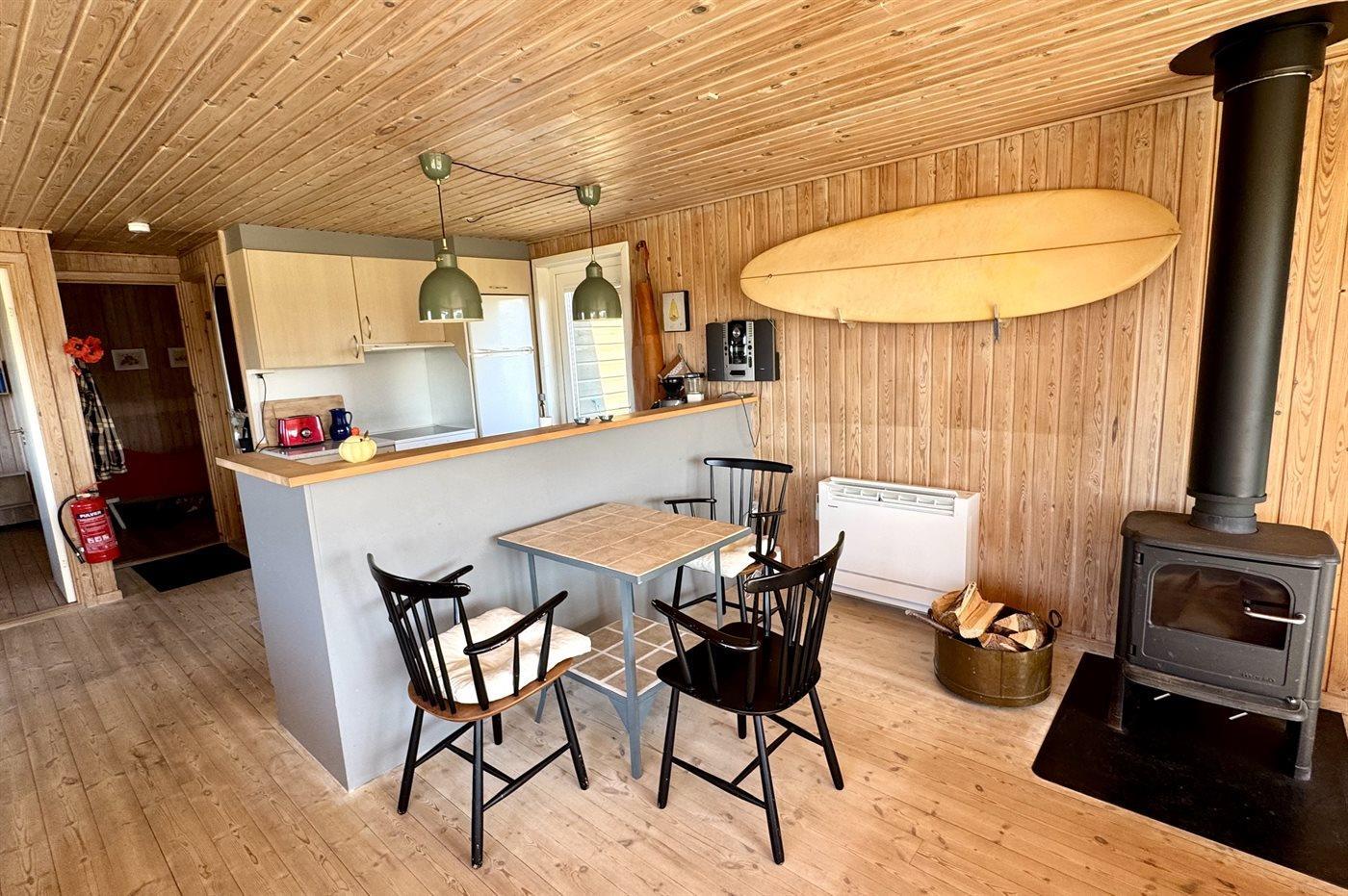 Comfortabel vakantiehuis voor 6 personen nabij zee met houtkachel, terras en moderne keuken in Klitmøller.