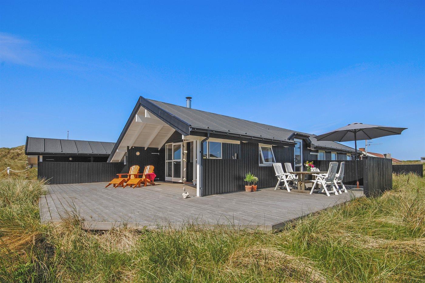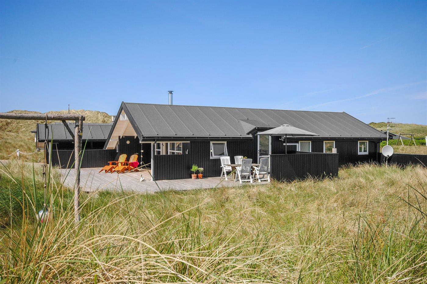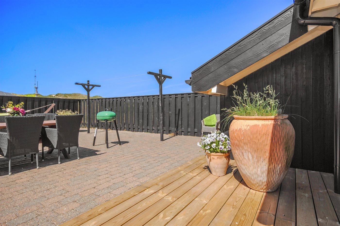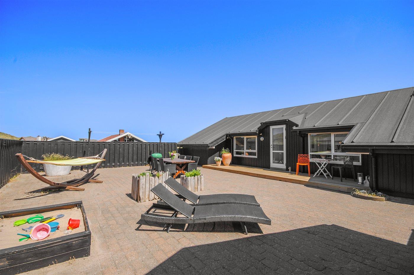 De vakantiewoning is gelegen op een 1800 m² groot Duingrond. Afstand tot de zee 127 m. Dichtstbijzijnde winkel 1000 m. Bij de vakantiewoning hoort 180 m² terras. Waarvan in totaal 120 m² beschut terras. Schommel. Zandbak. Buitendouche. Carport ter beschikking. Parkeerplaats bij het huis.