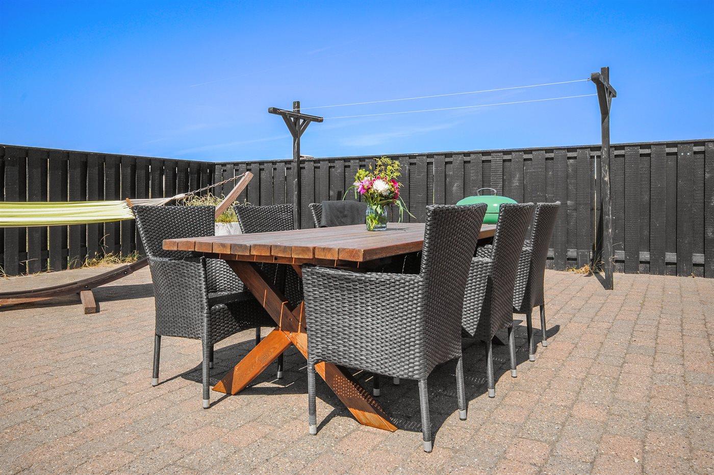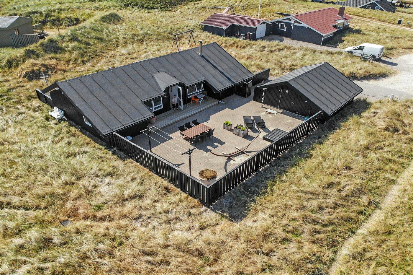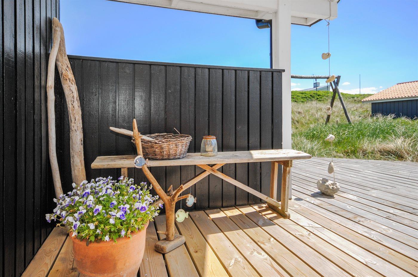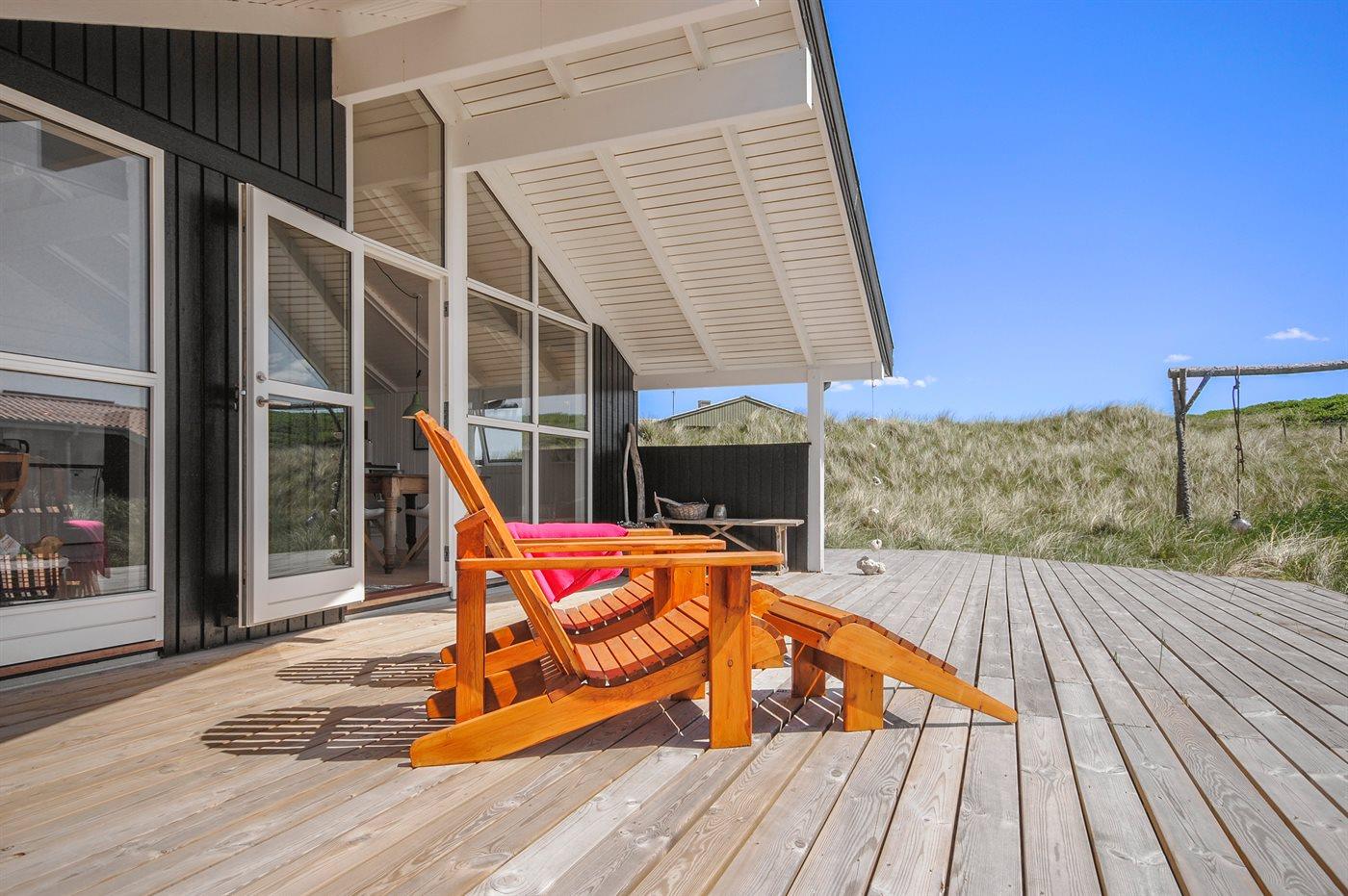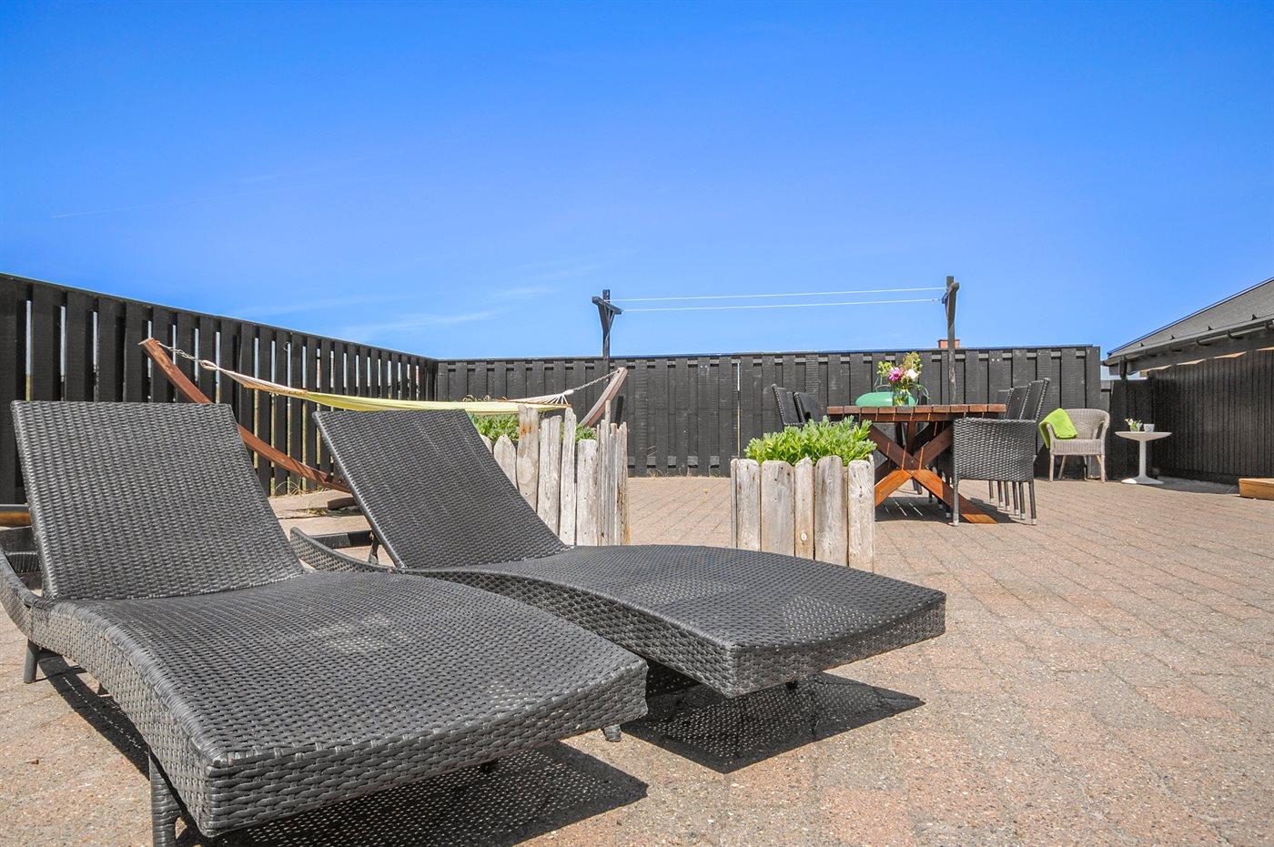 De vakantiewoning is gelegen op een 1800 m² groot Duingrond. Afstand tot de zee 127 m. Dichtstbijzijnde winkel 1000 m. Bij de vakantiewoning hoort 180 m² terras. Waarvan in totaal 120 m² beschut terras. Schommel. Zandbak. Buitendouche. Carport ter beschikking. Parkeerplaats bij het huis.