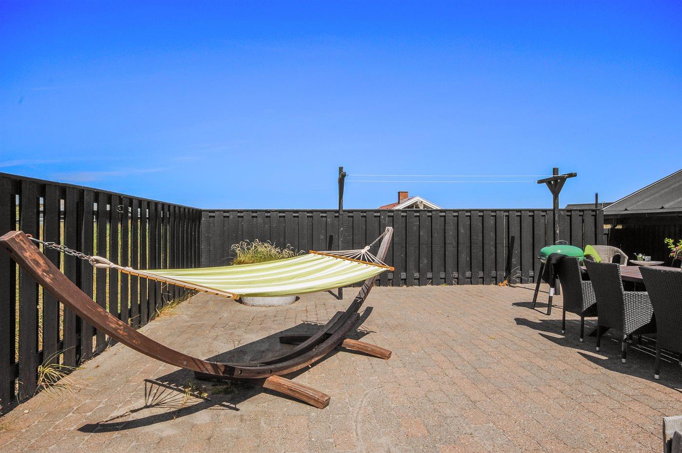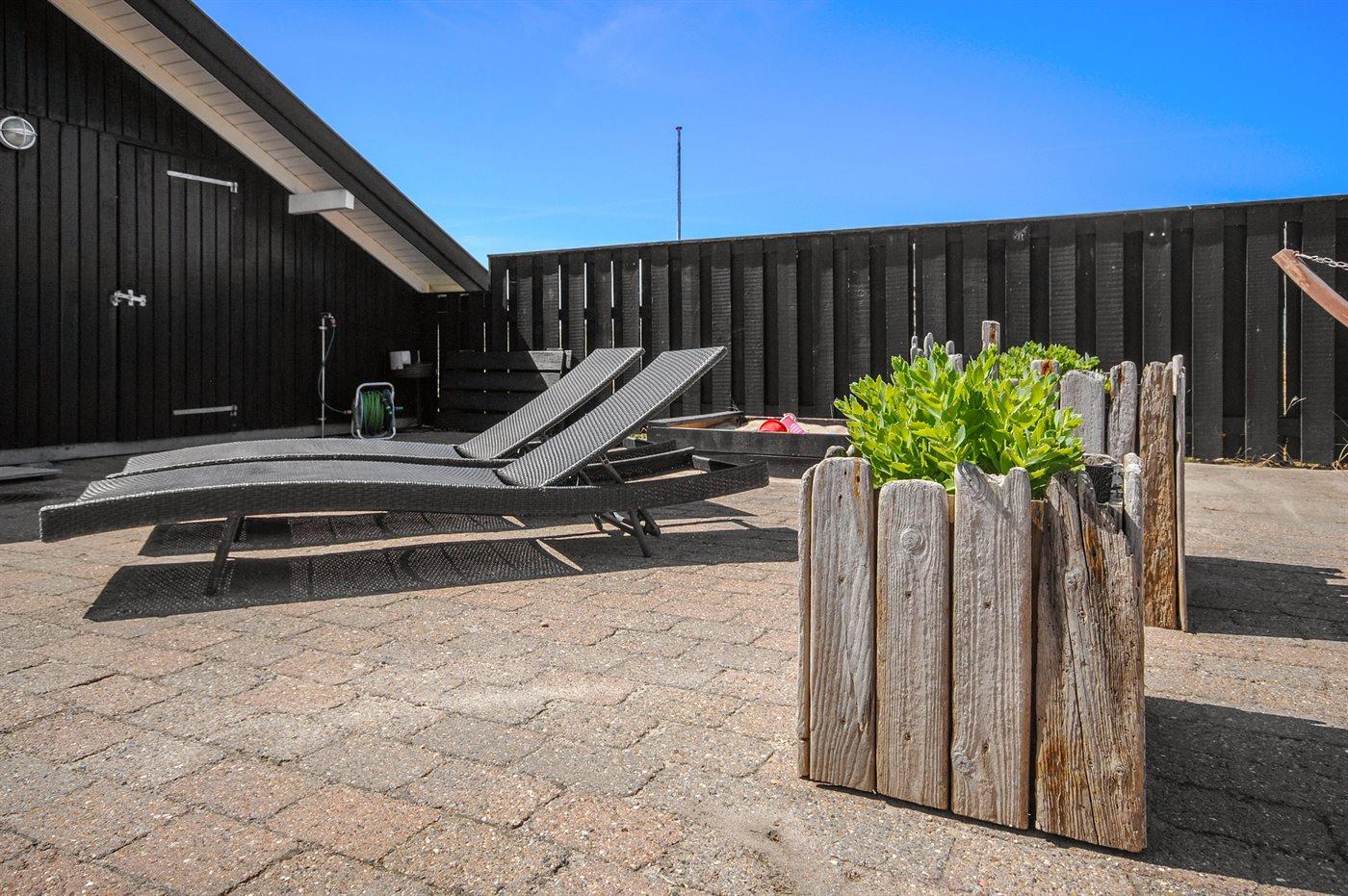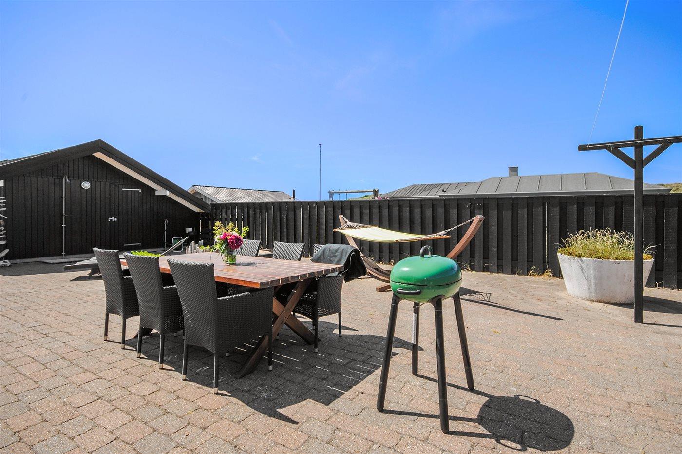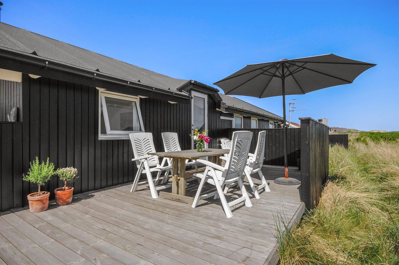 De vakantiewoning is gelegen op een 1800 m² groot Duingrond. Afstand tot de zee 127 m. Dichtstbijzijnde winkel 1000 m. Bij de vakantiewoning hoort 180 m² terras. Waarvan in totaal 120 m² beschut terras. Schommel. Zandbak. Buitendouche. Carport ter beschikking. Parkeerplaats bij het huis.