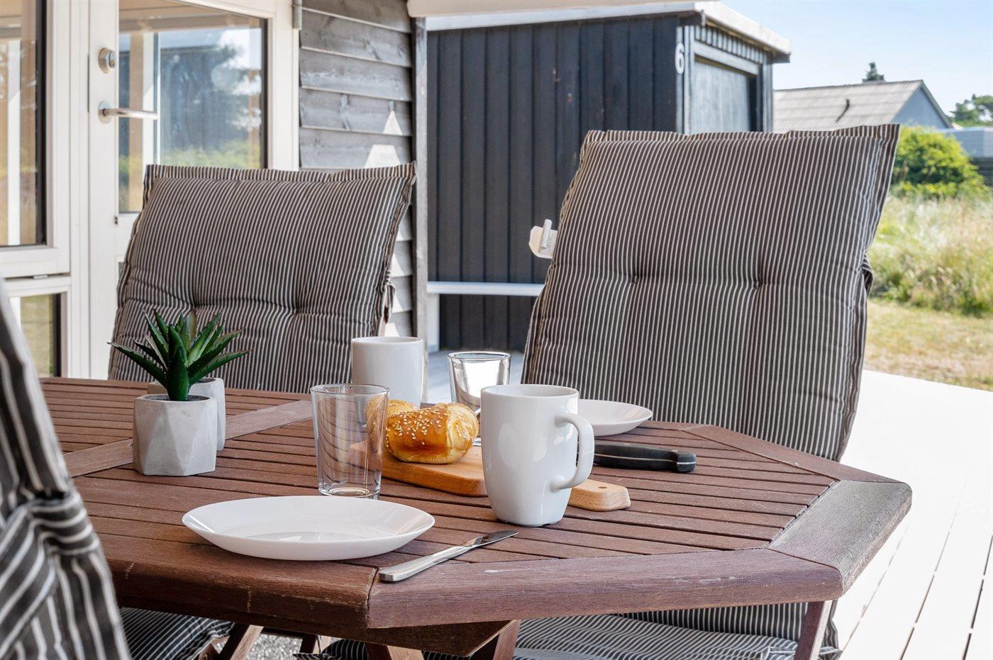 De vakantiewoning is gelegen op een 1400 m² groot natuural grond. Afstand tot de zee 700 m. Dichtstbijzijnde winkel 600 m. Bij de vakantiewoning hoort 42 m² terras. Daarnaast is er een 15 m² groot overdekt terras. Schommel. Zandbak. Barbecue. Parkeerplaats bij het huis.