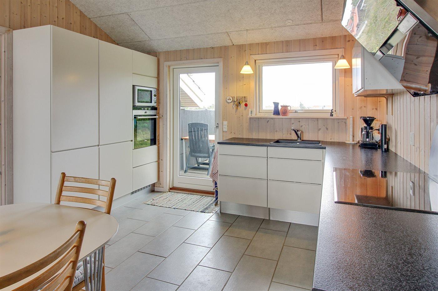 De keuken is uitgerust met koelkast Er is 4 inductiekookplaten, heteluchtoven, magnetron en vaatwasser.
