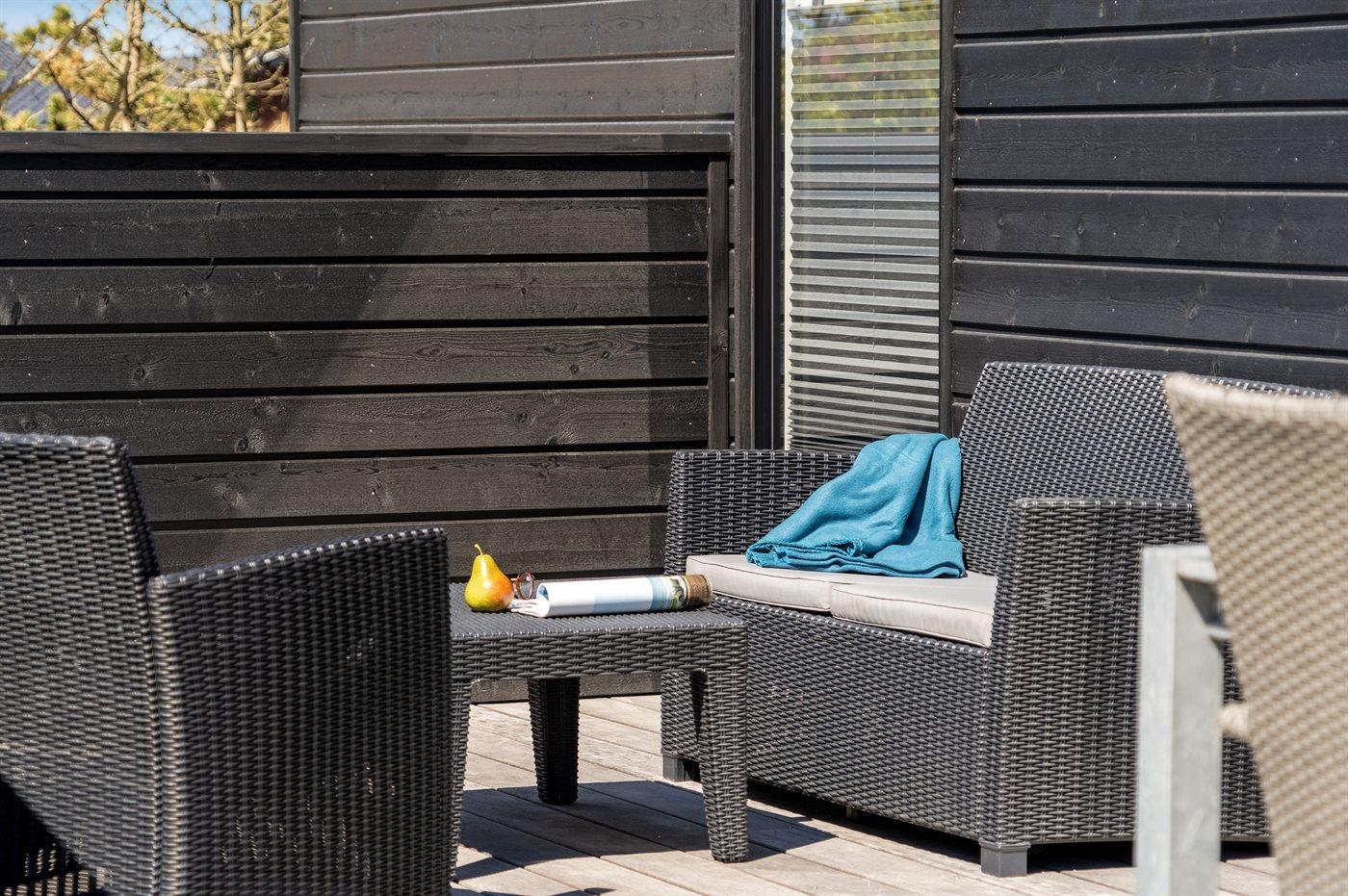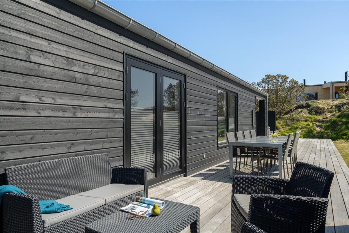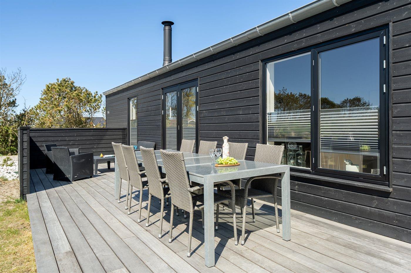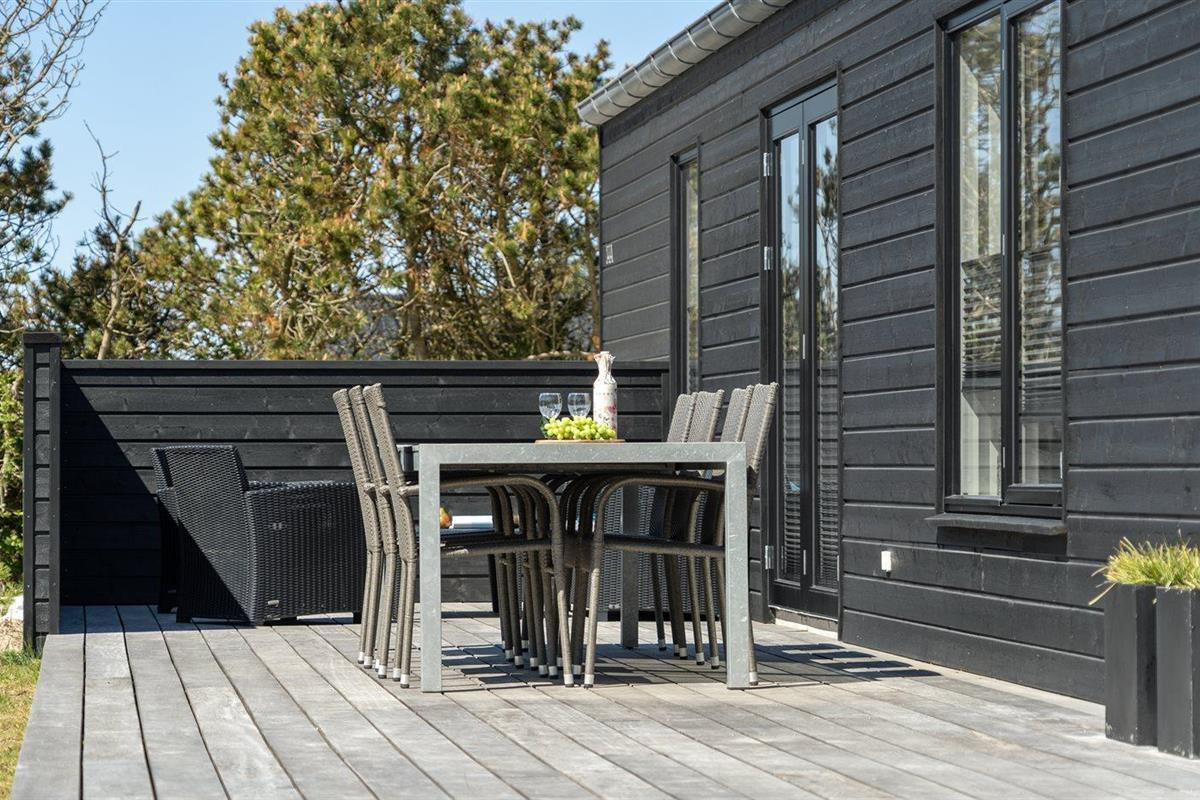 De vakantiewoning is gelegen op een 1202 m² groot Duingrond. Afstand tot de zee 650 m. Dichtstbijzijnde winkel 500 m. Bij de vakantiewoning hoort 80 m² terras. Daarnaast is er een 14 m² groot overdekt terras. Barbecue. Parkeerplaats bij het huis.