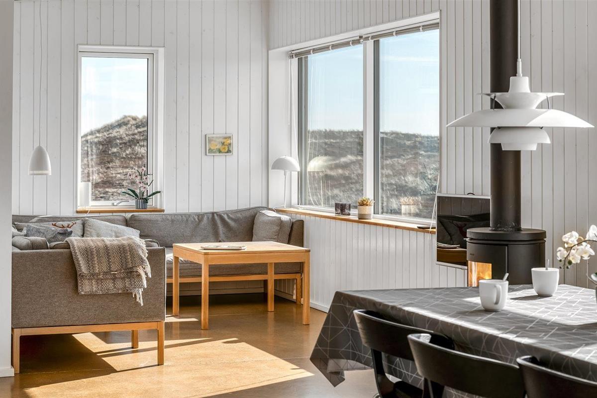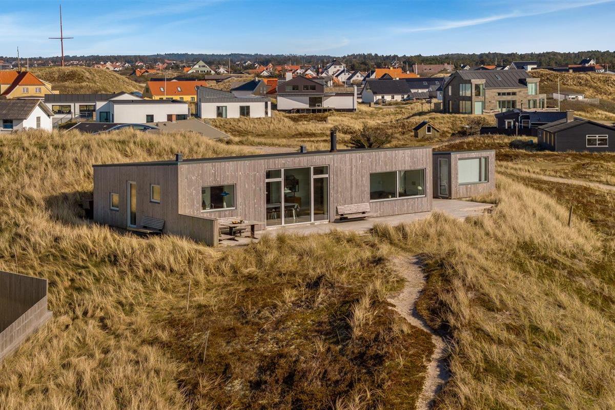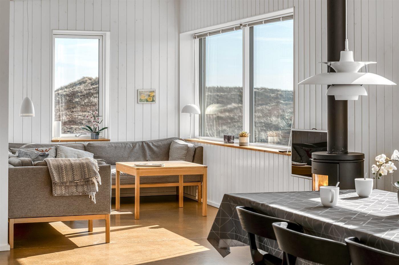 Modern vakantiehuis in Klitmøller met zeezicht, vlak bij strand, houtkachel en vloerverwarming.
