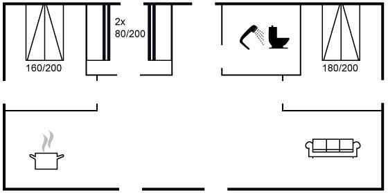 Er zijn in totaal 3 slaapkamers. De slaapplaatsen zijn als volgt verdeeld: 4 slaapplaatsen in tweepersoonsbedden. 2 slaapplaatsen in stapelbed. Verder is kinderbed ter beschikking.