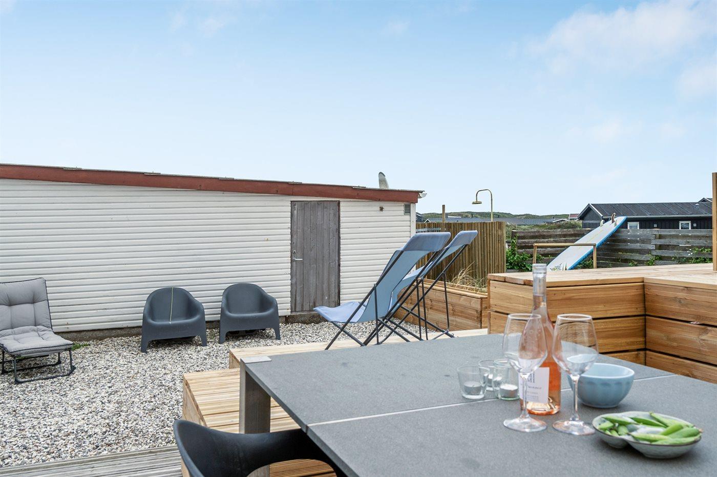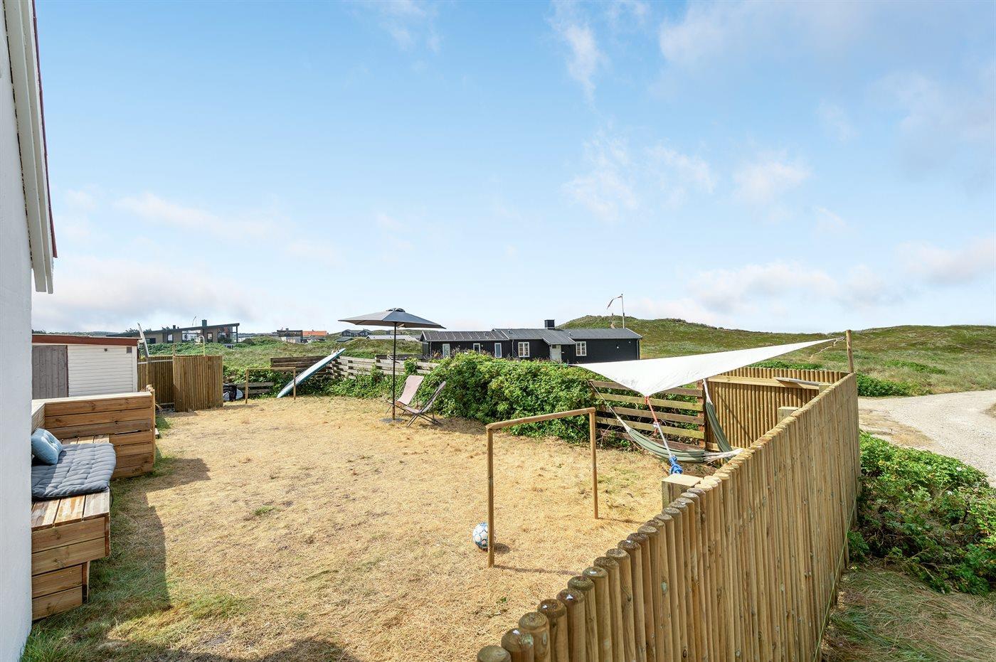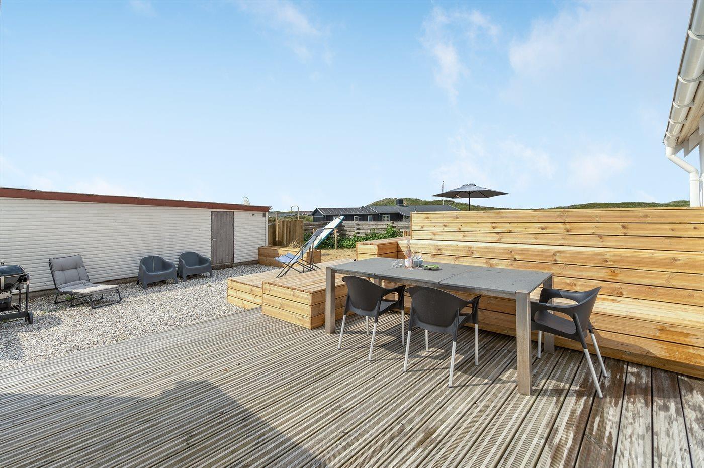 De vakantiewoning is gelegen op een 1170 m² groot natuural grond. Afstand tot de zee 150 m. Dichtstbijzijnde winkel 700 m. Bij de vakantiewoning hoort 50 m² terras. Gereedschapsruimte. Zandbak. Parkeerplaats bij het huis.