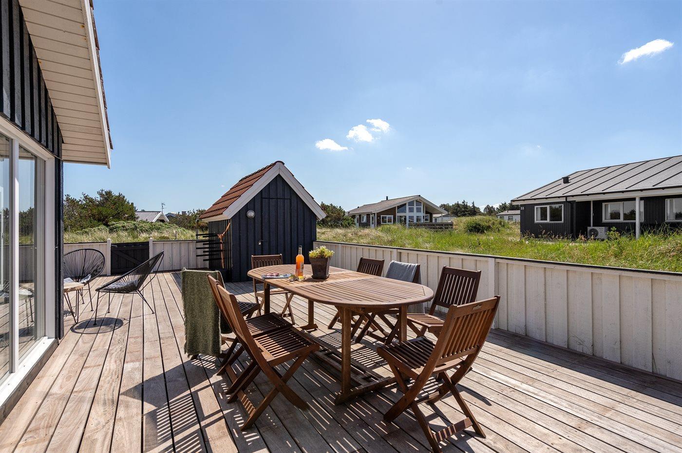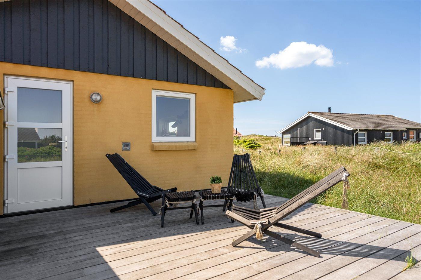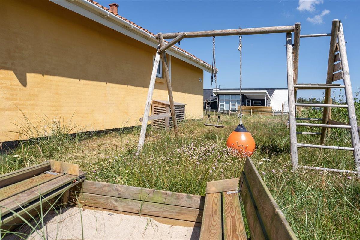De vakantiewoning is gelegen op een 1100 m² groot natuural grond. De grond is omheind. Afstand tot de zee 600 m. Dichtstbijzijnde winkel 500 m. Er is een golfbaan op een afstand van 5000 m. Bij de vakantiewoning hoort 100 m² terras en 12 m² groot overdekt terras - waarvan in totaal 75 m² beschut terras. Gereedschapsruimte. Schommel. Zandbak. Barbecue. Het huis heeft een stopcontact voor het opladen van een elektrische auto. Parkeerplaats bij het huis.