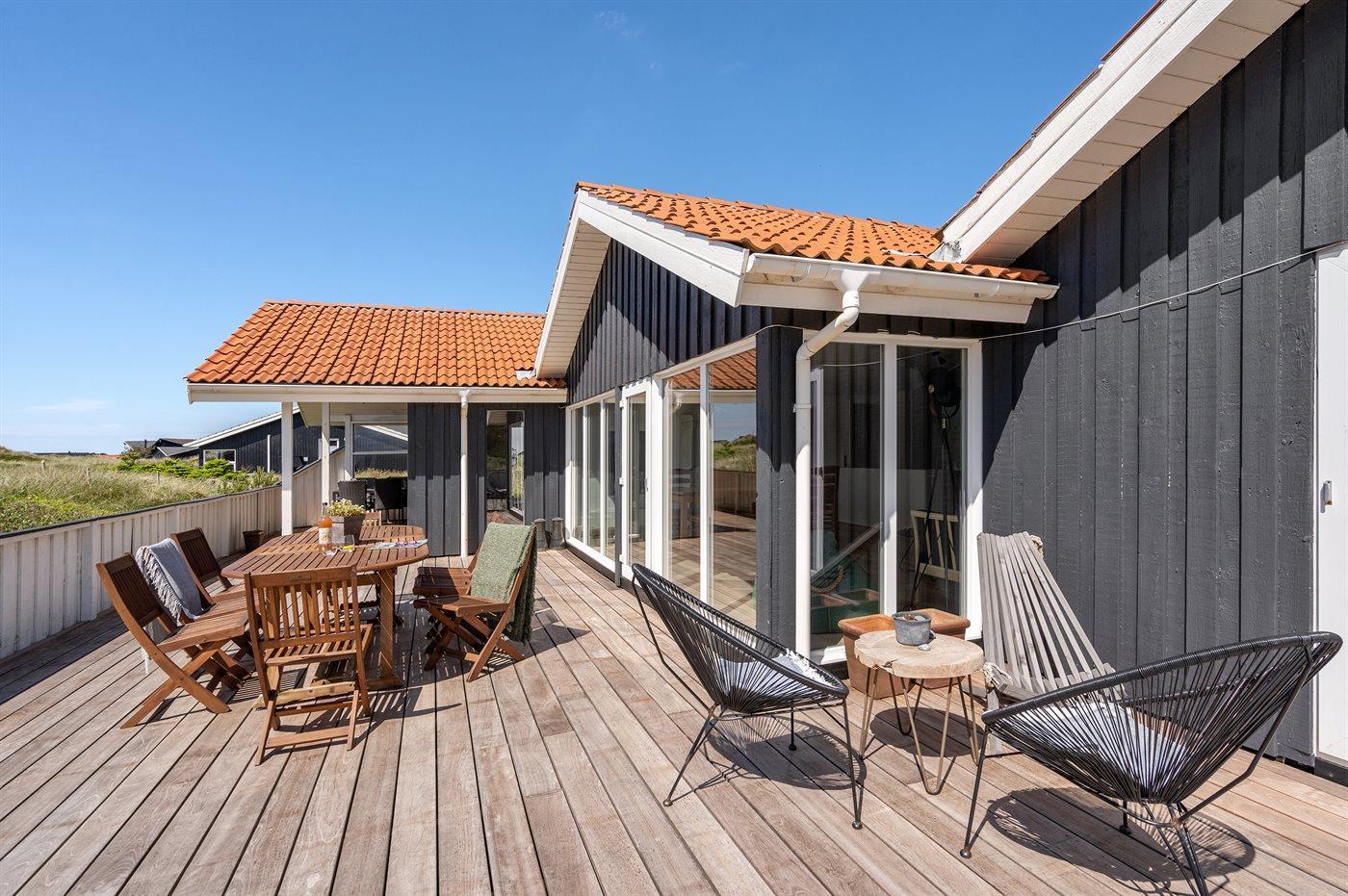Ruim en modern vakantiehuis in Klitmøller op 600m van zee, met sauna en omheind terras voor een ontspannen verblijf.