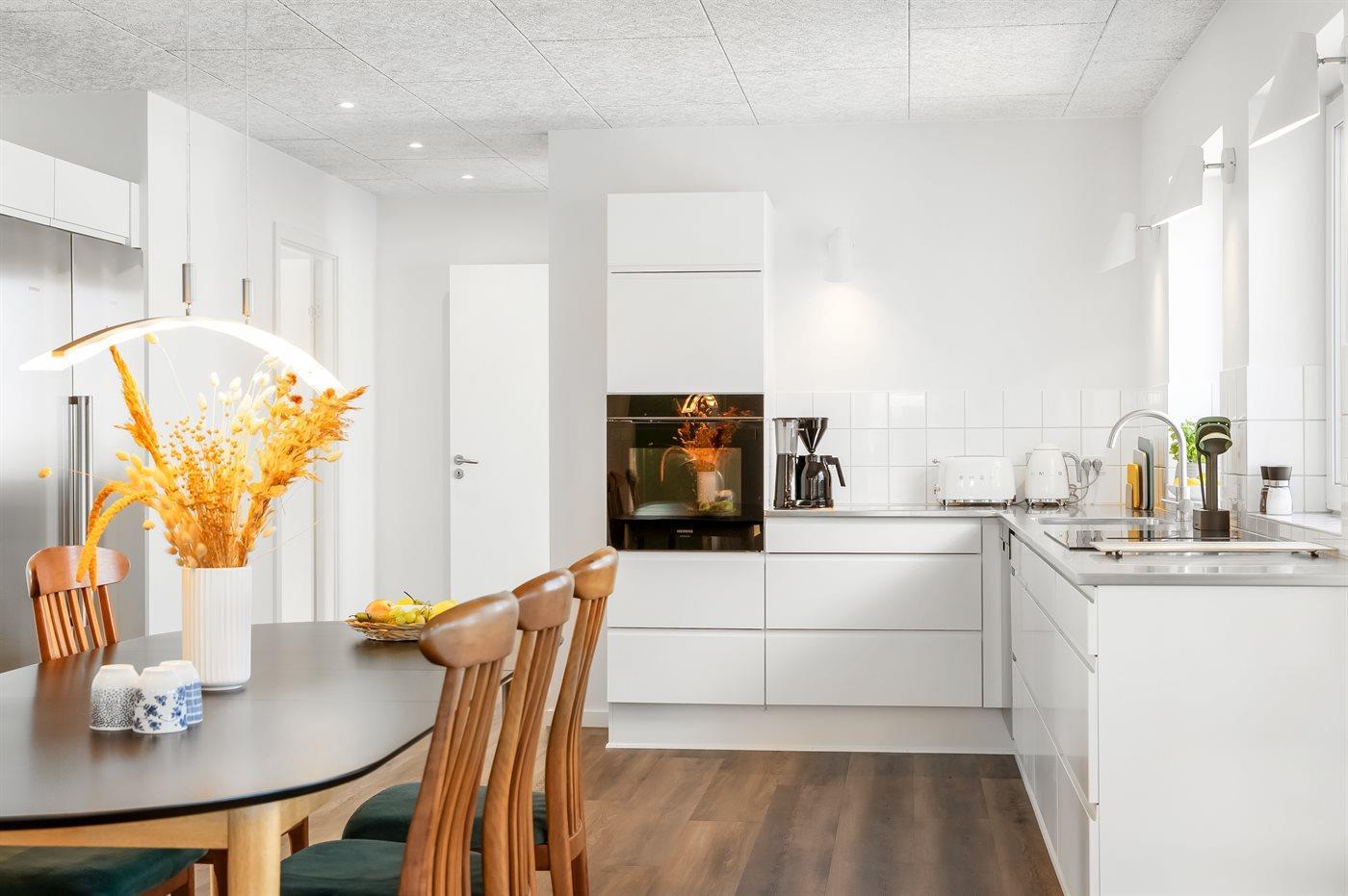 De keuken is uitgerust met koelkast Er is 4 inductiekookplaten, heteluchtoven, magnetron en vaatwasser.