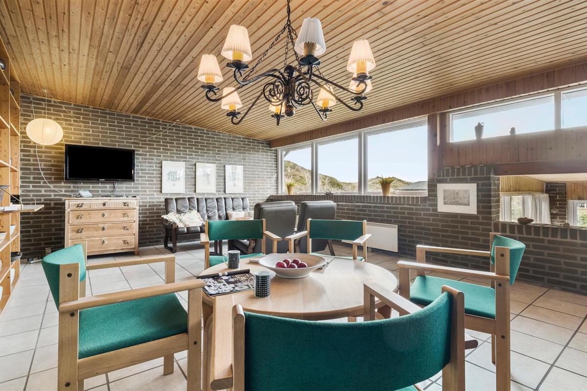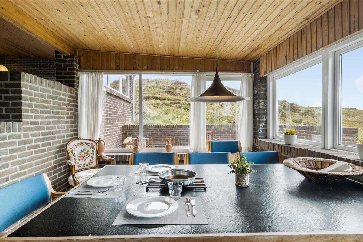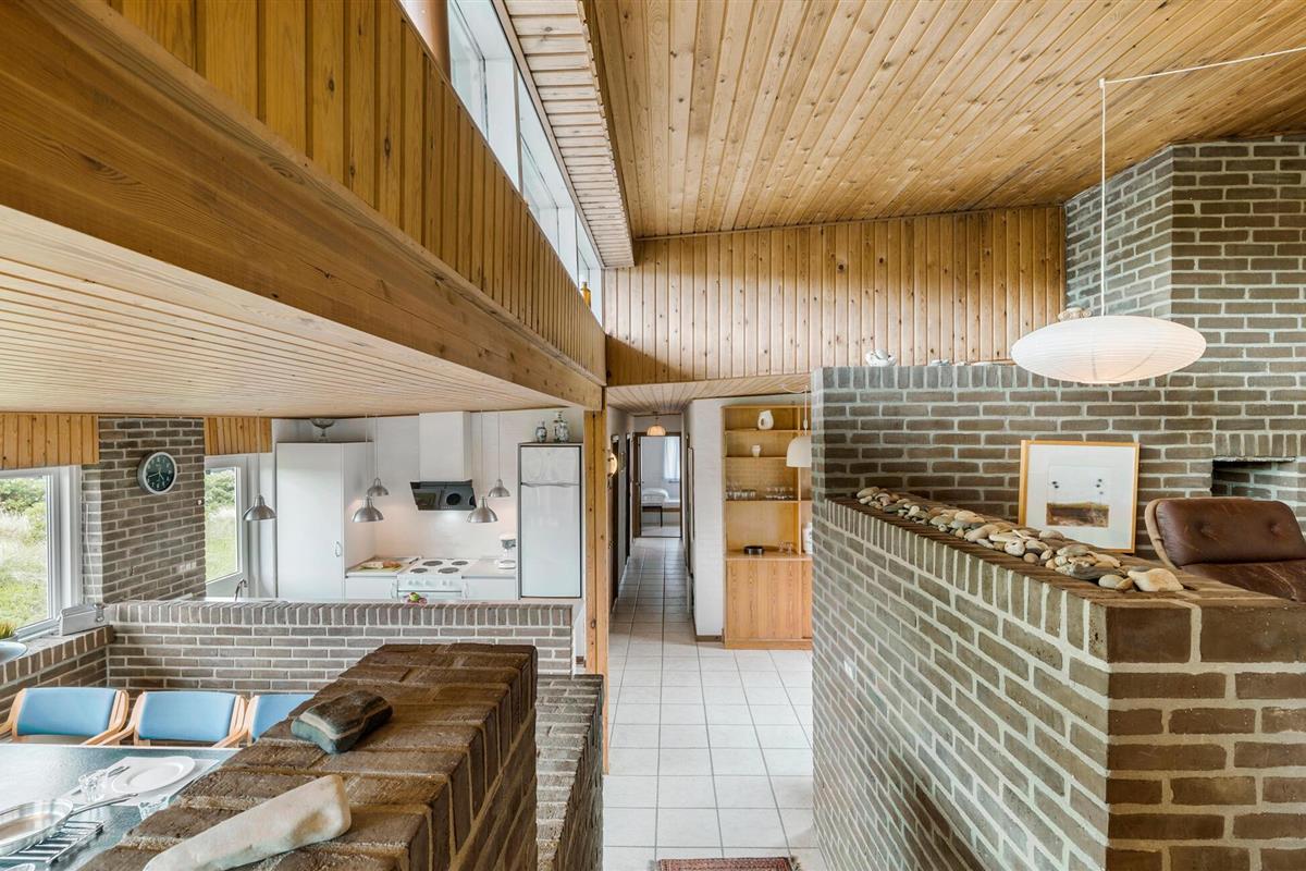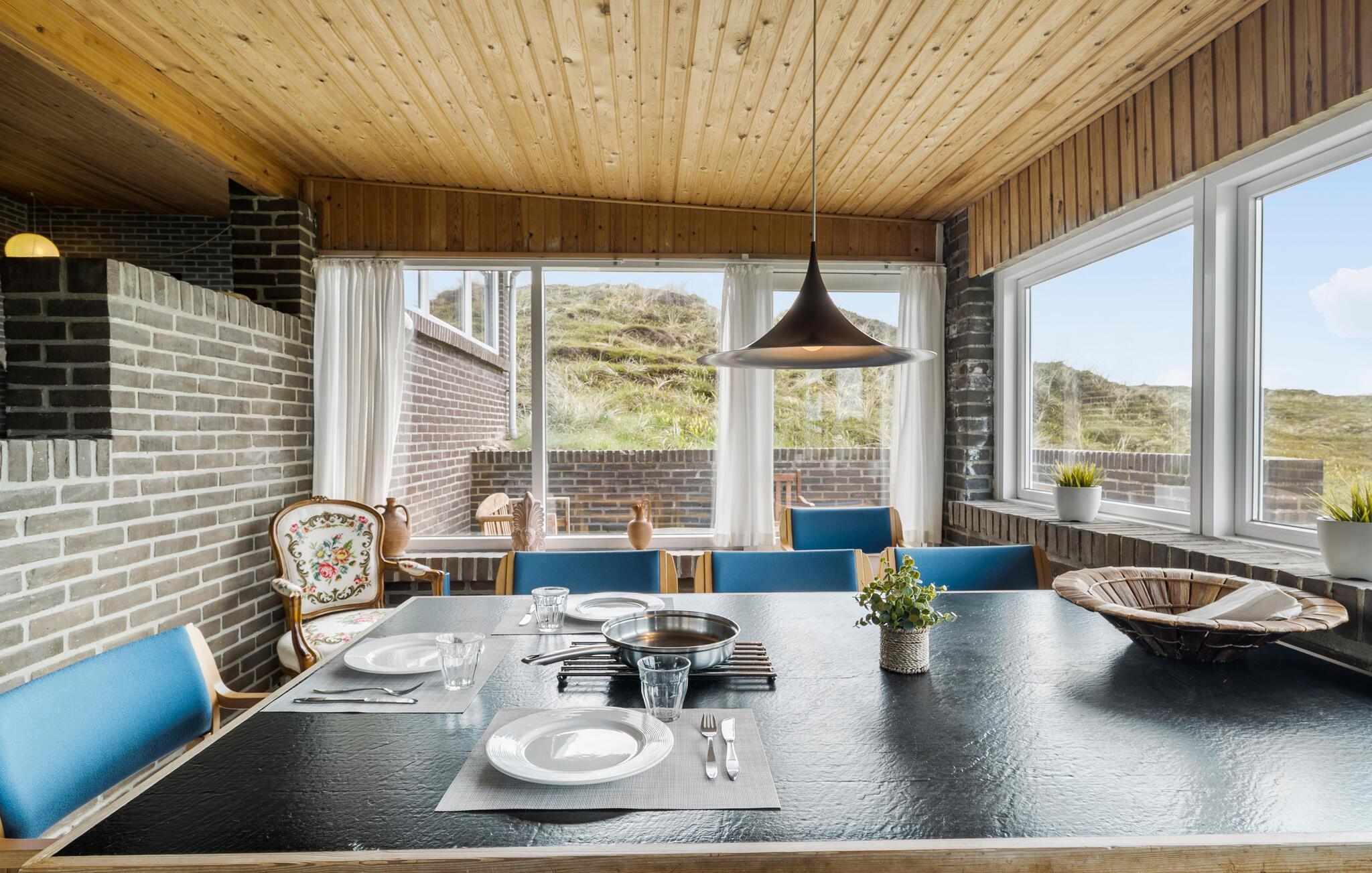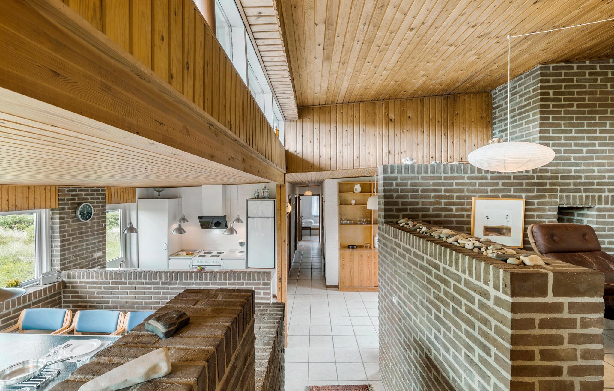 Als je op zoek bent naar een ruim vakantiehuis op een fantastische locatie, dan is dit charmante huis in de buurt van Klitmøller en de Noordzee de perfecte keuze voor jou. Er is genoeg ruimte voor een verblijf met een grotere groep, en het interieur is warm en rustiek met muren van zichtbare bakstenen en goed bewaarde houten plafonds, waardoor het interieur een gezellige, huiselijke sfeer uitstraalt waarin het gemakkelijk ontspannen is. Profiteer van het natuurlijke licht door de vele ramen, die vanaf verschillende niveaus een prachtig uitzicht op de duinen bieden. Mocht het weer een beetje tegenzitten, dan kun je de houtkachel aansteken, genieten van het knapperend haardvuur en de avond afsluiten met bordspellen en lekkere hapjes.