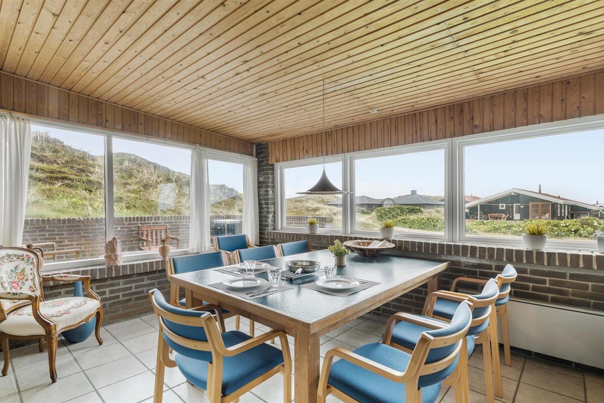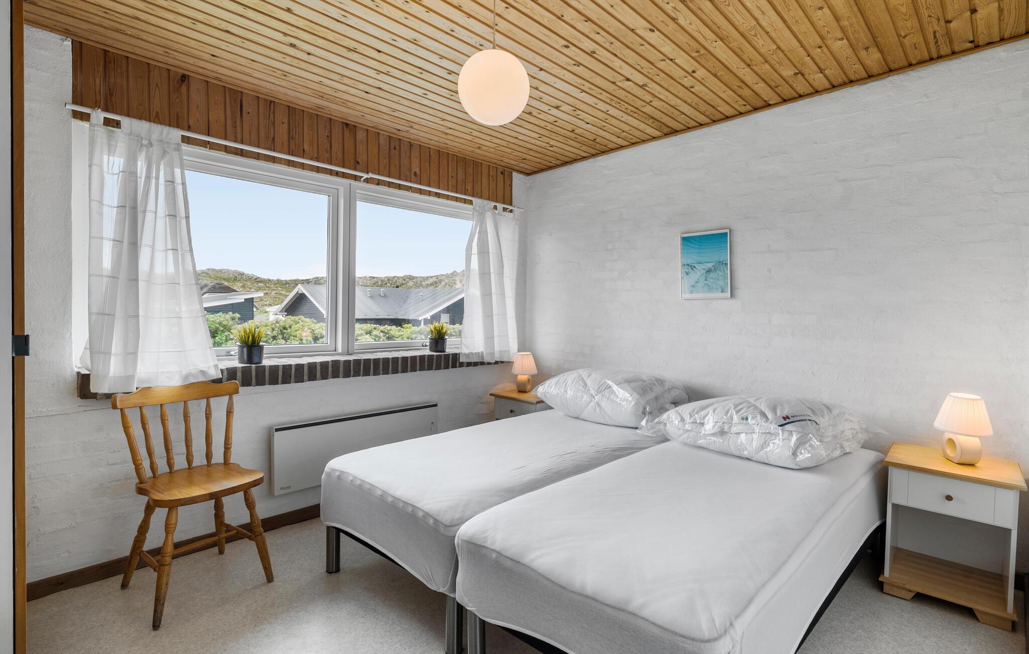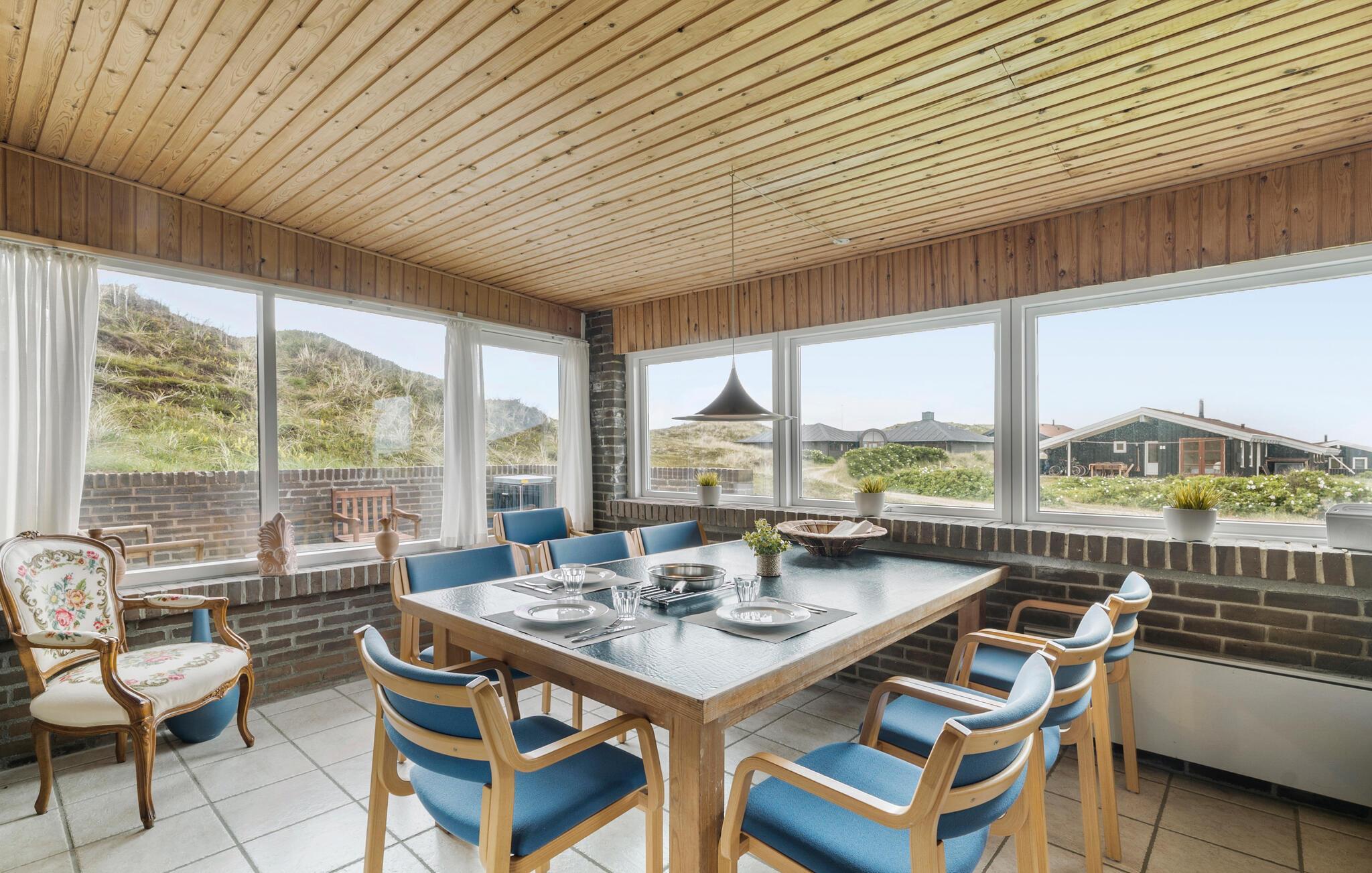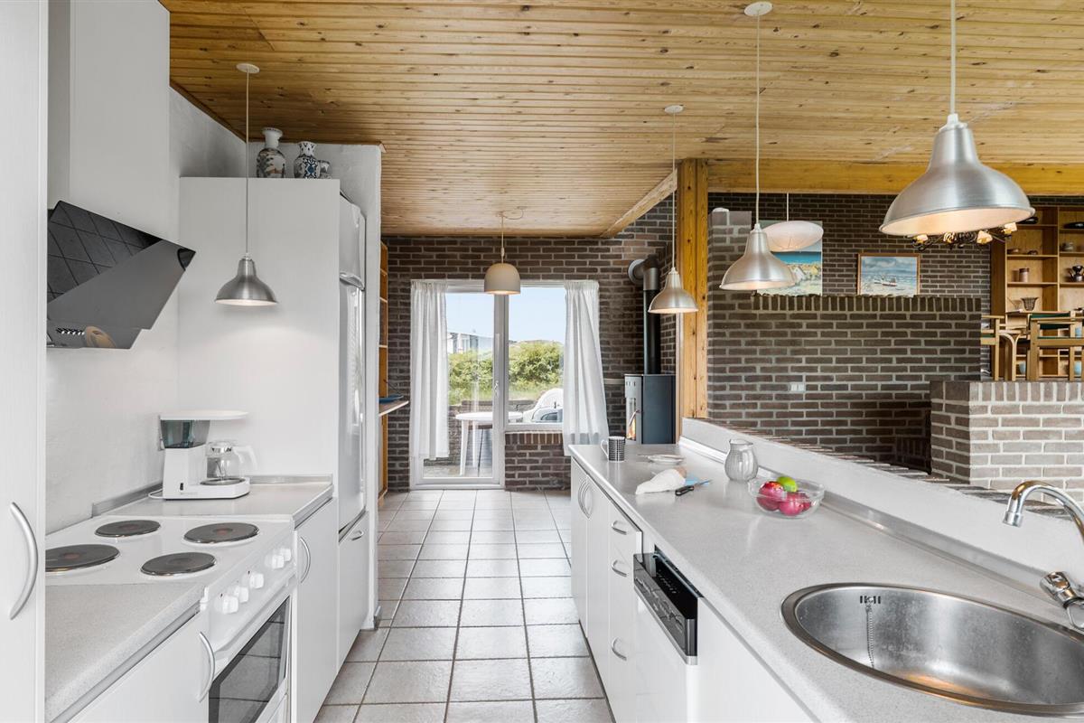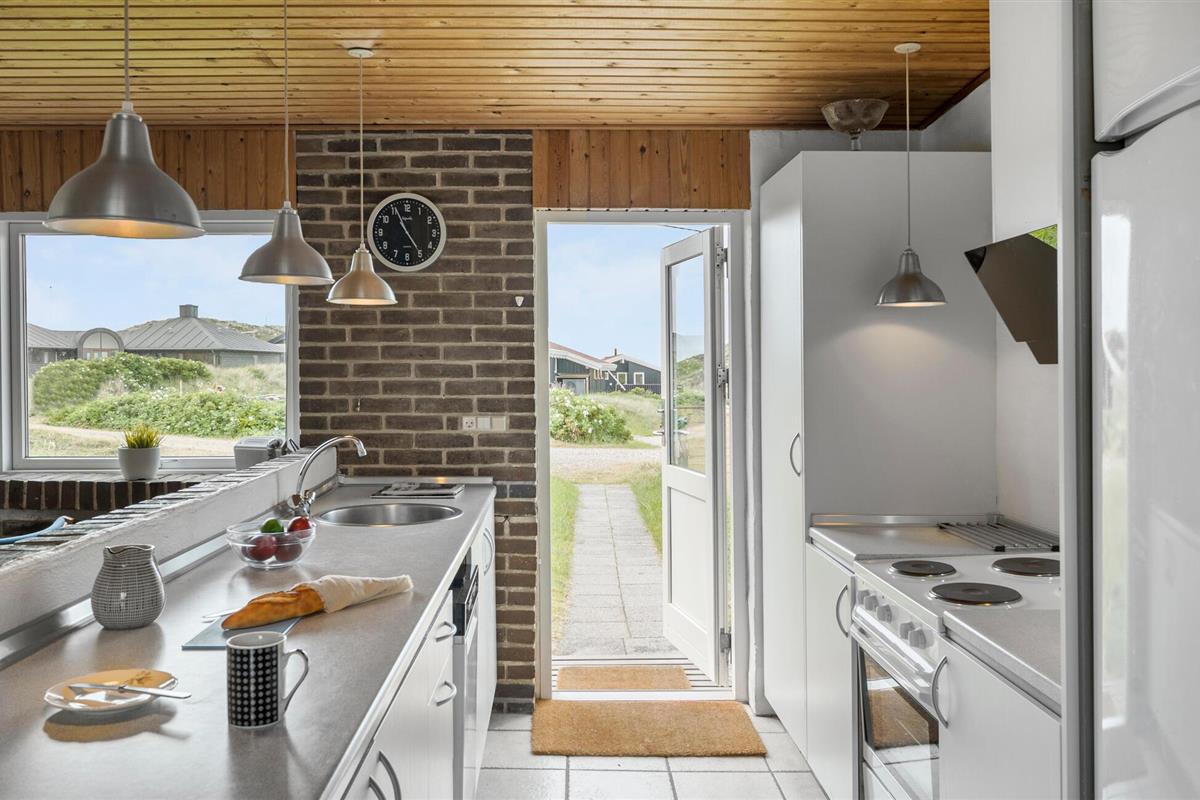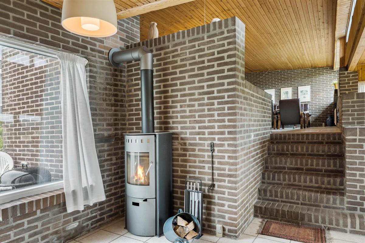Als je op zoek bent naar een ruim vakantiehuis op een fantastische locatie, dan is dit charmante huis in de buurt van Klitmøller en de Noordzee de perfecte keuze voor jou. Er is genoeg ruimte voor een verblijf met een grotere groep, en het interieur is warm en rustiek met muren van zichtbare bakstenen en goed bewaarde houten plafonds, waardoor het interieur een gezellige, huiselijke sfeer uitstraalt waarin het gemakkelijk ontspannen is. Profiteer van het natuurlijke licht door de vele ramen, die vanaf verschillende niveaus een prachtig uitzicht op de duinen bieden. Mocht het weer een beetje tegenzitten, dan kun je de houtkachel aansteken, genieten van het knapperend haardvuur en de avond afsluiten met bordspellen en lekkere hapjes.