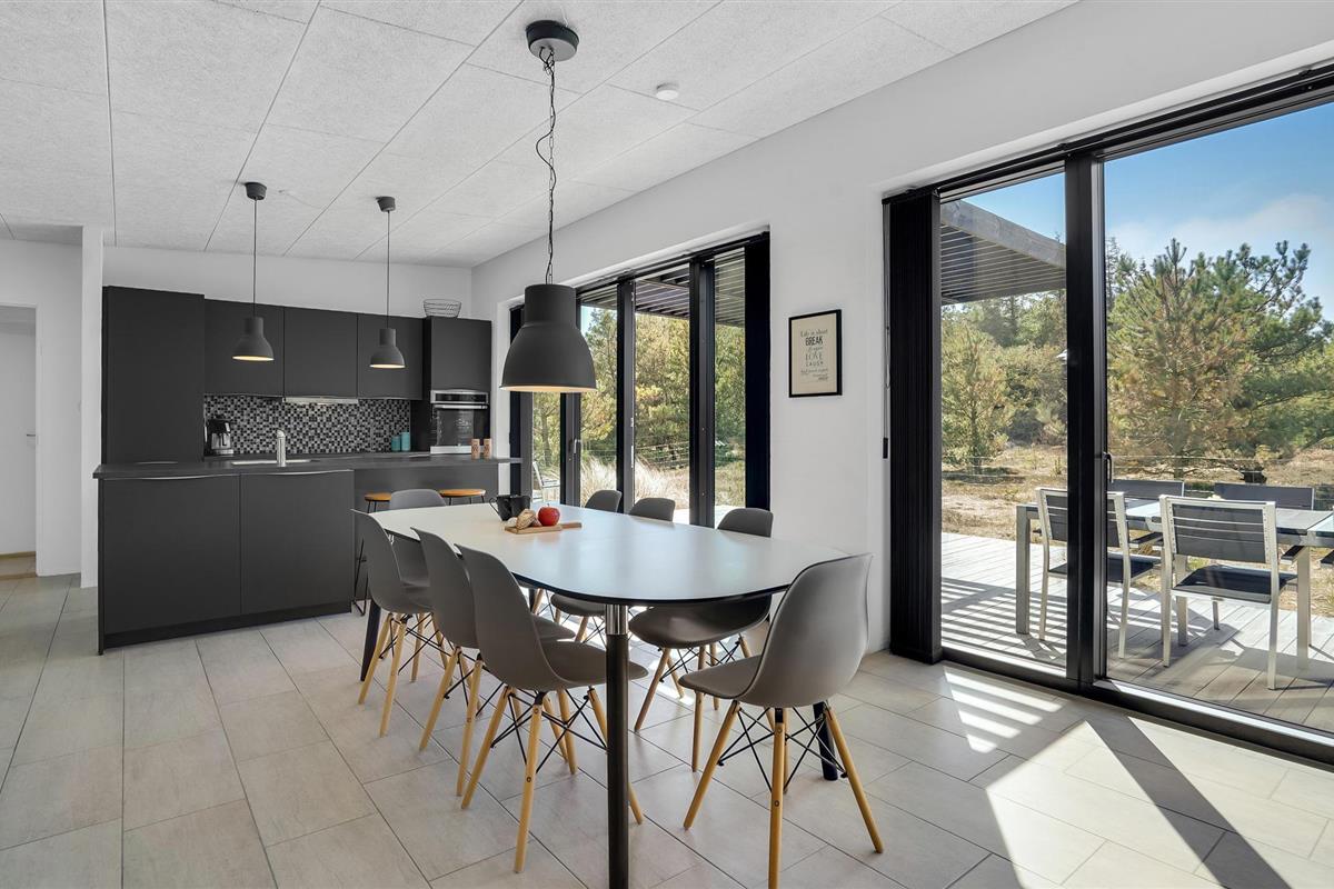 Welkom in dit ongelooflijk mooie vakantiehuis, het geniet niet alleen van een prachtige omgeving maar is ook echt goed ingericht. De keuken en het woongedeelte zijn handig ingedeeld omdat de kamers open zijn. Er zijn ook drie slaapkamers in het huis, een daarvan is een familiekamer voor vier personen. Een van de twee badkamers heeft een massagebad. Grote ramen laten veel licht in het huis en bieden een prachtig uitzicht op het landschap. Een deel van het terras is overdekt. Op 800 meter afstand ligt de Noordzee. Ervaar de sfeer hier, het gebrul van de branding als de golven op de kust slaan. Klitmøller is populair en bekend onder surfers, de goede wind en weersomstandigheden hebben de plaats de bijnaam Cold Hawaii gegeven.