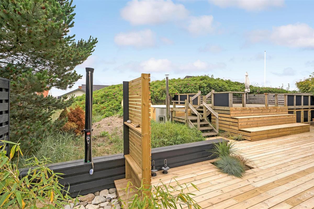 Het gedeeltelijk overdekte terras nodigt u uit om vele uren buiten door te brengen. Geniet van specialiteiten van de grill en een prachtig uitzicht op zee en ontspan in het Finse houten bad.