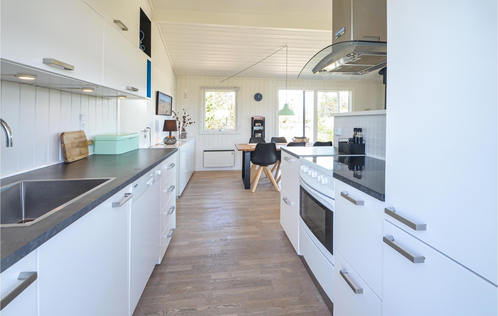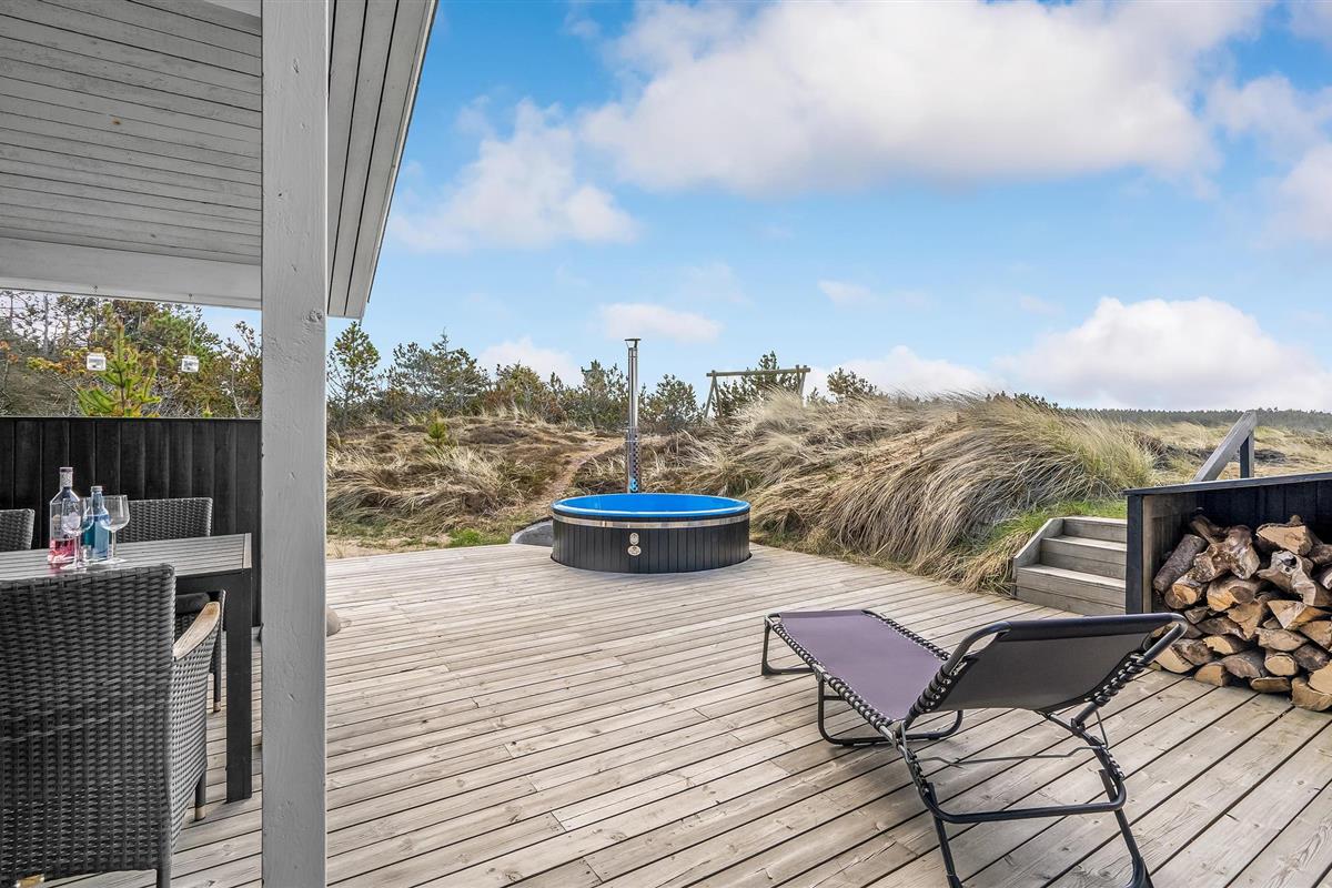 Dit smaakvol gerenoveerde vakantiehuis is gelegen in Klitmøller, op een perceel genesteld in de duinen. Hier kunt u genieten van de rust op het gedeeltelijk overdekte terras en de geur van de nabijgelegen zee om uw neus laten waaien.