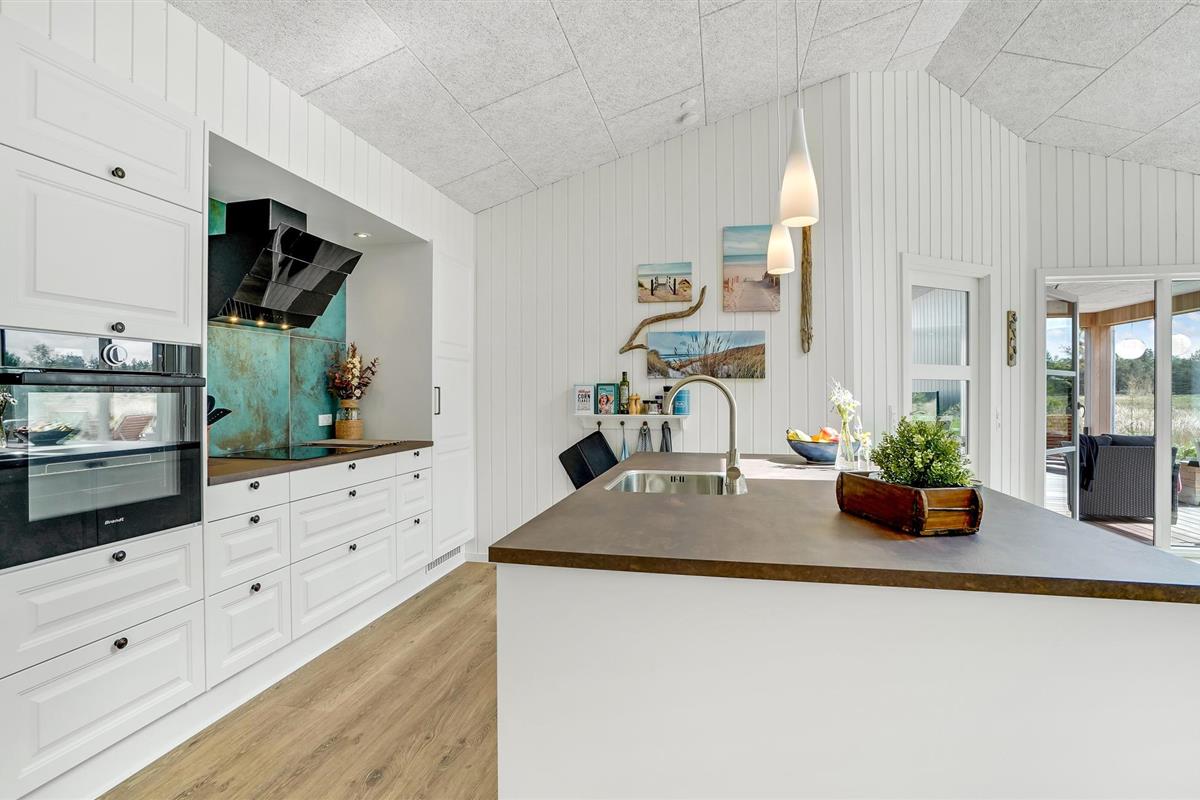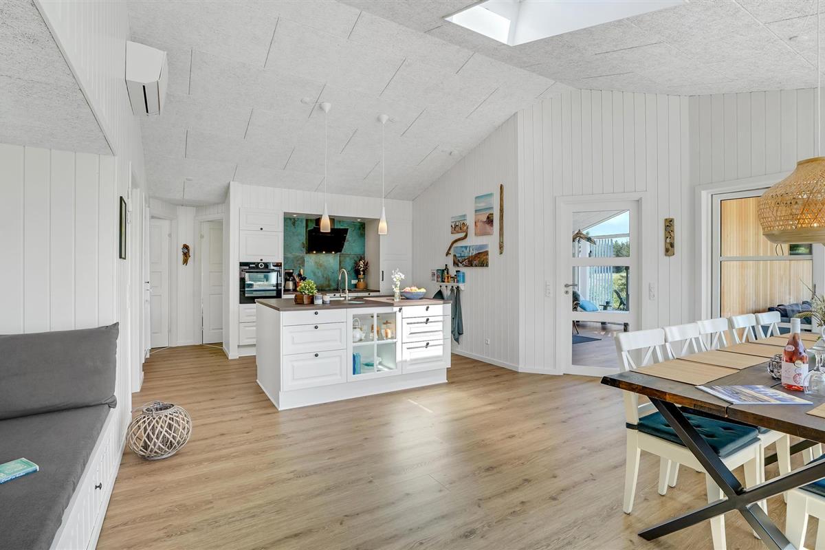 Neem de hele familie mee naar dit ruime vakantiehuis in Klitmøller. Het huis is licht en uitnodigend, en u vindt er tal van gezellige hoekjes waar u kunt ontspannen met een goed boek of genieten van het uitzicht op de prachtige natuur. De aandacht voor details en de keuze van meubels en decoraties weerspiegelen de natuur om u heen en creëren precies de juiste vakantiesfeer. Het hart van het huis is de gezellige keuken, die uitnodigt tot koken en samenzijn.