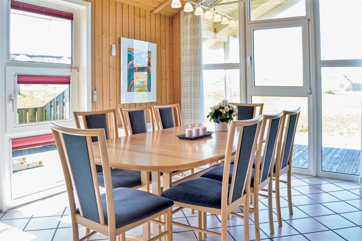 Op een van de beste locaties in Klitmøller staat dit huis met zwembad, van waaruit u uitkijkt over de beschermde duingebieden en tegelijkertijd het geluid van de Noordzee op de achtergrond hoort. Het huis is goed onderhouden en is de perfecte omgeving voor een vakantie voor één of meer gezinnen voor wie de nabijheid van het water, de duinen en de heide belangrijk is. Vooral voor natuurliefhebbers is Klitmøller een fantastisch gebied, u kunt er ongerepte natuur en het natuurpark Thy beleven. Het gebied is ideaal om te surfen en te vissen en leent zich ook goed voor lange wandelingen en fietstochten over de vele natuurpaden die in de buurt zijn.