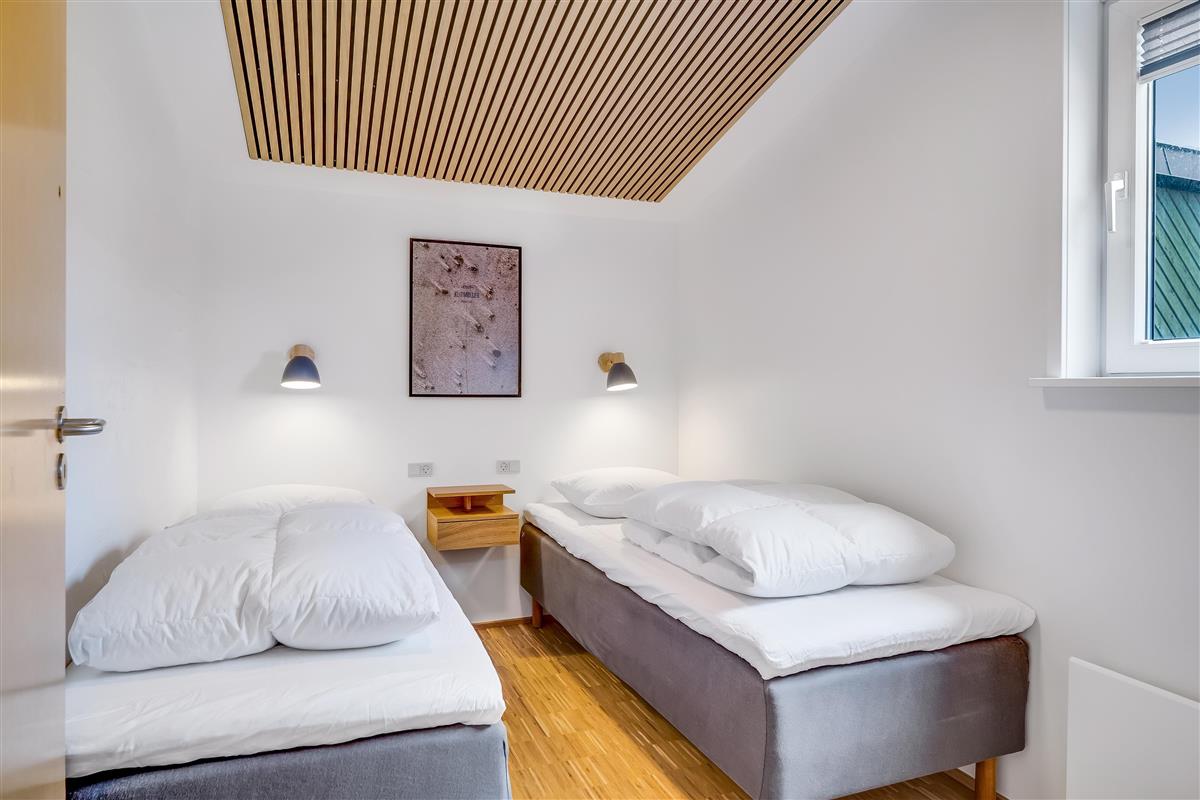The modern bathroom is equipped with a toilet, sink and shower and underfloor heating, which makes it extra comfortable to step in on cold mornings. The house also has an extra guest toilet, which ensures that there are never long waiting times, even when everyone is home. In addition, there is an indoor hot tub next to the bathroom, where you can relax and enjoy some well-being after a long day.