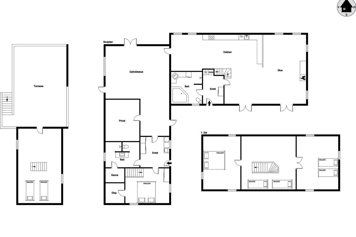 This fantastic holiday home at Ørhagevej 97 in Klitmøller, has everything you need for an unforgettable experience with family or friends. Located just 300 meters from the North Sea, this modern gem was built in 1997 and renovated in 2013, ensuring a combination of style and comfort. The home extends over a house area of 240 square meters and is situated on a fenced plot of 2000 square meters, perfect for both play and relaxation.