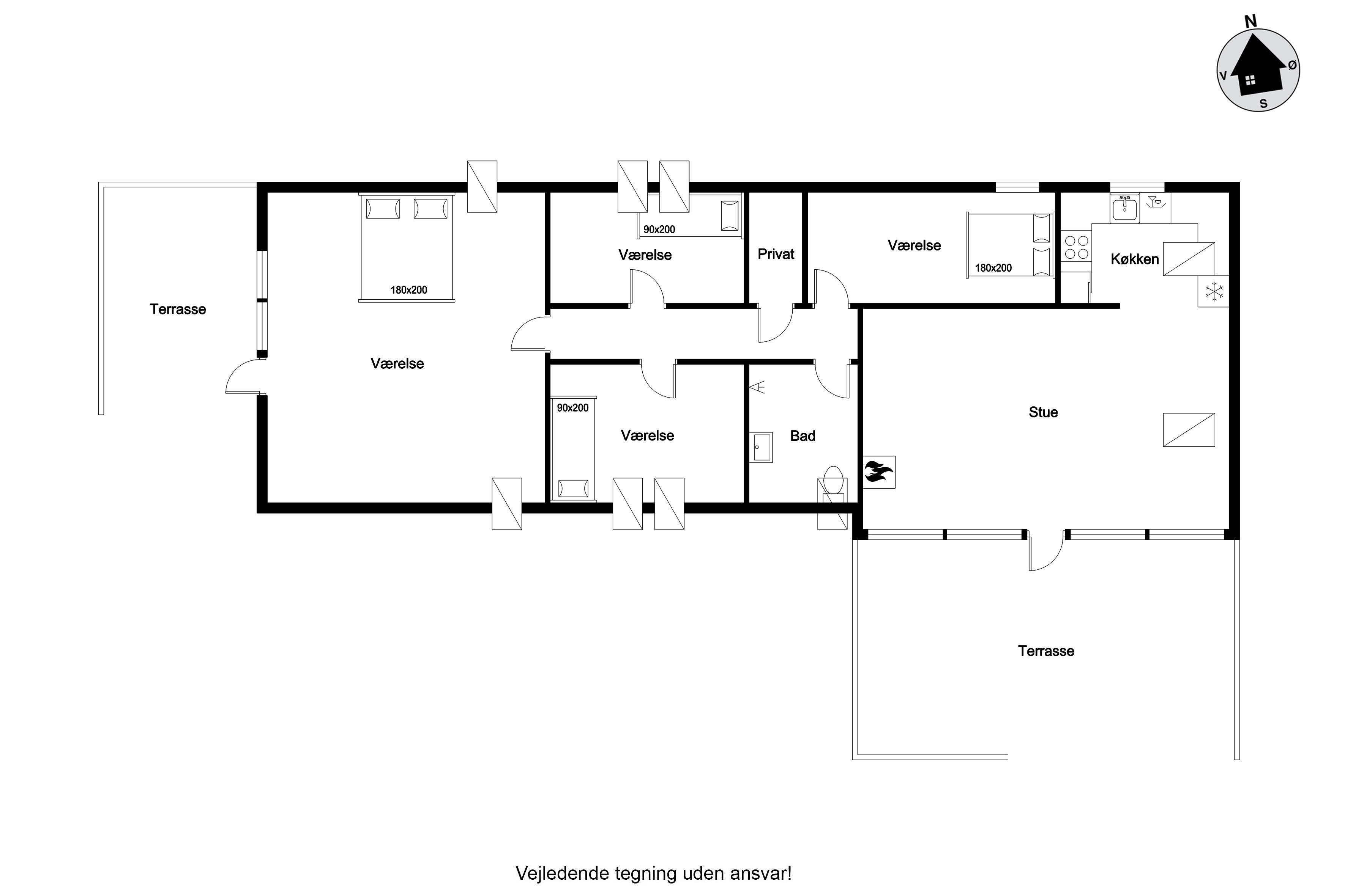 The house offers four well-appointed bedrooms, three of which have double beds, and the fourth bedroom is equipped with a single bed and a bunk bed, making it perfect for children or young people. The spacious layout ensures, that everyone has their own private space to relax and rest. The comfortable beds guarantee a good night's sleep, so you're ready to explore the area every day.