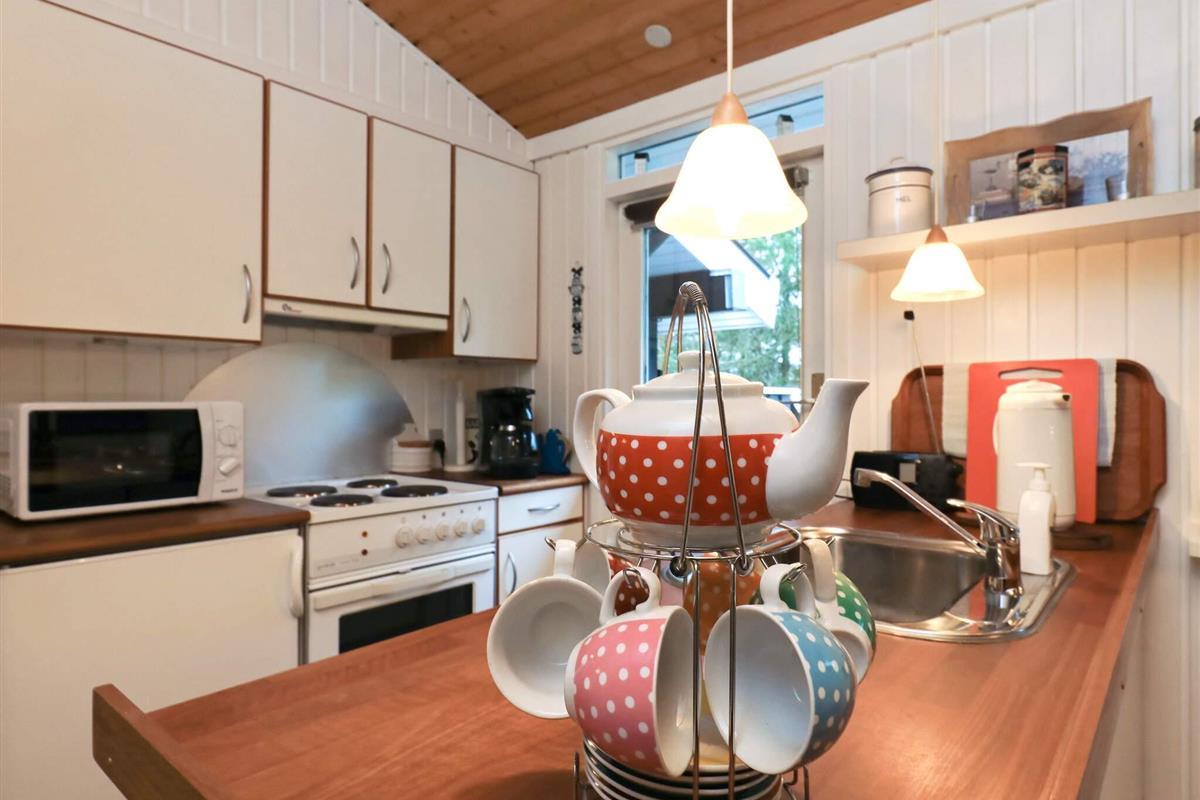 Das Ferienhaus hat einen offenen Küchen-/Wohnbereich für das Familienleben, mit Holzofen für kühlere Abende sowie WLAN und einigen deutschen Sendern zur Auswahl im TV. Außerdem Badezimmer mit Dusche/WC und angenehmer Fußbodenheizung vorhanden. Es gibt auch zwei Schlafzimmer im Haus sowie zwei weitere Schlafplätze nebenan im kleineren Annex.