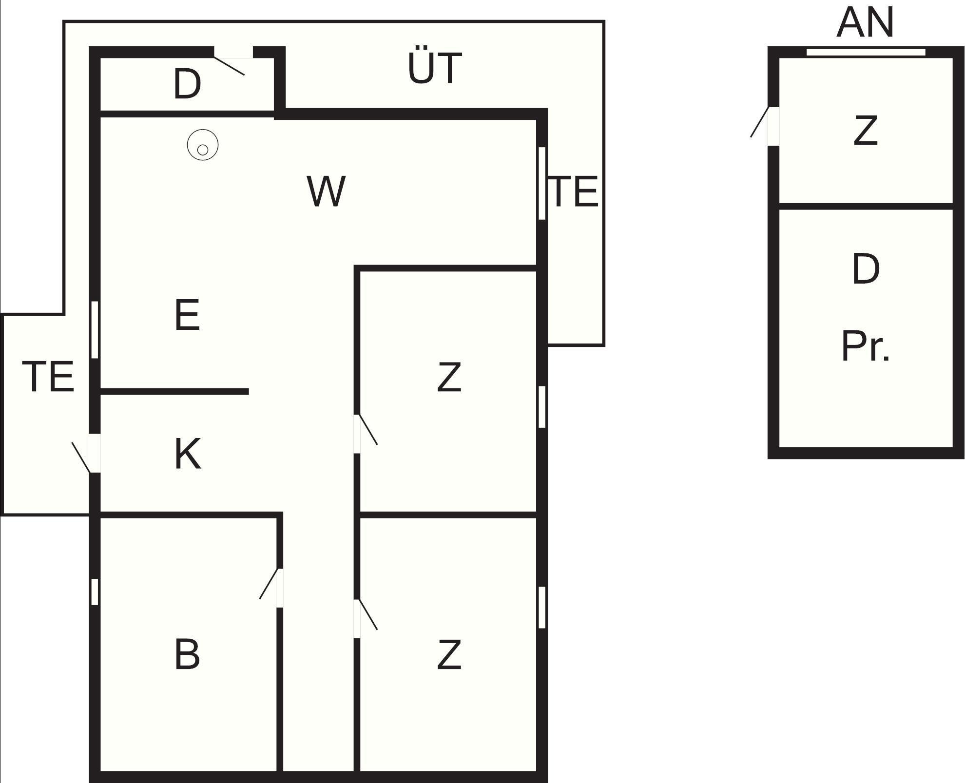 Und: Terrasse, überd. Terrasse, E-Heiz., Luft-Luft-Wärmepumpe, Grill, Naturgrundst. m. Bäumen 2180 m2, persönliche Möblierung, Ferienhausgebiet, Nichtraucherhaus