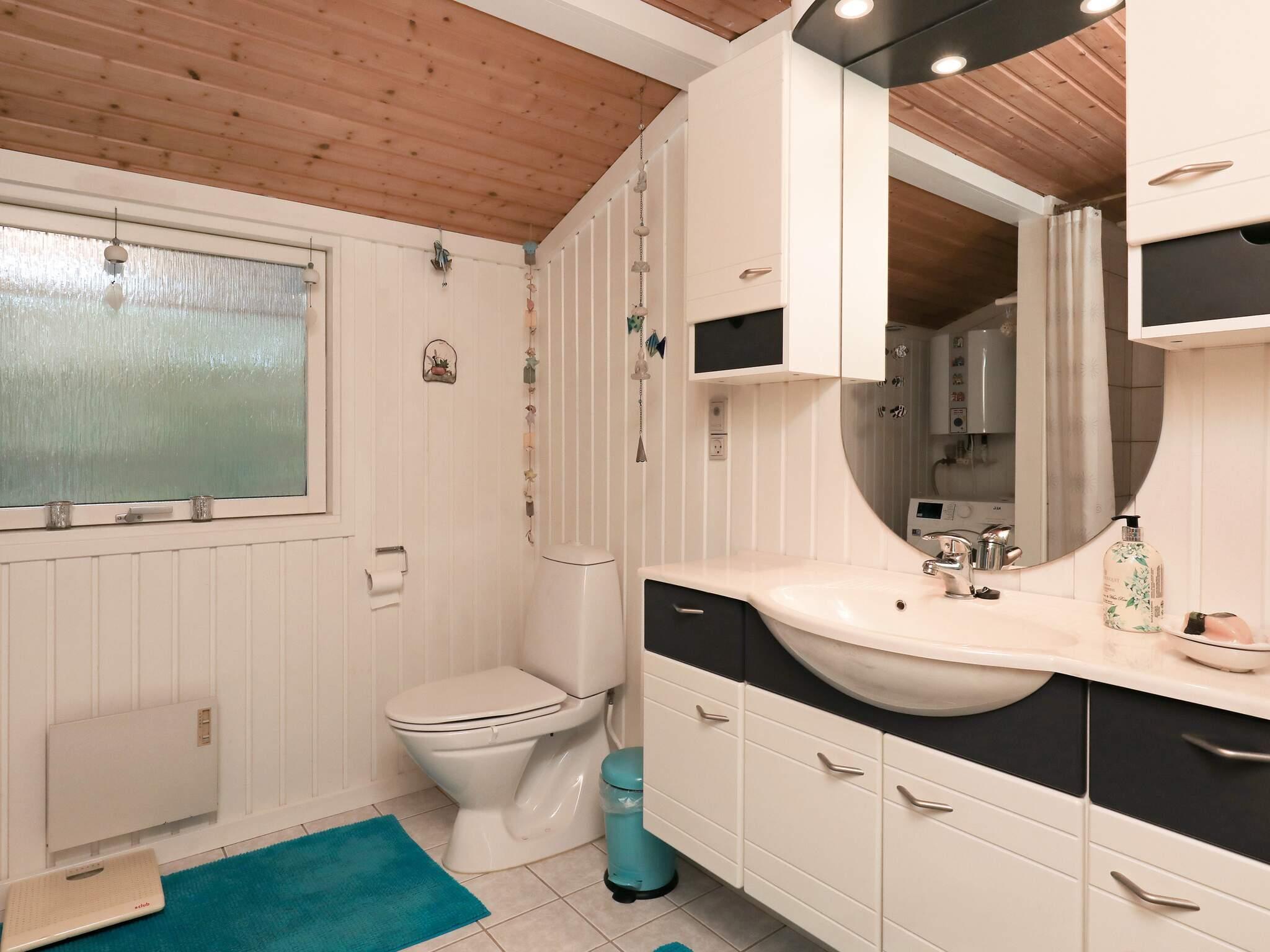 Bad: Waschm., WC, Waschb., Außendusche, Dusche, Fußbodenheiz.