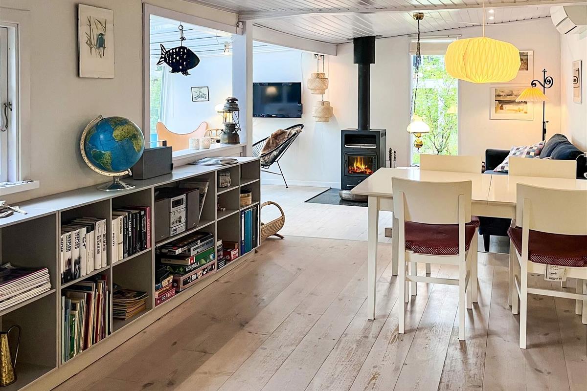 An kühleren oder regnerischen Tagen sorgt der Holzofen für wohlige Wärme und eine gemütliche Atmosphäre, und die Bücher- und Spieleregale laden zu stundenlanger Unterhaltung ein. Ob Sie nach einem Tag am Strand entspannen, Ihren Lieblingsroman lesen oder gemeinsam essen – dieses Haus bietet alles für einen komfortablen und unvergesslichen Aufenthalt.