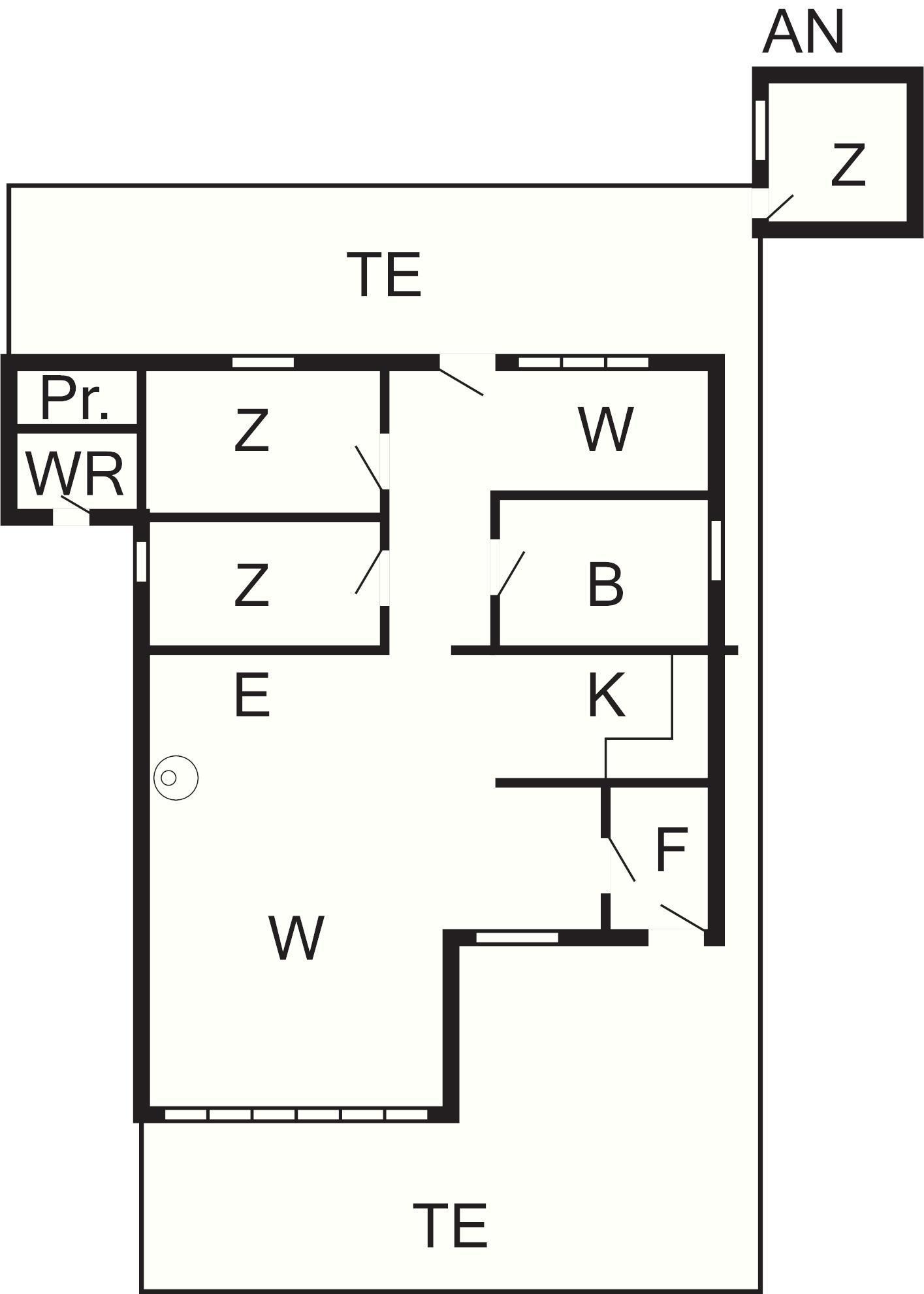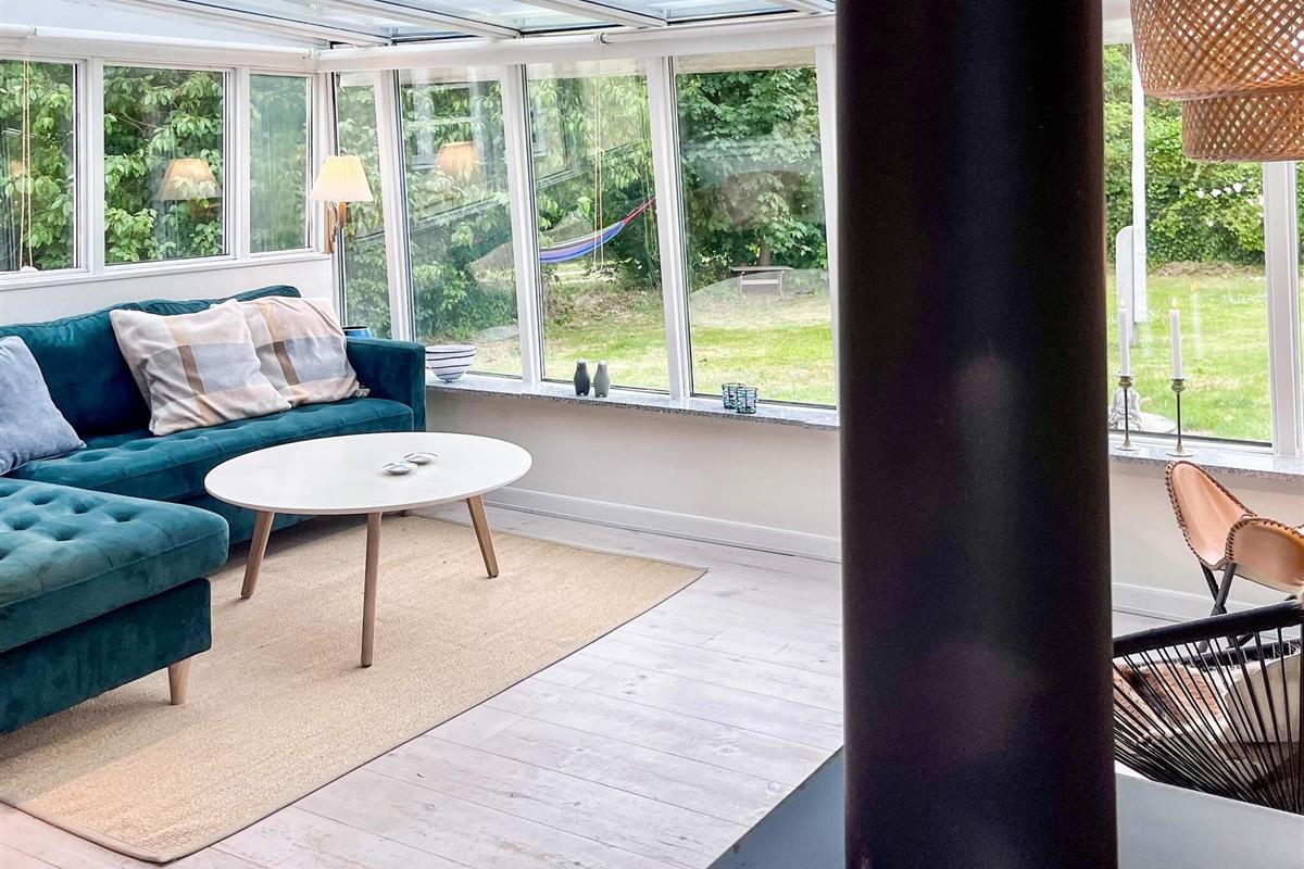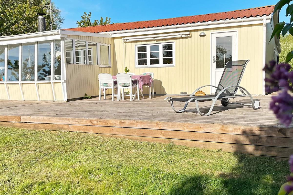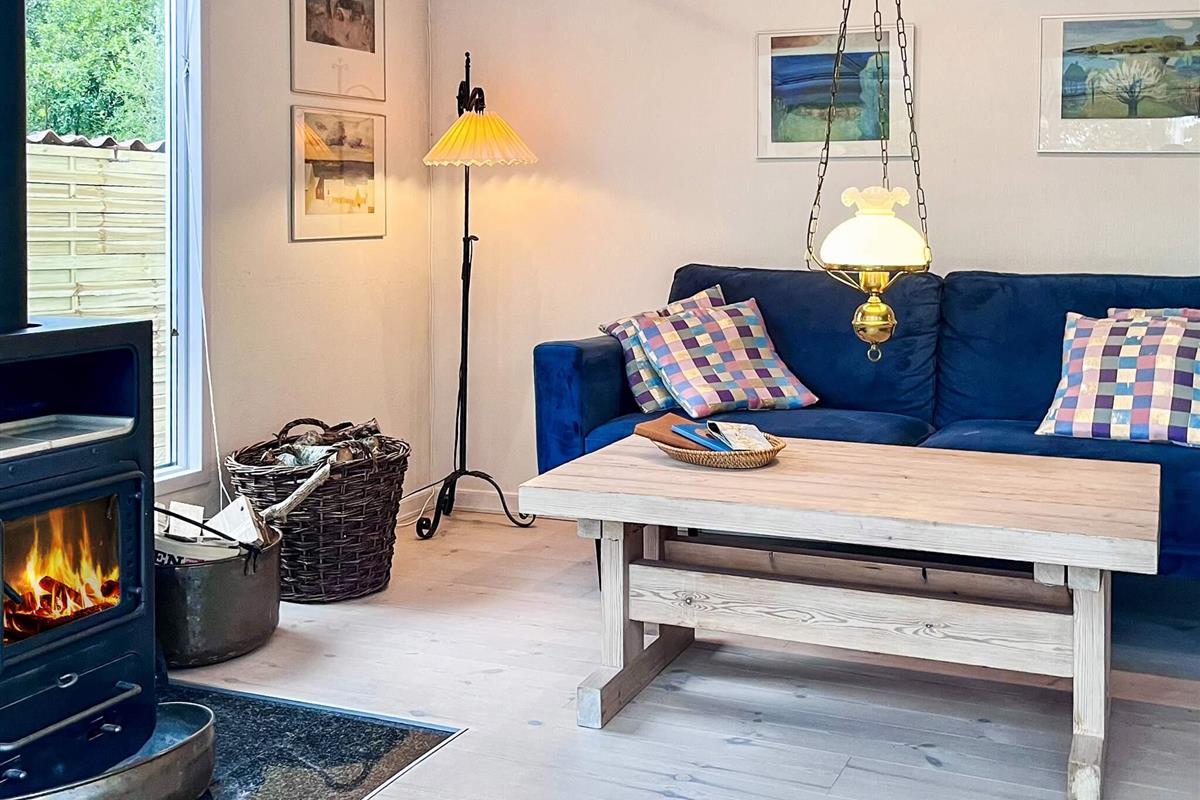 Dieses charmante Ferienhaus liegt nur 250 Meter vom Sandstrand von Knebel entfernt und bietet den perfekten Ausgangspunkt für einen erholsamen Urlaub am Meer. Der helle, offene Wohnbereich kombiniert ein gemütliches Wohnzimmer mit einem Essbereich und einer voll ausgestatteten Küche – ideal für Familienfeiern oder einen ruhigen Rückzugsort mit Freunden.