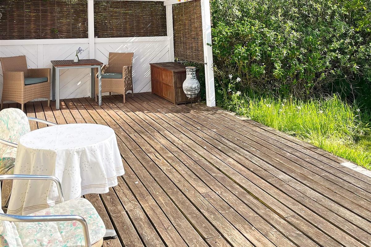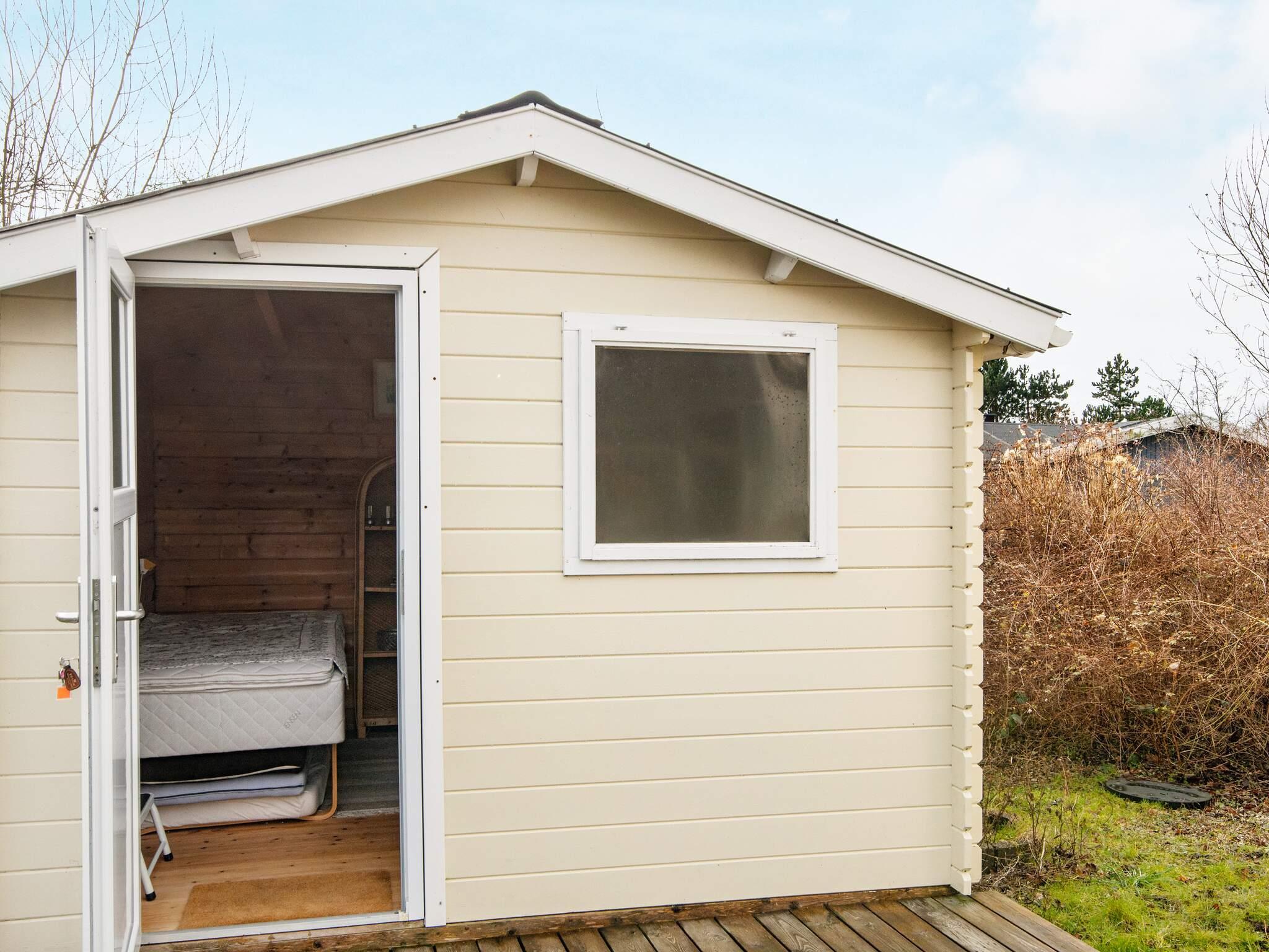 Das Haus verfügt über zwei Schlafzimmer im Hauptgebäude. Ein separater Anbau bietet zwei zusätzliche Einzelbetten, sodass jeder bequem und ungestört schlafen kann. Das Anwesen ist von einer Holzterrasse umgeben, die sich perfekt zum Sonnenbaden eignet: Die Morgensonne scheint auf eine Seite, während die Vorderseite des Hauses die Nachmittags- und Abendsonne einfängt und viel Platz zum Grillen, Entspannen und Verweilen im Freien bietet.