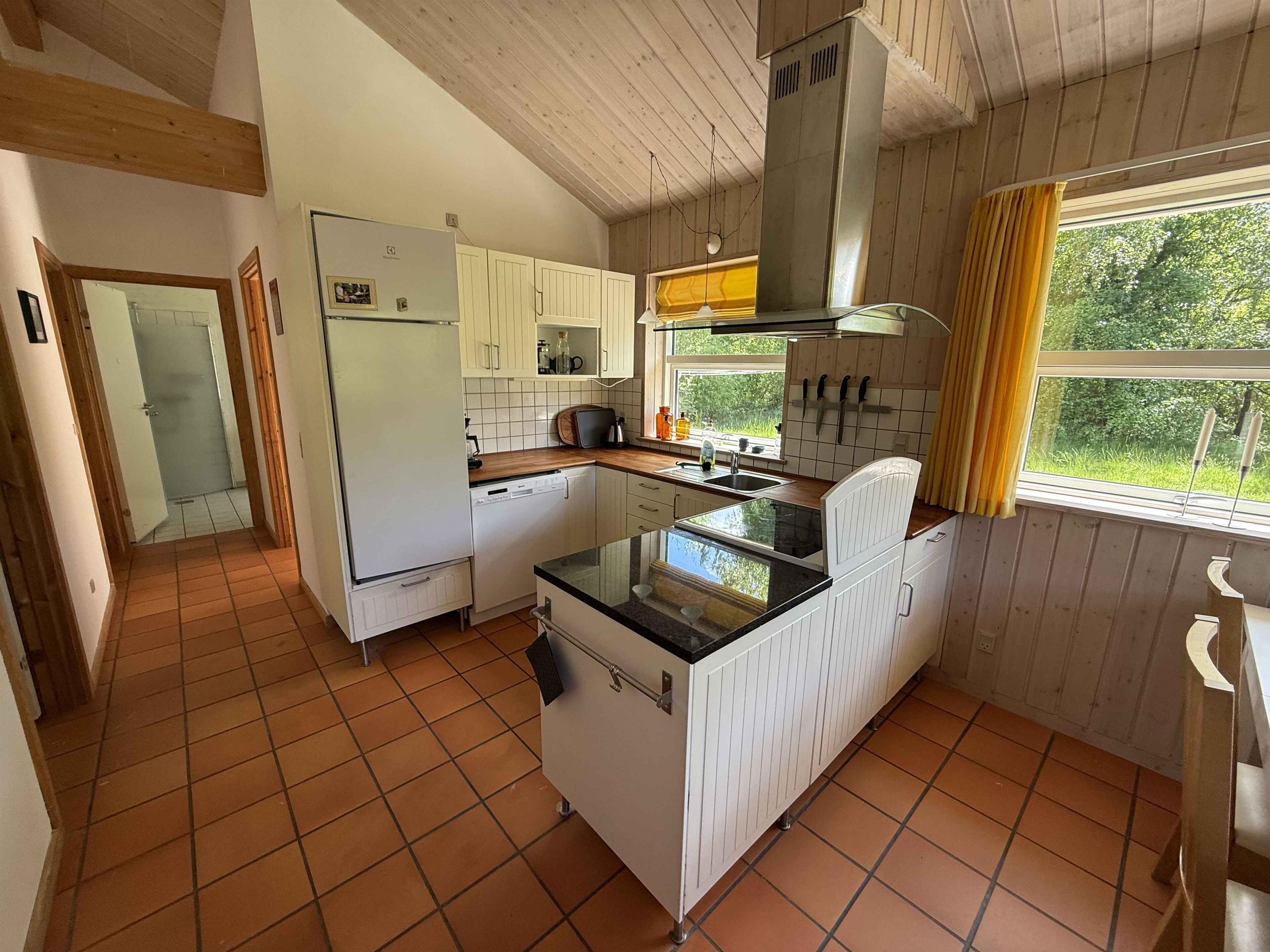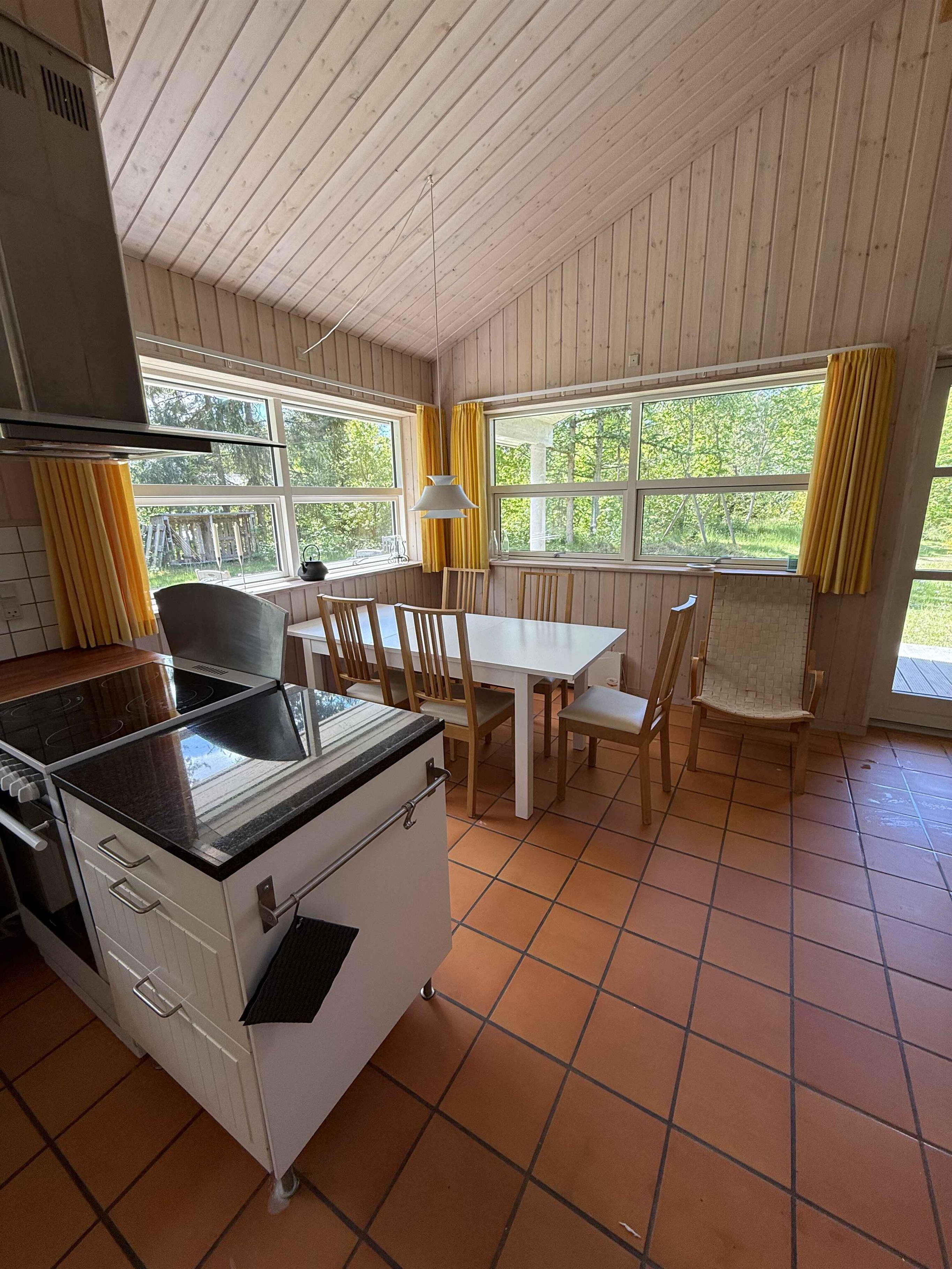 Dit gezellige vakantiehuis van 81?m² biedt een ontspannen vakantiesfeer dicht bij de kust. Het huis heeft twee slaapkamers en in totaal zes slaapplaatsen, wat het ideaal maakt voor zowel gezinnen als kleine vriendengroepen die willen genieten van rust en natuur. Slechts 60 meter van het huis ligt het strand. Je moet ver de zee in om echt diep water te vinden. Bij laagwater zijn er eilandjes waar kinderen kunnen spelen. De korte afstand maakt het gemakkelijk om te zwemmen, schelpen te zoeken met de kinderen of gewoon te ontspannen bij het geluid van de golven. Er zijn uitstekende mogelijkheden voor watersport: kajakken, windsurfen, suppen, onderwaterjagen enzovoort. De kust leent zich ook goed voor zeeforelvisserij. ’s Avonds kun je genieten op het terras met zonsondergang en de hogere bomen in het nabije bos. Het gebied staat bekend om zijn ongerepte natuur en rustige sfeer. Hier vind je Nationaal Park Mols Bjerge, een van Denemarken’s mooiste natuurgebieden, met wandelpaden, uitzichtpunten en rijke fauna. In Tved is een supermarkt, en in Rønde vind je meerdere winkels voor dagelijkse boodschappen. In Knebel is de lokale jachthaven en een paar eetgelegenheden. In de haven kun je krabben vangen. Langs de lokale wegen bij de oude boerderijen worden eieren, kruiden, aardbeien, aardappelen enz. verkocht. In Skødshoved vind je een restaurant en een levendige haven voor gezellige avonden of een ijsje voor het gezin. Ebeltoft biedt lokale specialiteiten, cultuur en kleine winkels, die de vakantie authentiek maken. Een wandeling over de oude kasseien van Ebeltoft met het oude stadhuis is een bezoek waard. In Ebeltoft vind je toeristische attracties zoals het Glasmuseum en het fregat Jylland. Er is een breed aanbod aan restaurants, van charmante binnenplaatsen in de winkelstraat tot visrestaurants aan de haven. Kindvriendelijke attracties binnen rijafstand zijn onder andere: Djurs Sommerland Ree Safari Park Randers Regenwoud Mols Bjerge Aarhus is ook een leuk uitje bij minder goed weer, waar je Tivoli Friheden hebt. De inrichting is functioneel en eenvoudig. De keuken staat in open verbinding met de woonkamer en eetruimte, zodat de vakantie samen geleefd kan worden. Grote ramen laten natuurlijk licht binnen en verbinden met de omliggende natuur. Het terras nodigt uit voor een ochtendkoffie in de zon of ontspanning na een dag vol uitstapjes. Het huis ligt privé, waardoor je volop de kans hebt om tot rust te komen en gewoon te zijn. Een perfecte keuze voor wie rust zoekt, dichtbij het water wil zijn en wil genieten van een van de mooiste stukken Deense natuur. Let op: Niet te huur voor commercieel gebruik.