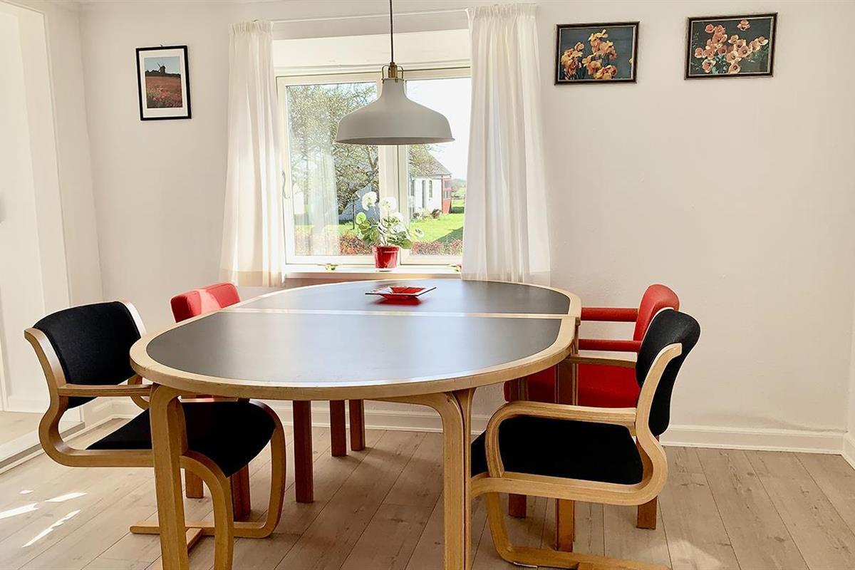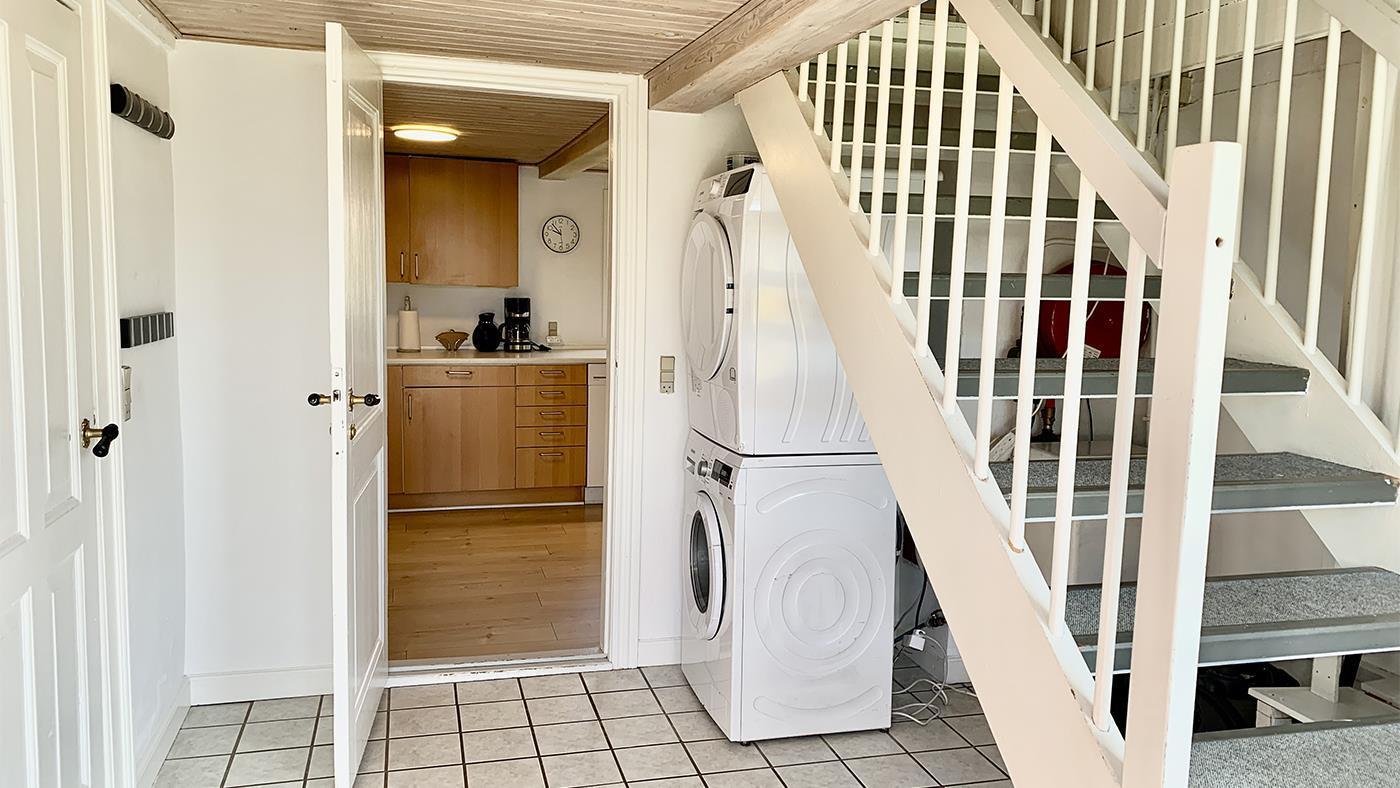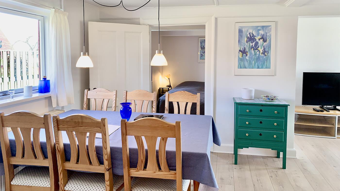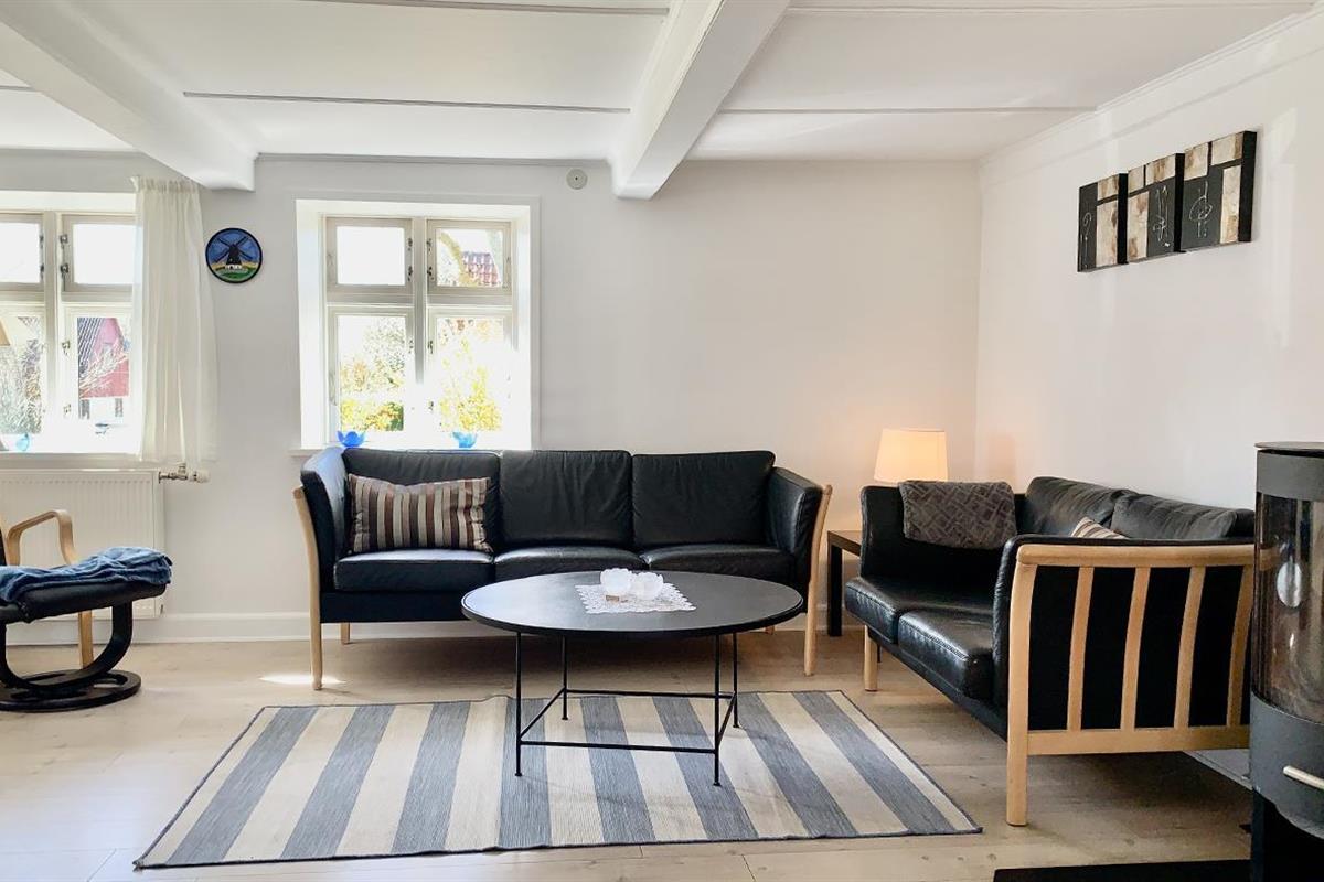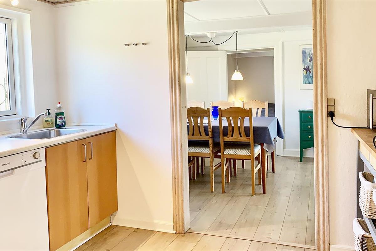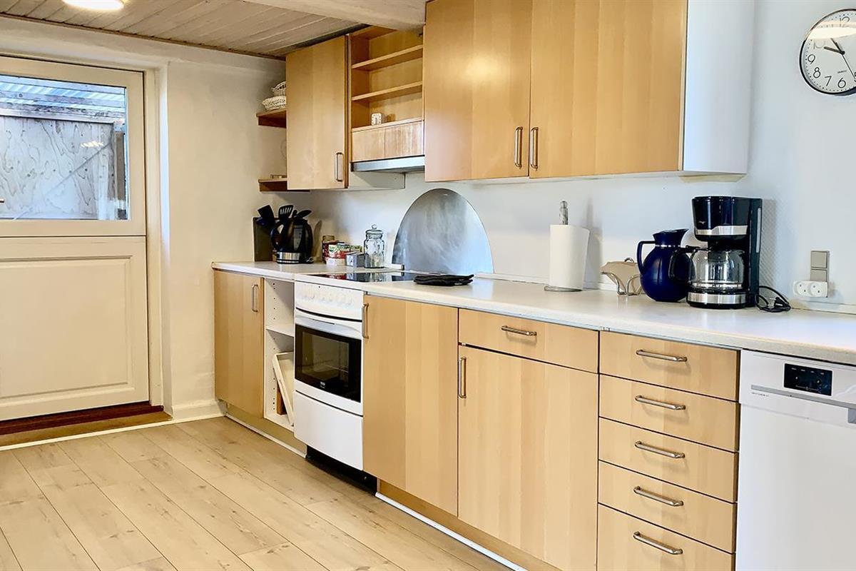 The holiday home is bright and invitingly furnished and has everything you need for a relaxing stay. The neat and functional kitchen is open to a large dining and living room, where the wood-burning stove spreads a lovely warmth and creates the perfect holiday atmosphere.