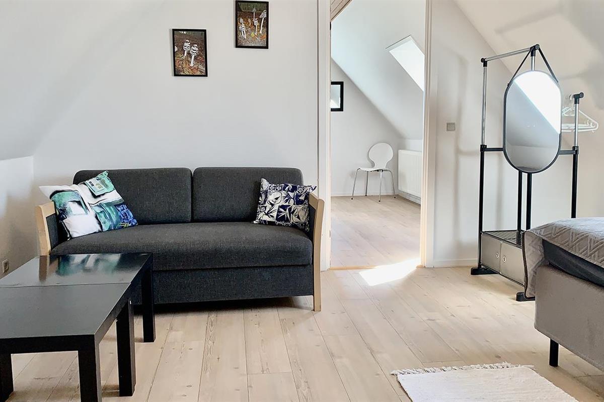 There is a lovely garden with both a terrace and a fire pit where you can enjoy the sun, barbecue or just relax. If you have a dog, it is possible to put up a fence so that it can run around freely and be a natural part of your holiday.