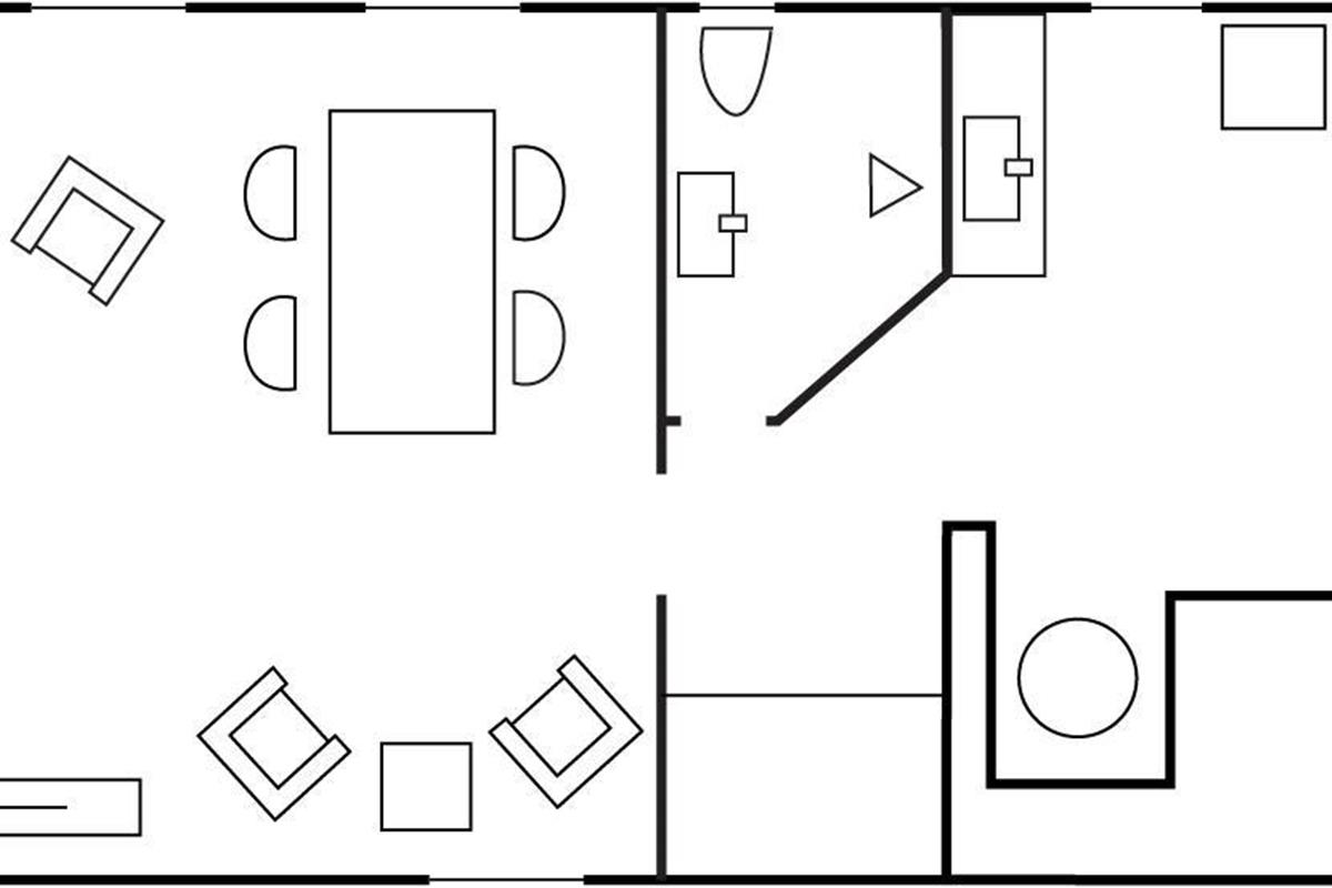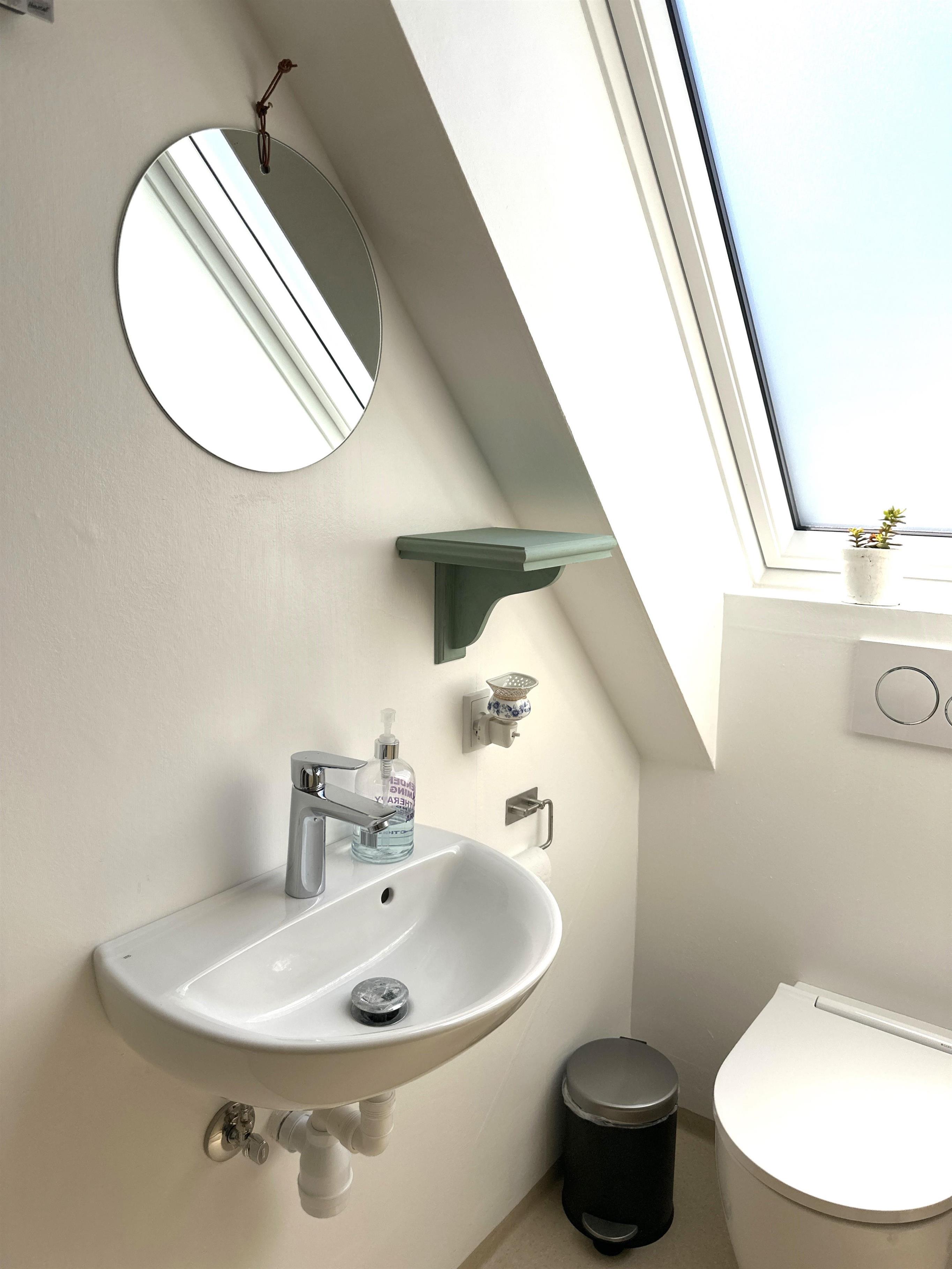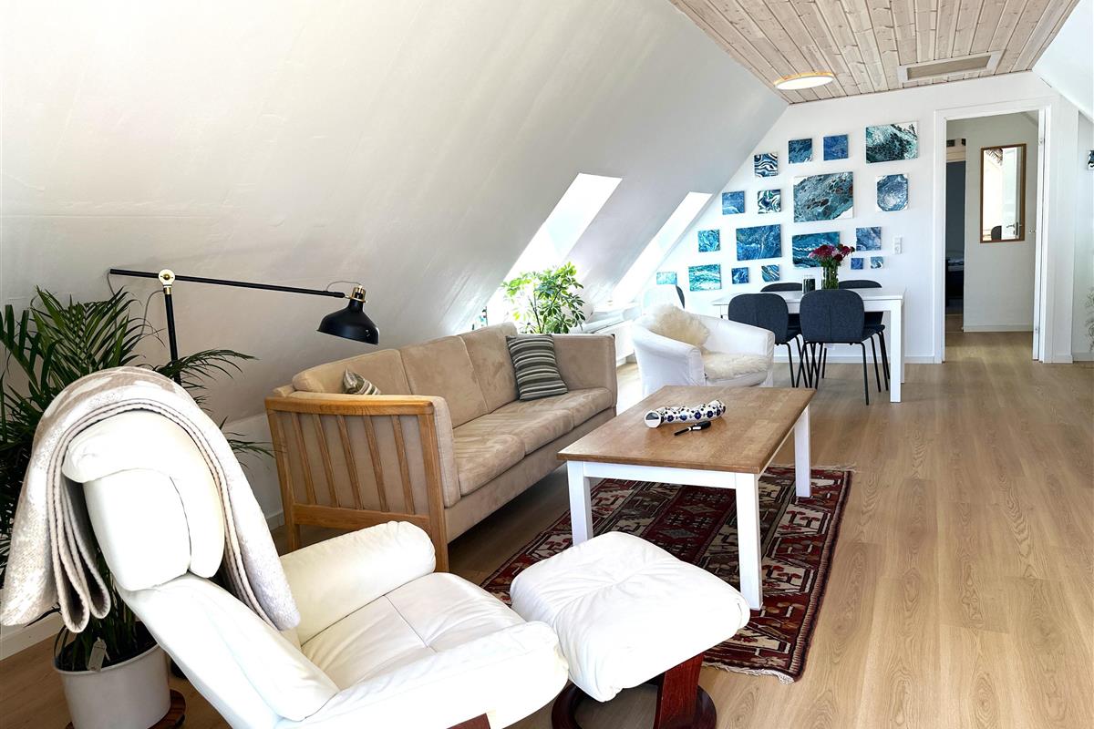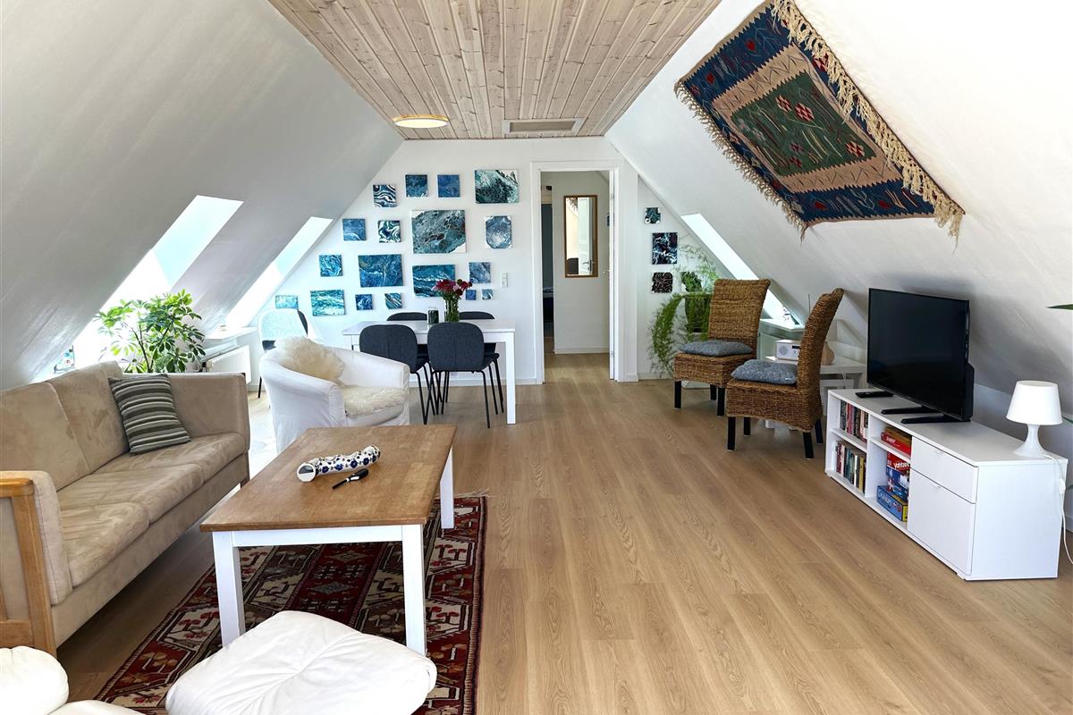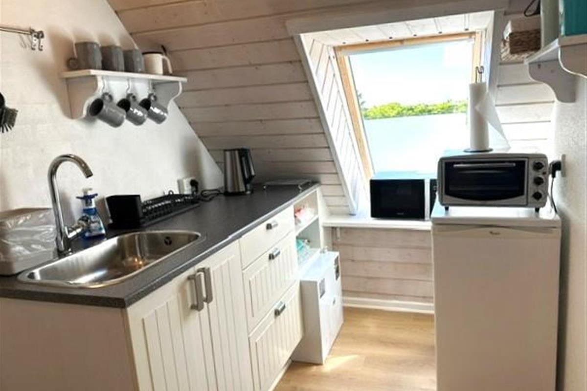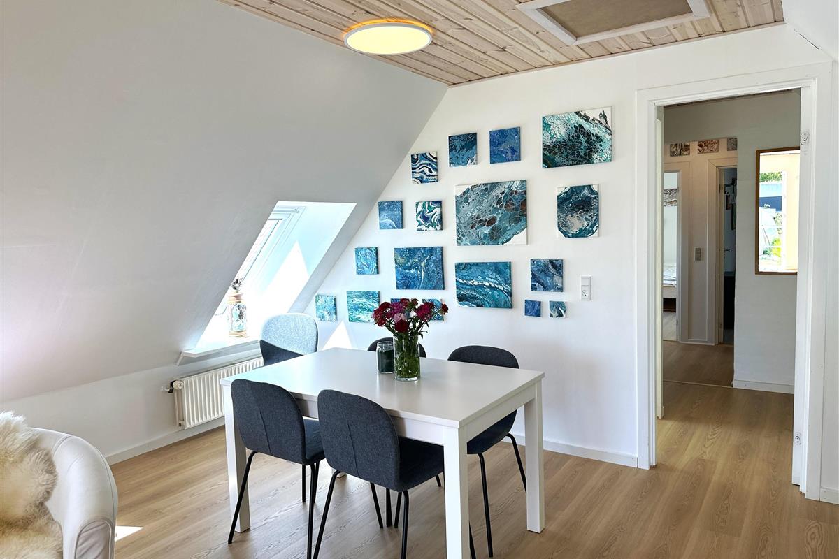 The apartment is bright, spacious and comfortably furnished with high ceilings, which gives a lovely feeling of openness and space. The living room combines a dining area and a cosy sofa corner, so you can gather the family for meals, fun games or quiet moments with a good book. The kitchenette, which is connected to the living room, makes it easy to prepare both small and large meals with local ingredients from Samsø.